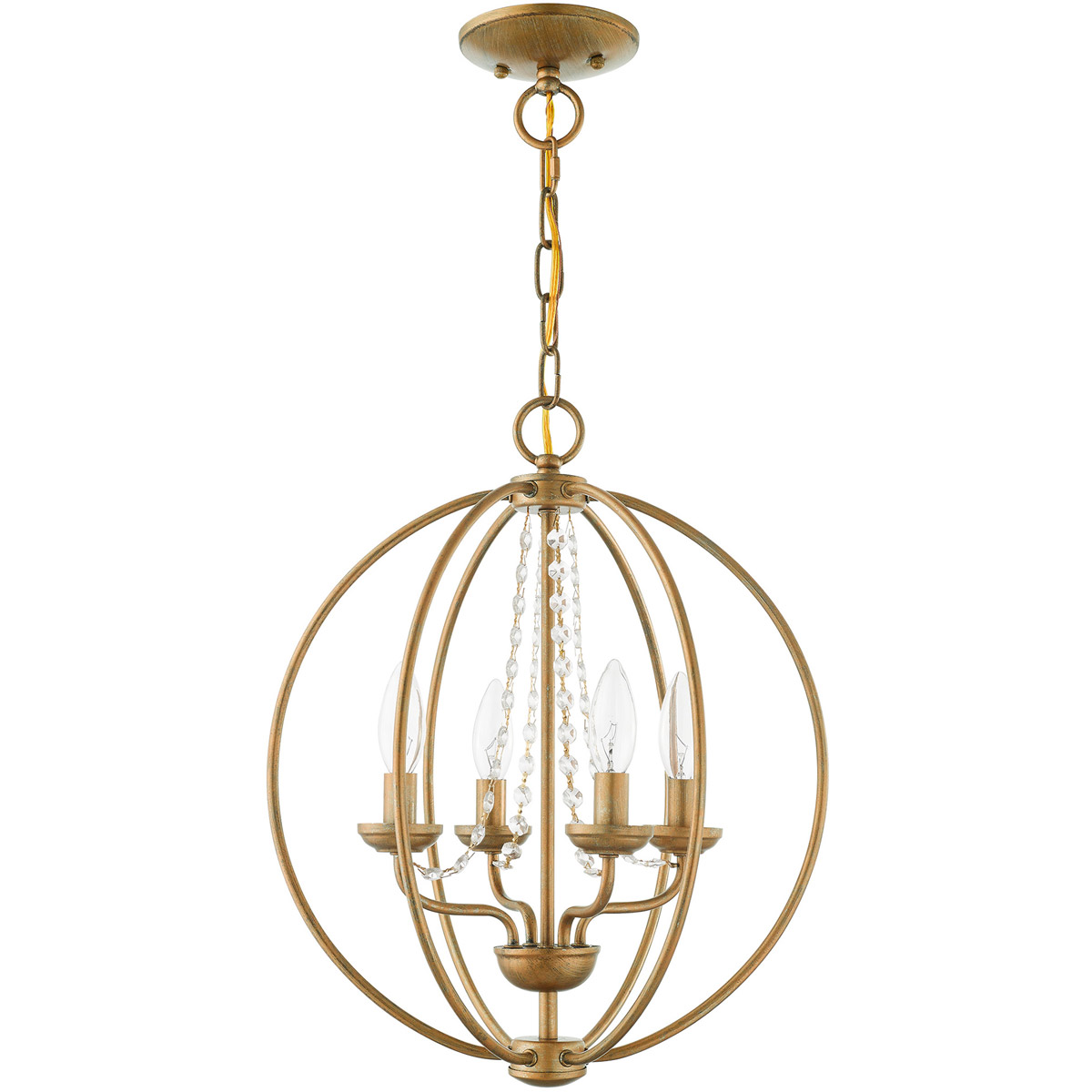 Our Arabella collection four light transitional orb features an antique gold leaf sphere with delicate draping crystals. Together, the metal and crystal create a balance between modern and classical. This clever design combination is the model of versatility and perfect for an elegant dining room or use in a casual kitchen setting.