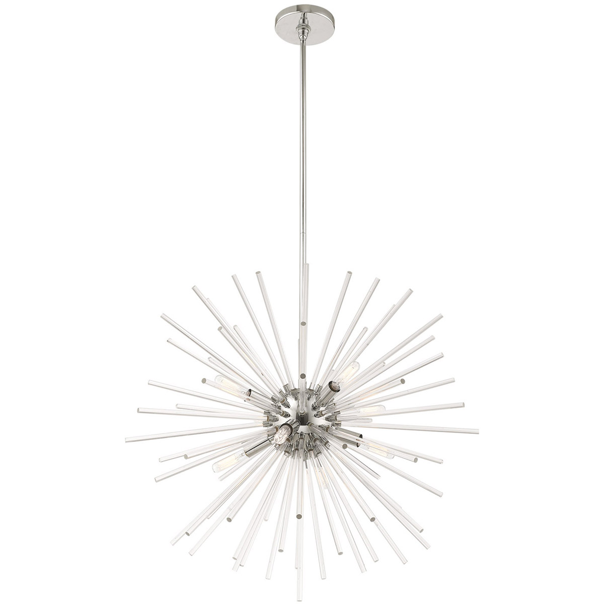 The Utopia eight light pendant chandelier will become an attention-grabbing feature in your modern home decor. The polished chrome finish graces the design with elegance and charm, providing a traditional quality to the appearance. The clear crystal rods gives the pendant chandelier a sleek and attractive style.