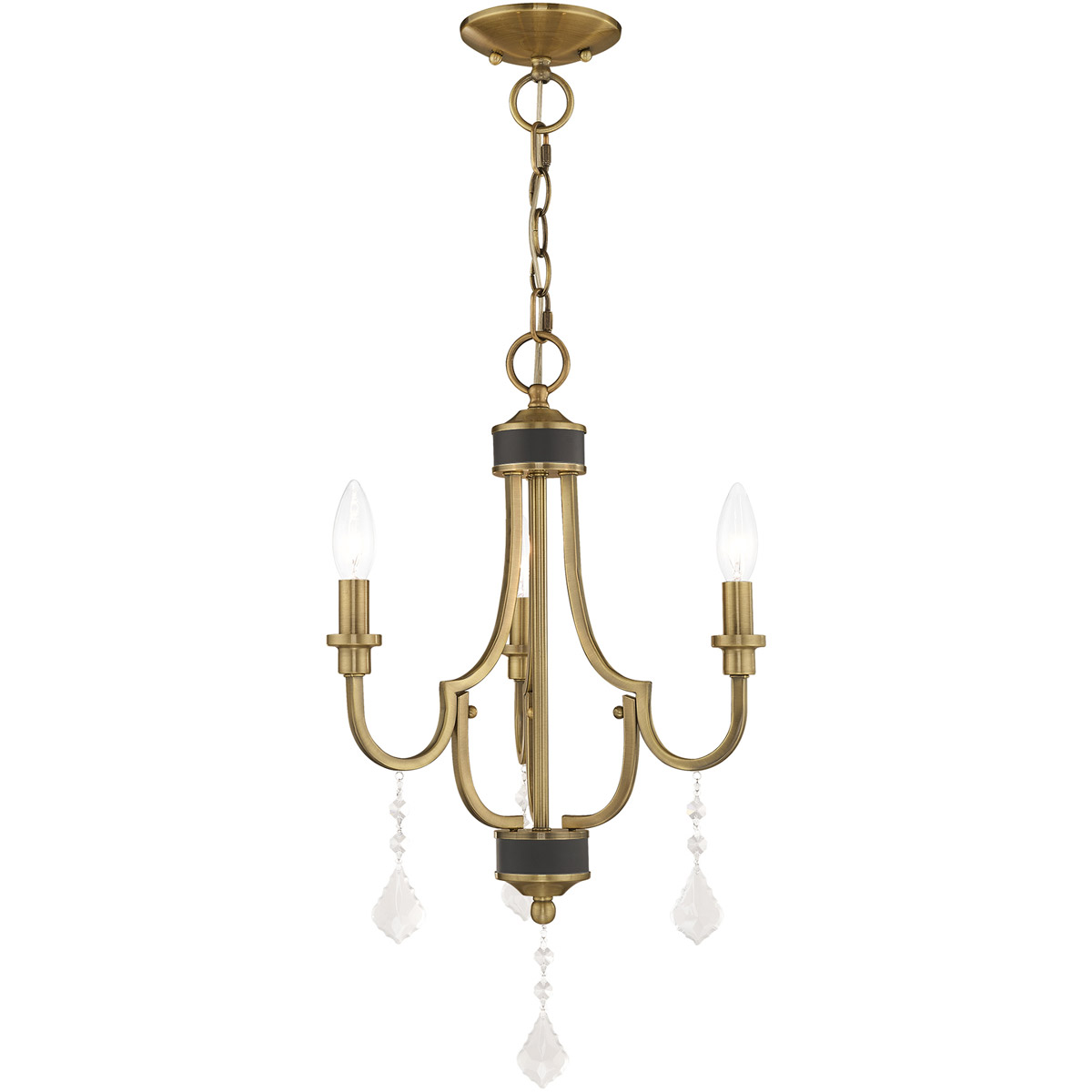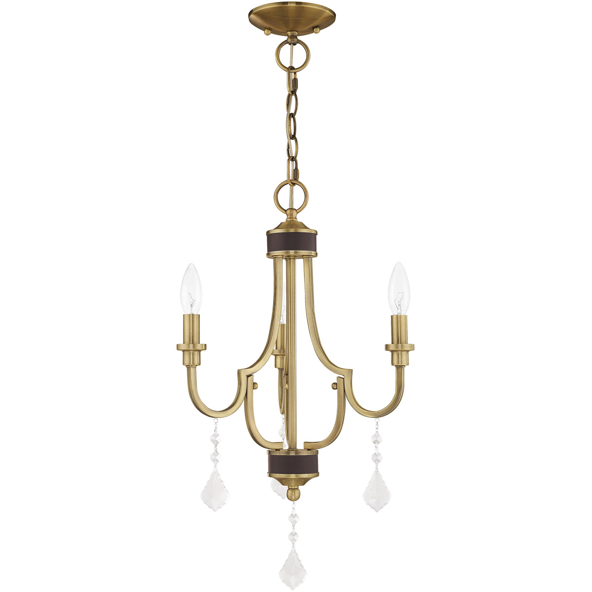 Bring simple, yet elegant, charm to your living space with this beautiful transitional three light mini chandelier. In antique brass finish with bronze accents, the clear crystals on the mini chandelier provide a understated clean look, that’s perfect for any room in your home.