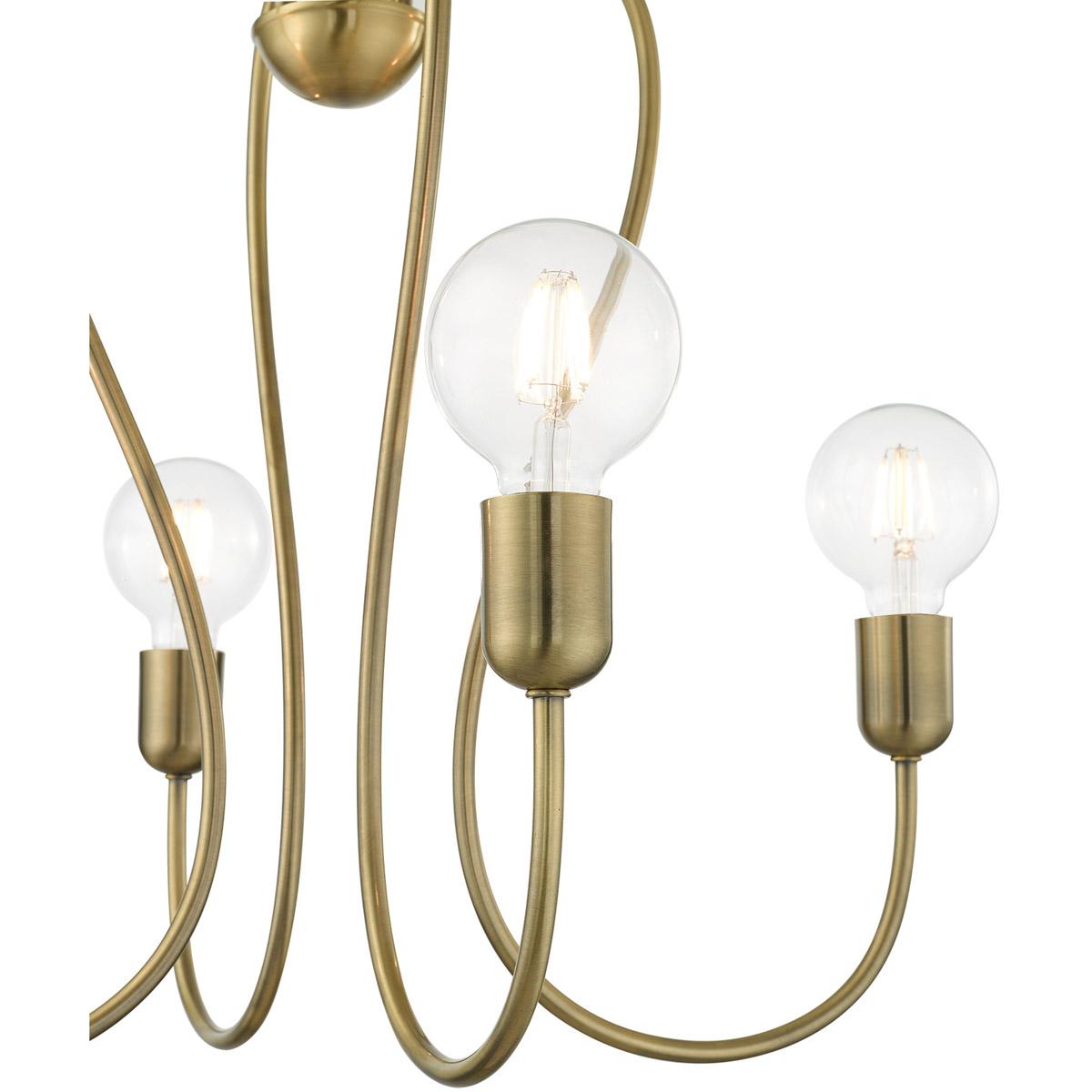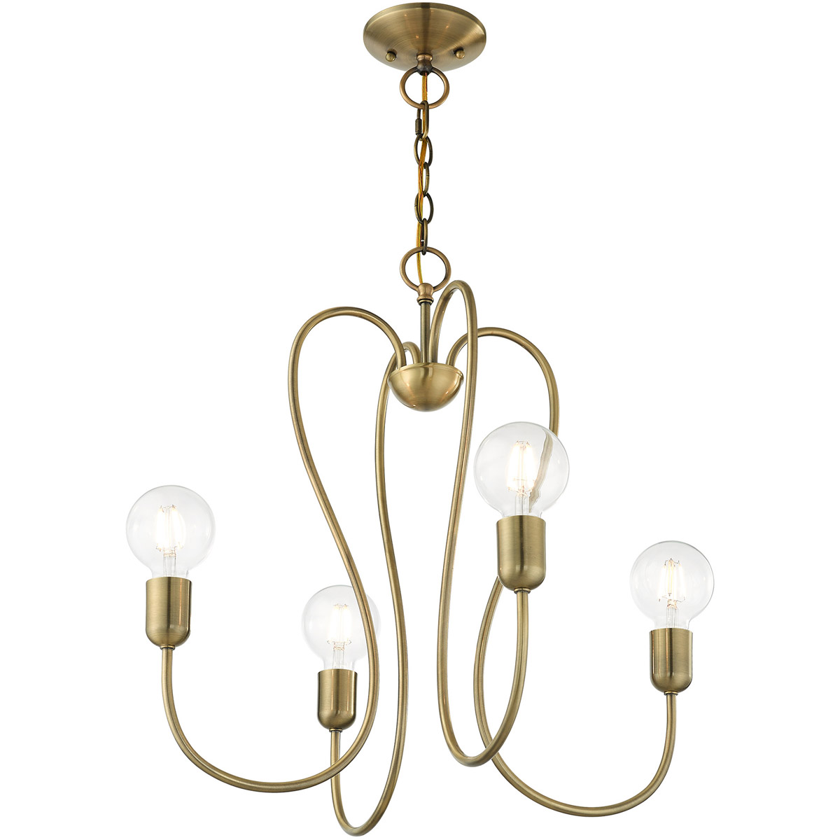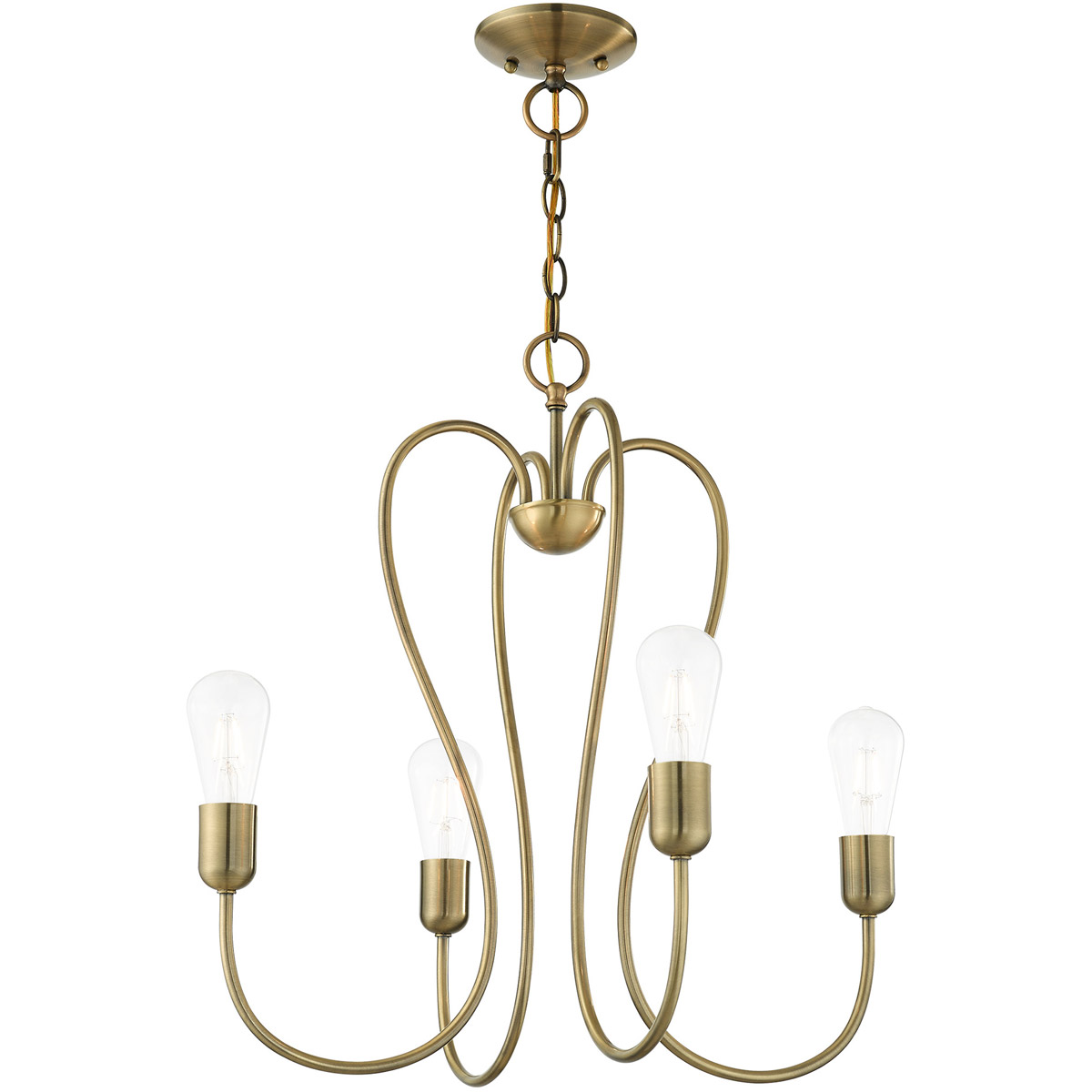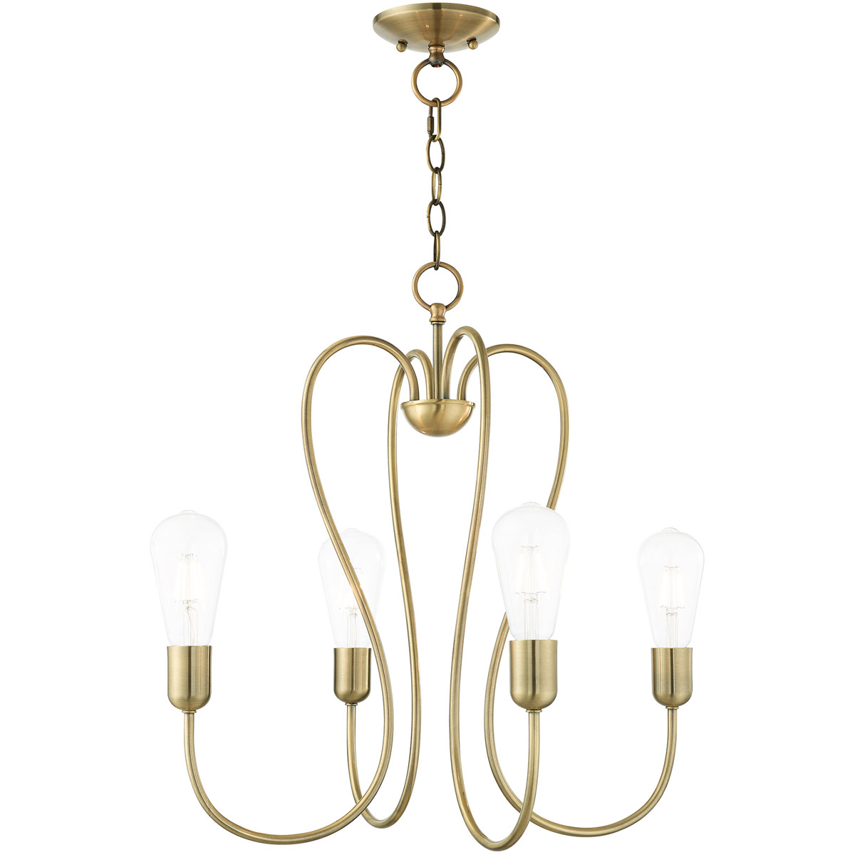 Updated traditional elegance and casual style defines the Lucerne collection. The curvilinear steel frame is offset by an antique brass finish. The essence of this collection amplifies today’s approach to a transitional style interior. This small four-light chandelier will add a rustic and casual flare to your living room, dining room or kitchen.