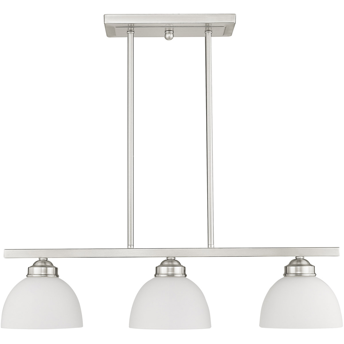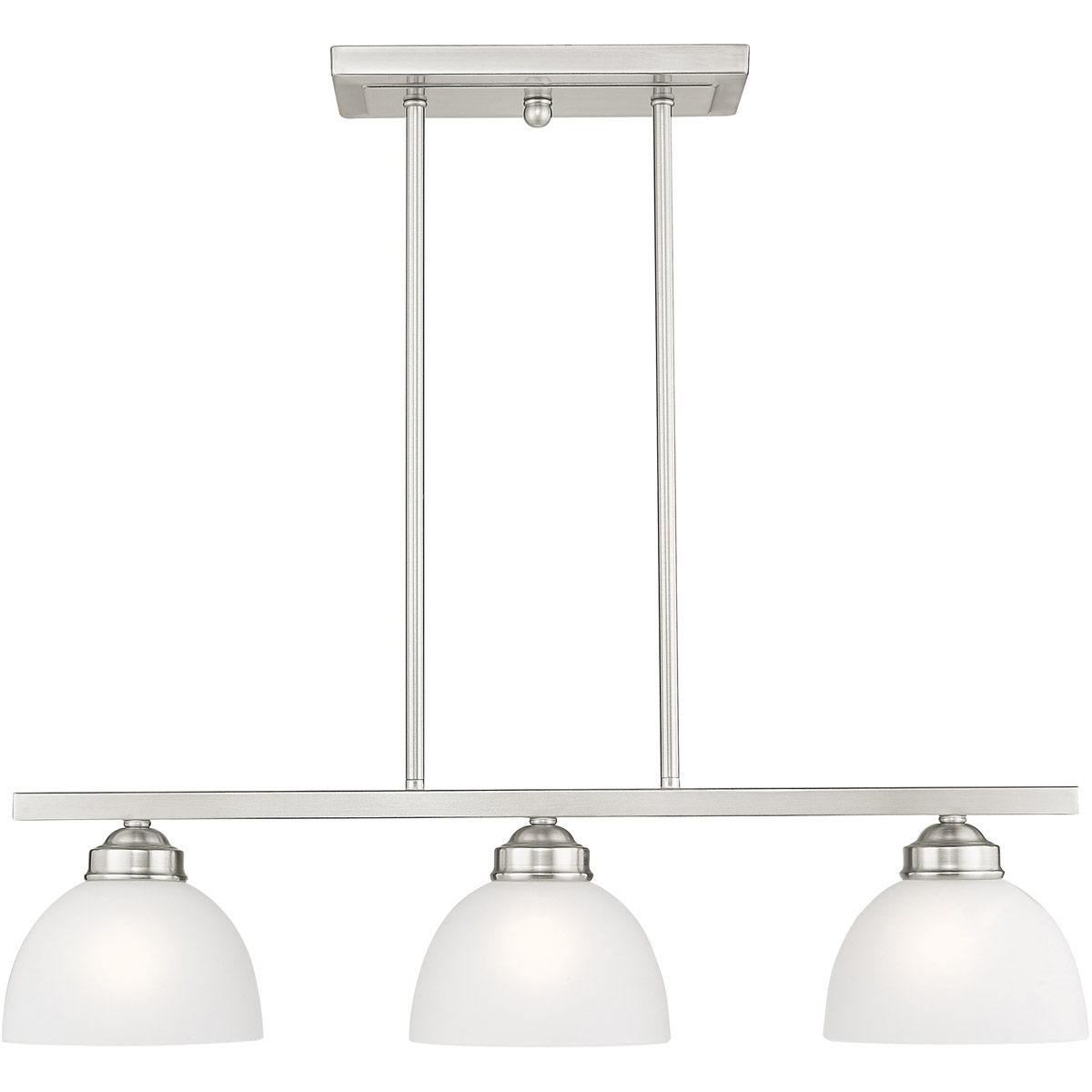 Smooth lines meet gorgeous materials in our Somerset collection. The sleek design will add contemporary class and appeal to your home. This three light linear chandelier features a brushed nickel finish with satin glass.