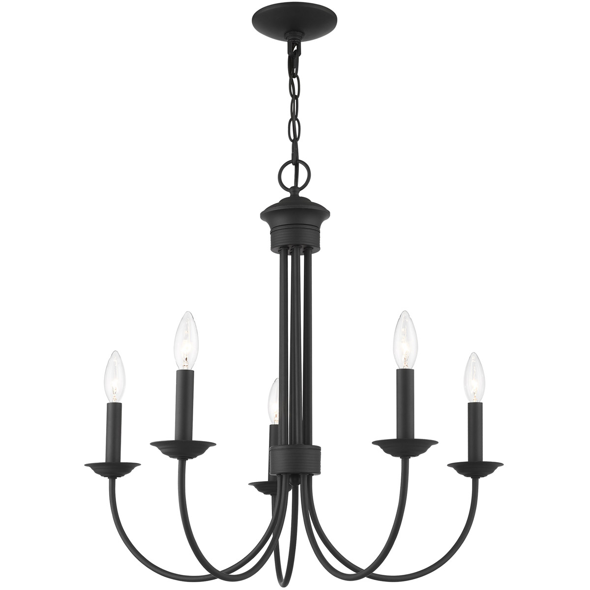This elegant yet classical Estate collection is impeccably designed and crafted. This black finish five-light chandelier is perfectly suitable above a dining room or a kitchen table with traditional or transitional interiors.
