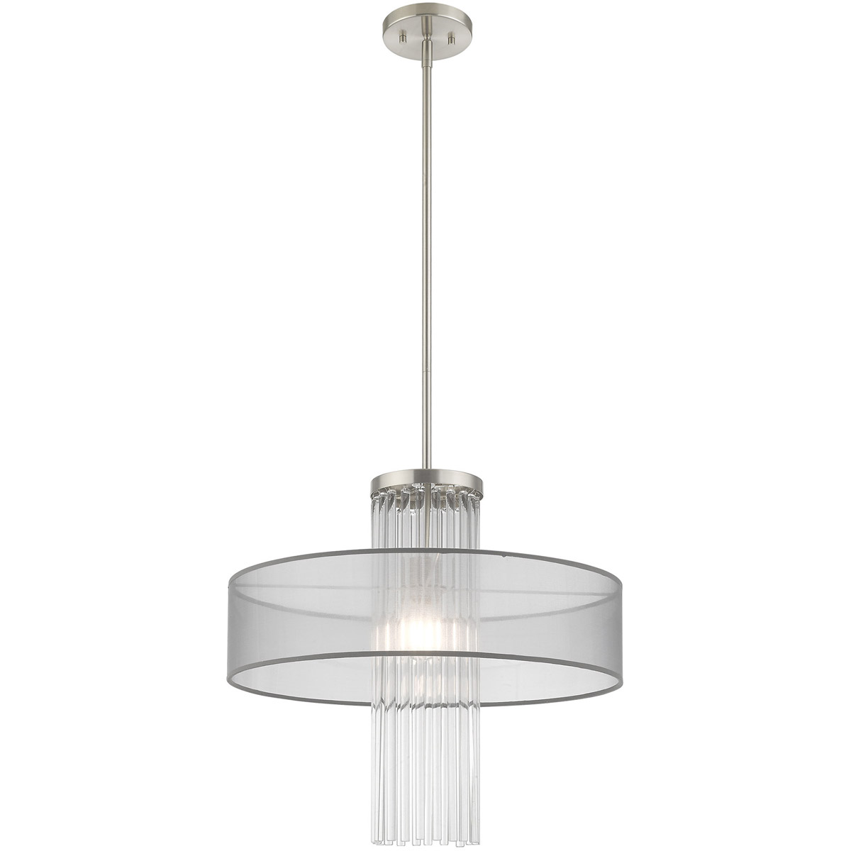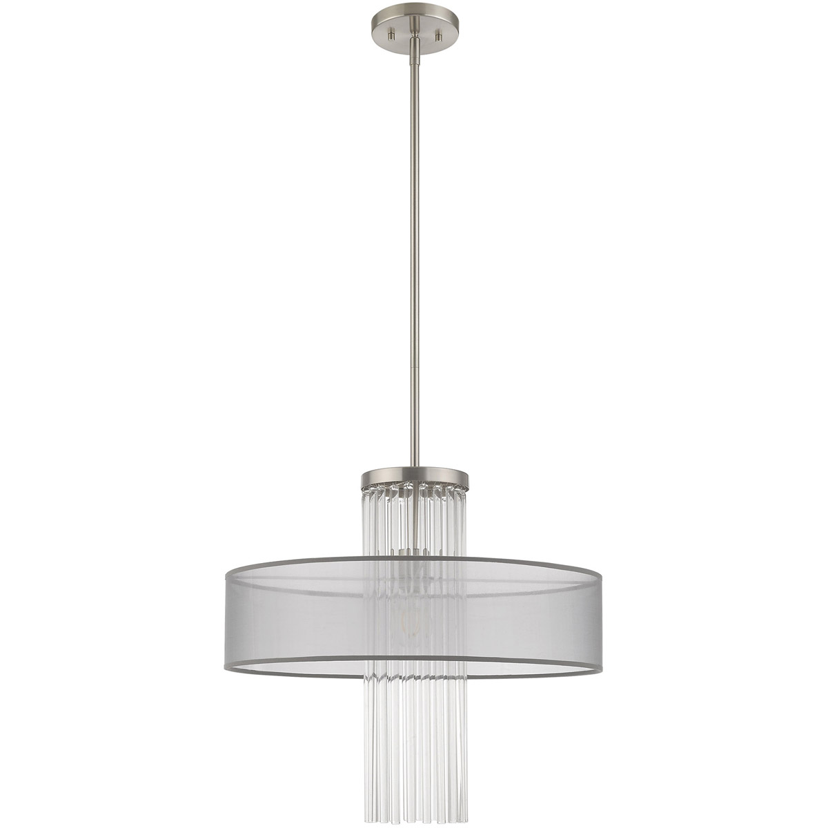 1 Light Brushed Nickel Pendant Chandelier with Clear Crystal Rods/ Hand Crafted Translucent Gray Fabric Shade-Lighting Lumens