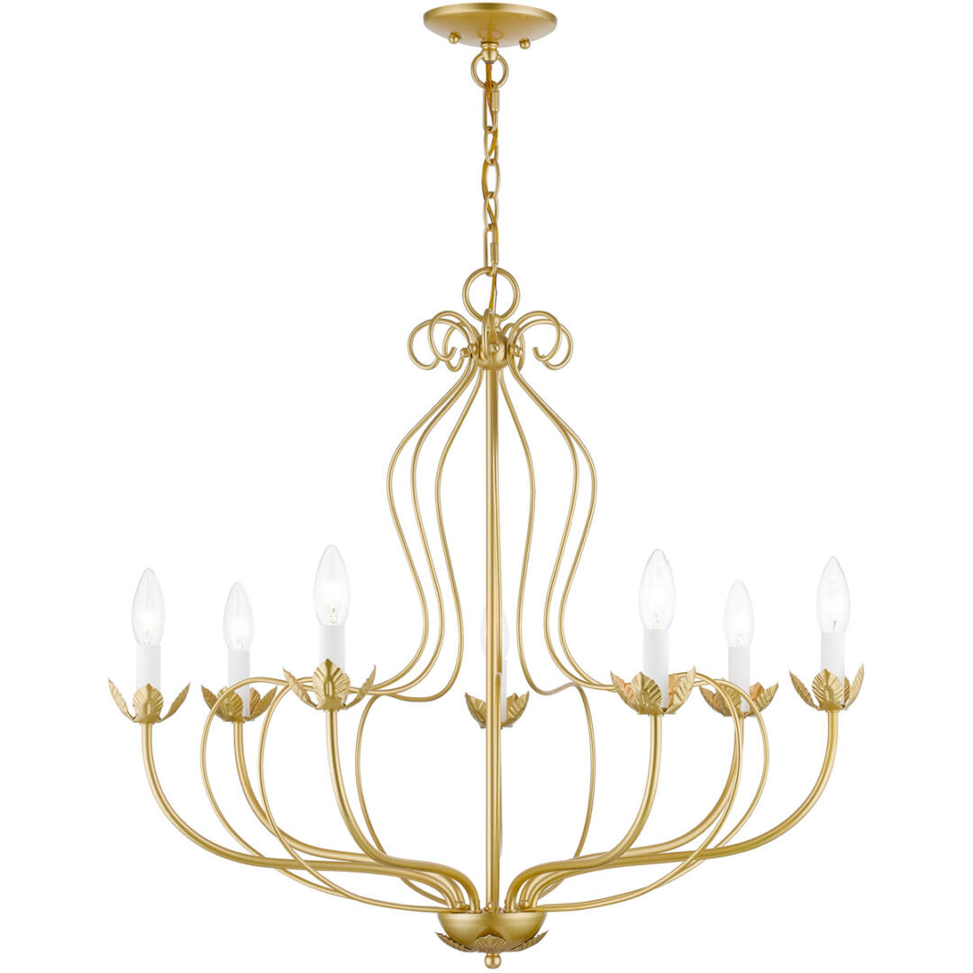 The seven-light Katarina floral chandelier showcases a graceful look. The soft gold finish completes this timeless and casual design.