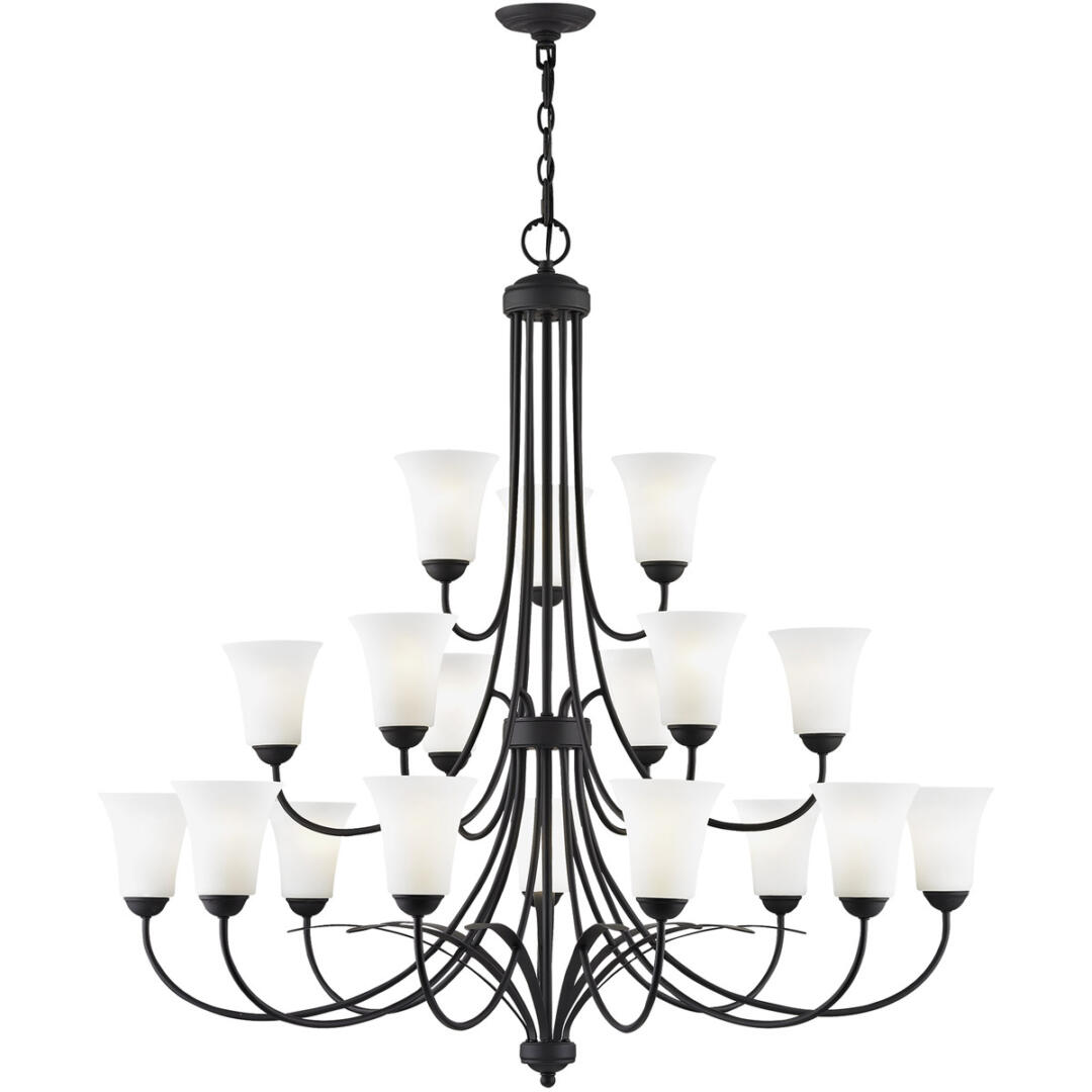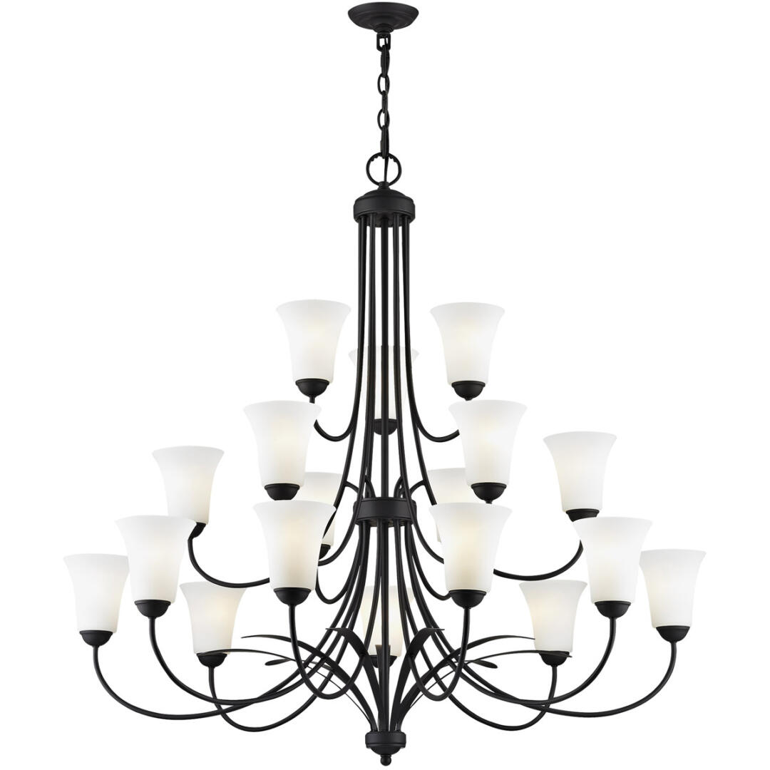 3 Light Black Chain Hang/Ceiling Light fixture with Hand Blown Satin Opal White Glass Shade-Lighting Lumens