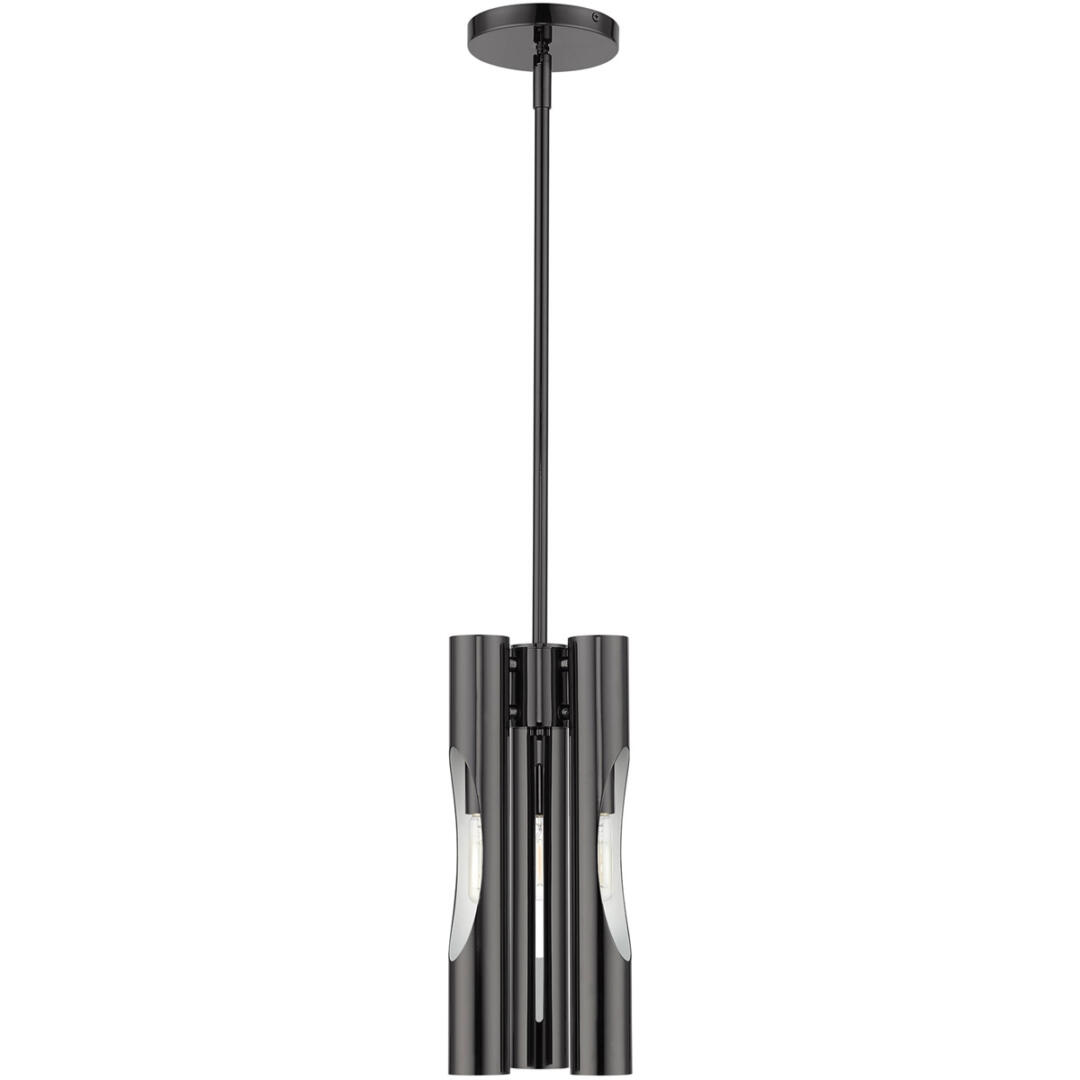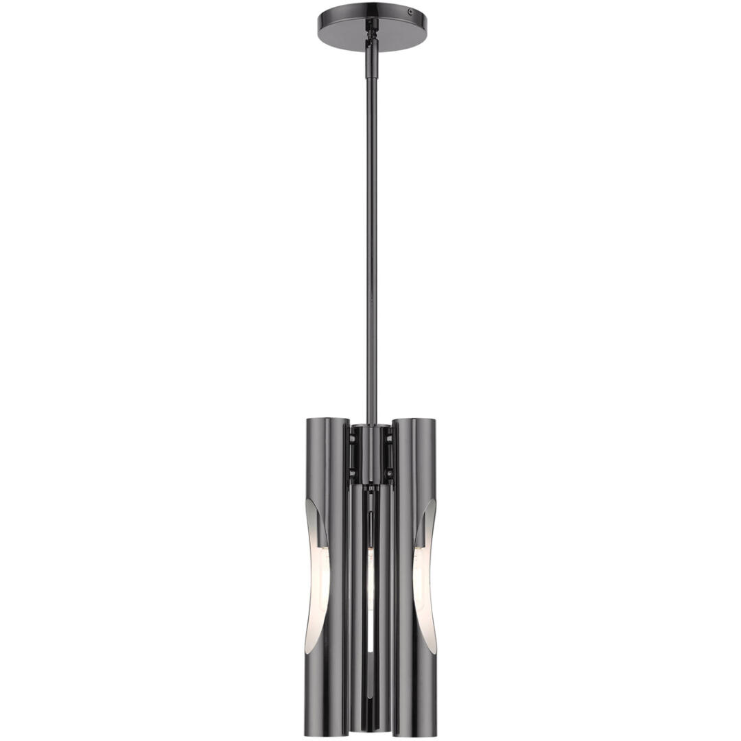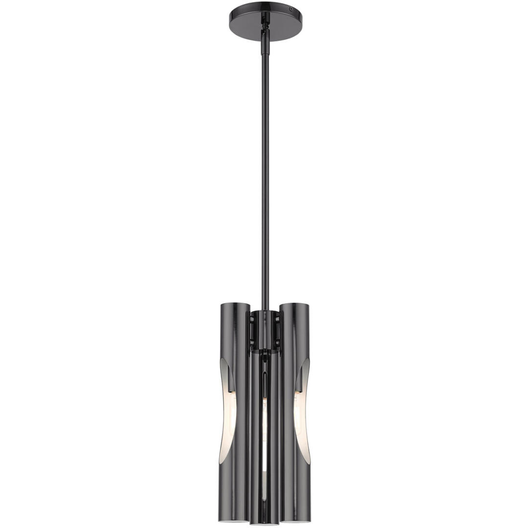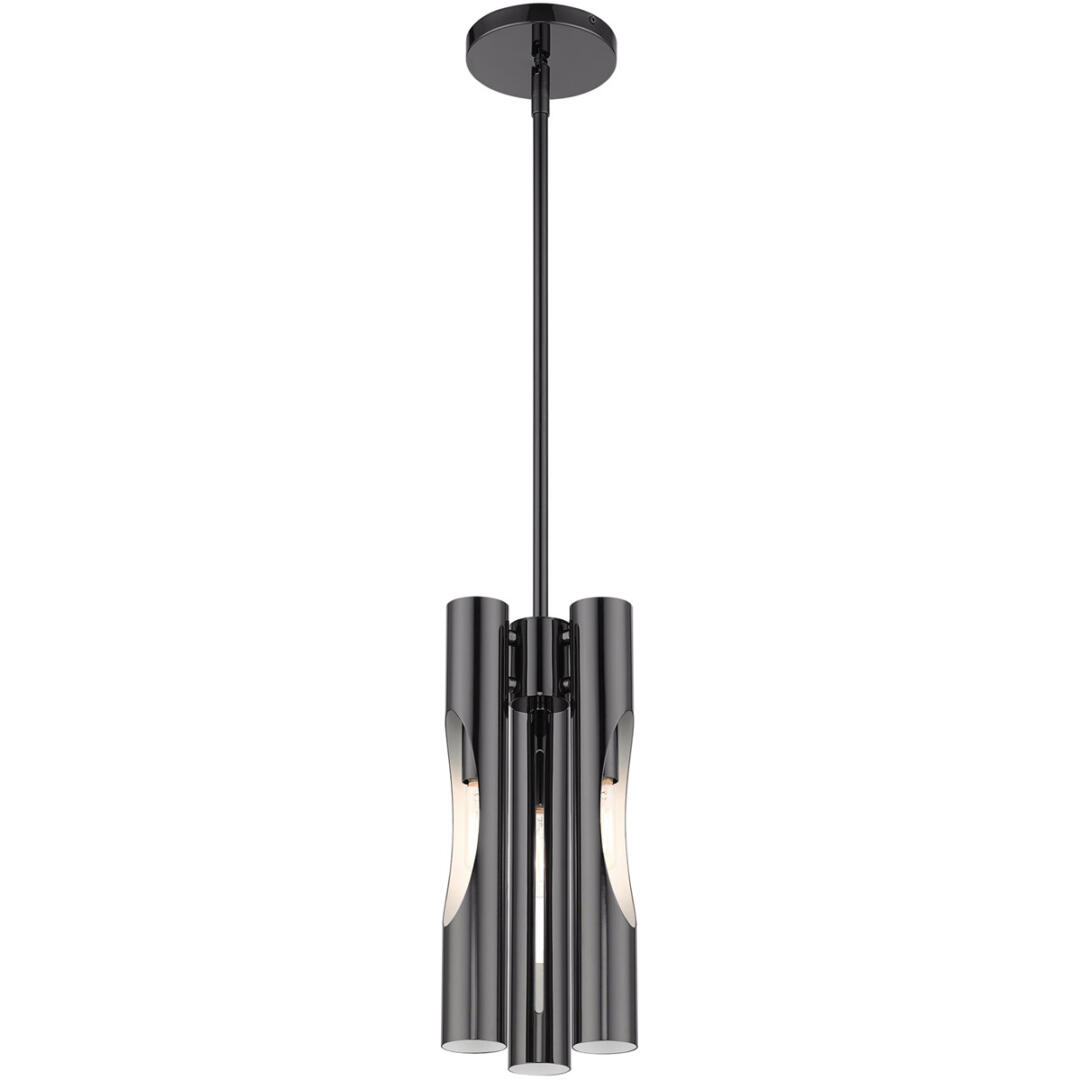 The minimalistic Acra collection was inspired by the industrial landscape of metropolitan cities across Europe and Asia. Delicate tubular shapes are interrupted by clever cutouts to create a visually interesting light distribution. This three-light black chrome finish pendant chandelier will integrate into a contemporary, minimal, urban or sleek interior design setting.