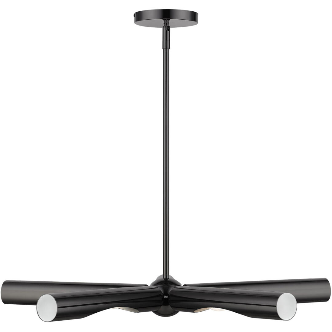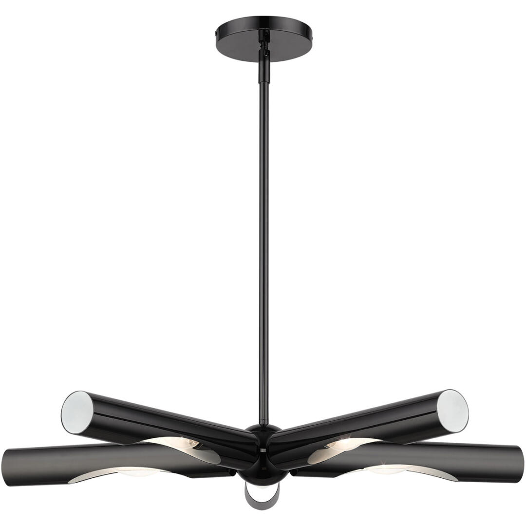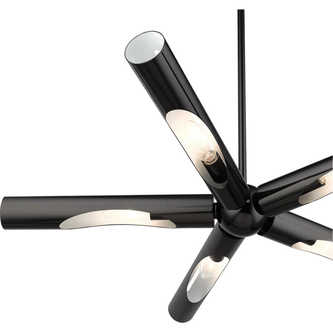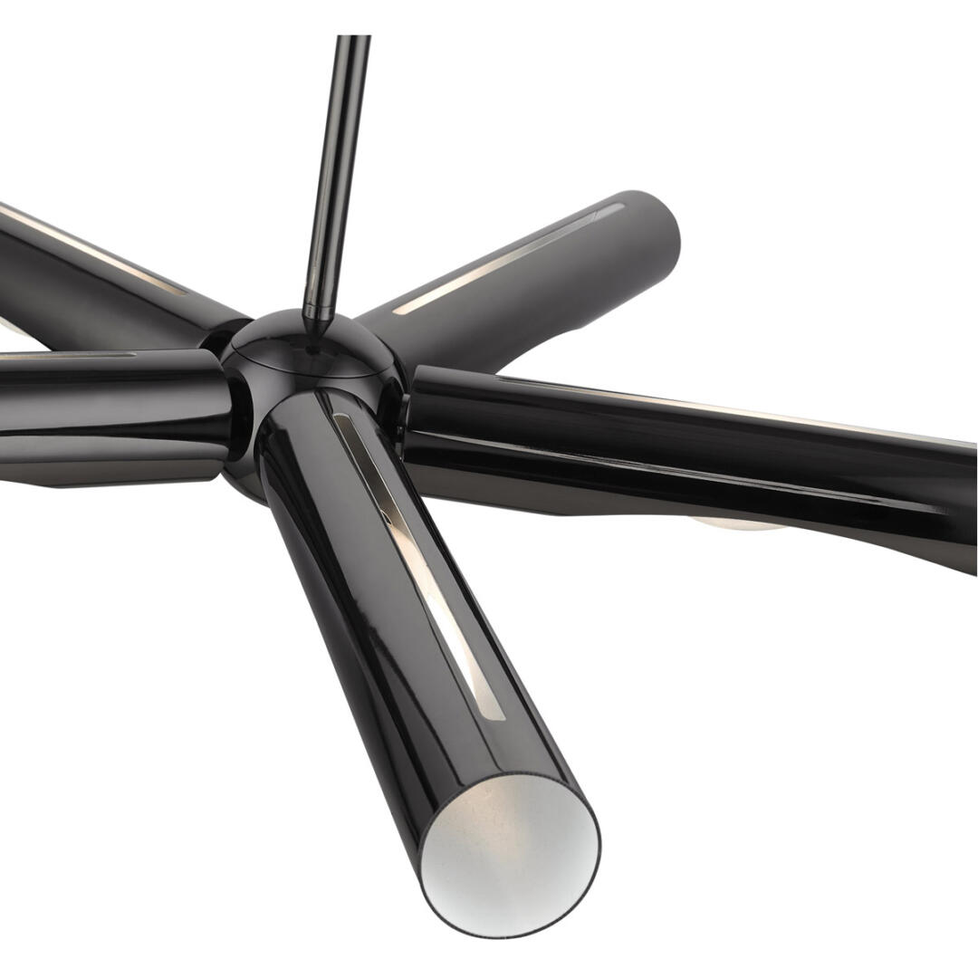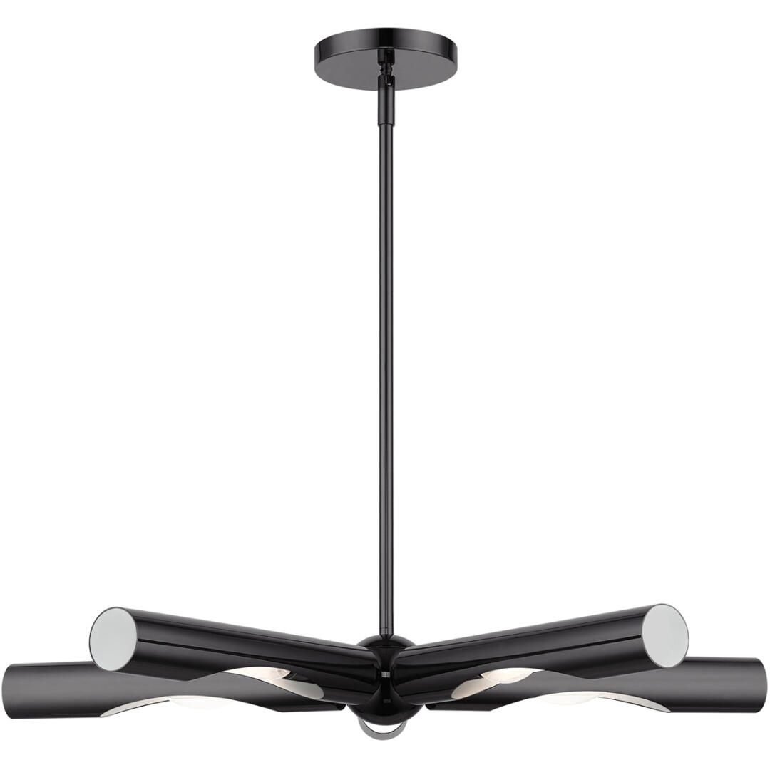 The minimalistic Acra collection was inspired by the industrial landscape of metropolitan cities across Europe and Asia. Delicate tubular shapes are interrupted by clever cutouts to create a visually interesting light distribution. This five-light black chrome finish chandelier will integrate into a contemporary, minimal, urban or sleek interior design setting.