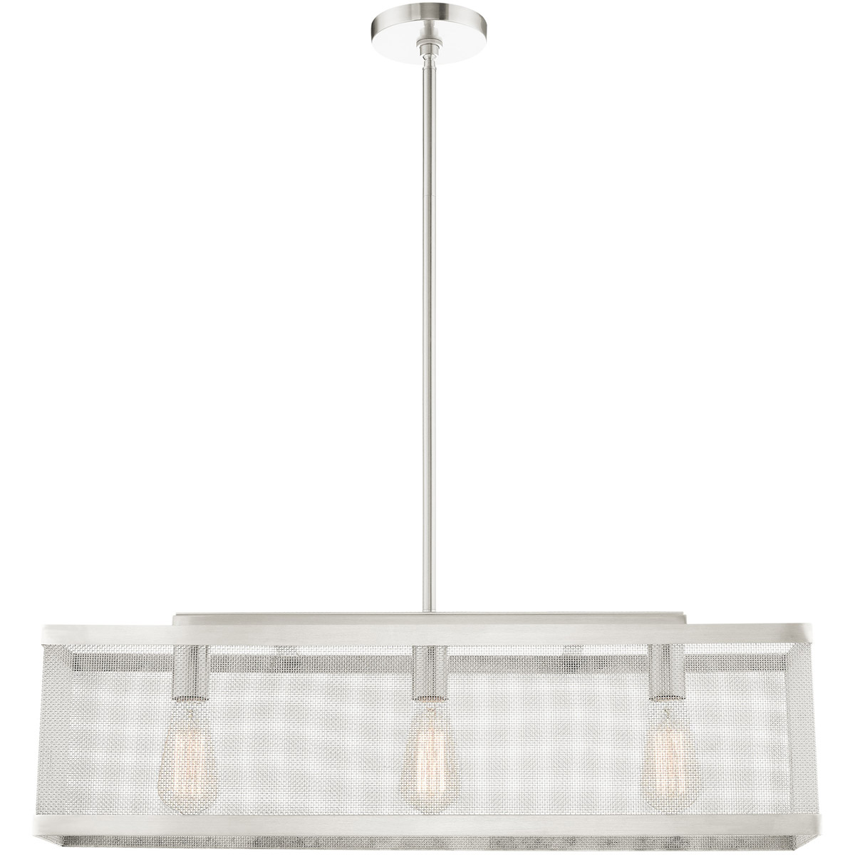 The Industro collection has a clean, crisp look and contemporary appeal. This three-light linear chandelier has a brushed nickel finish and a sleek stainless steel mesh shade. Will adapt well in the living room, dining room and over the kitchen island tastefully elevating your style.