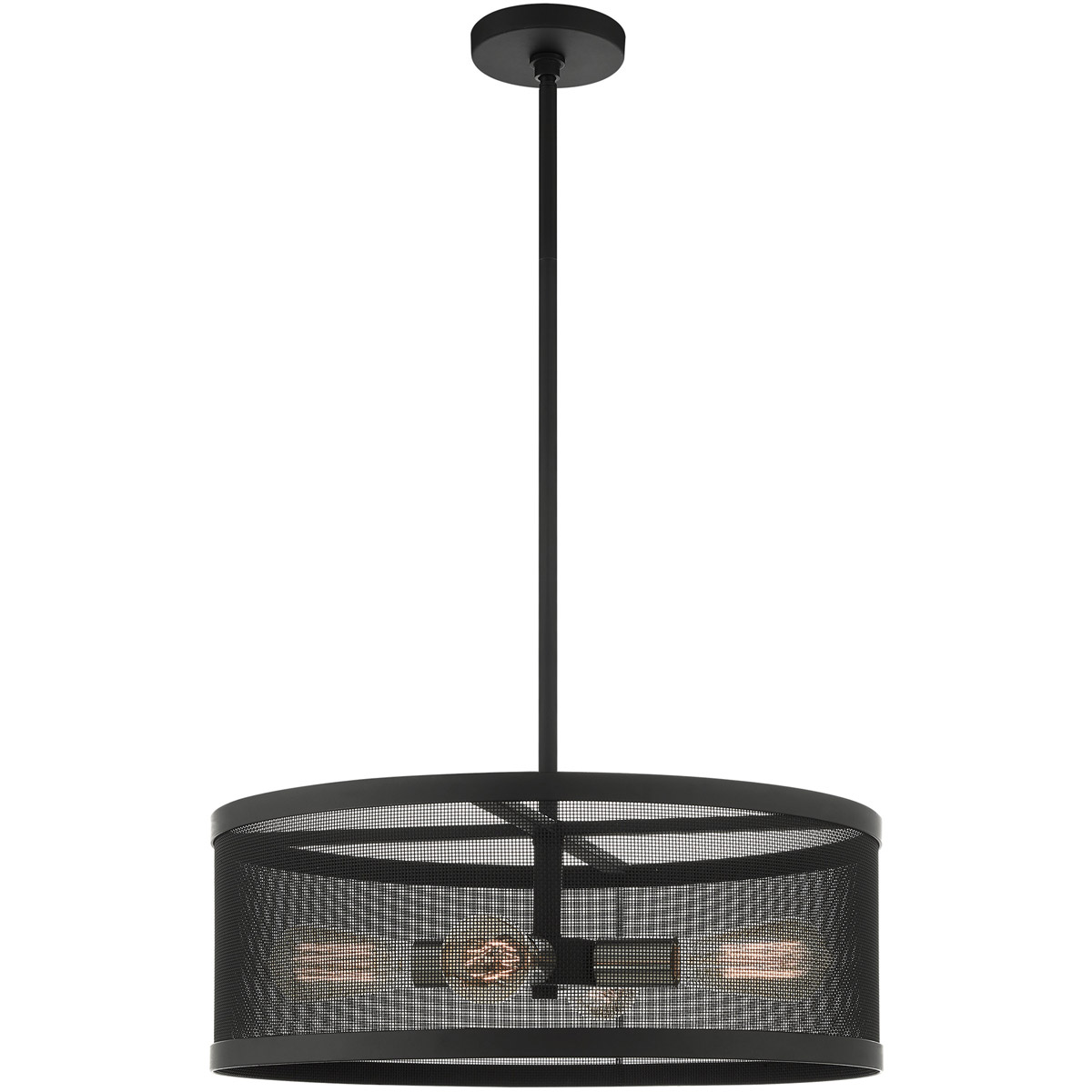 4 Light Black Chandelier with Black Stainless Mesh Shade-Lighting Lumens