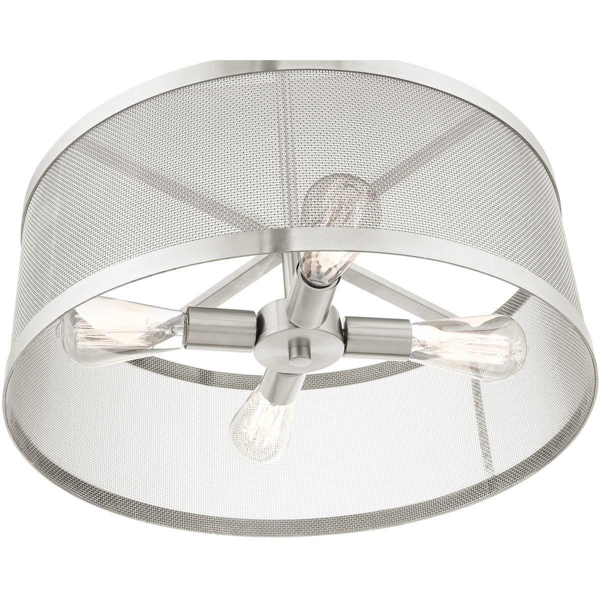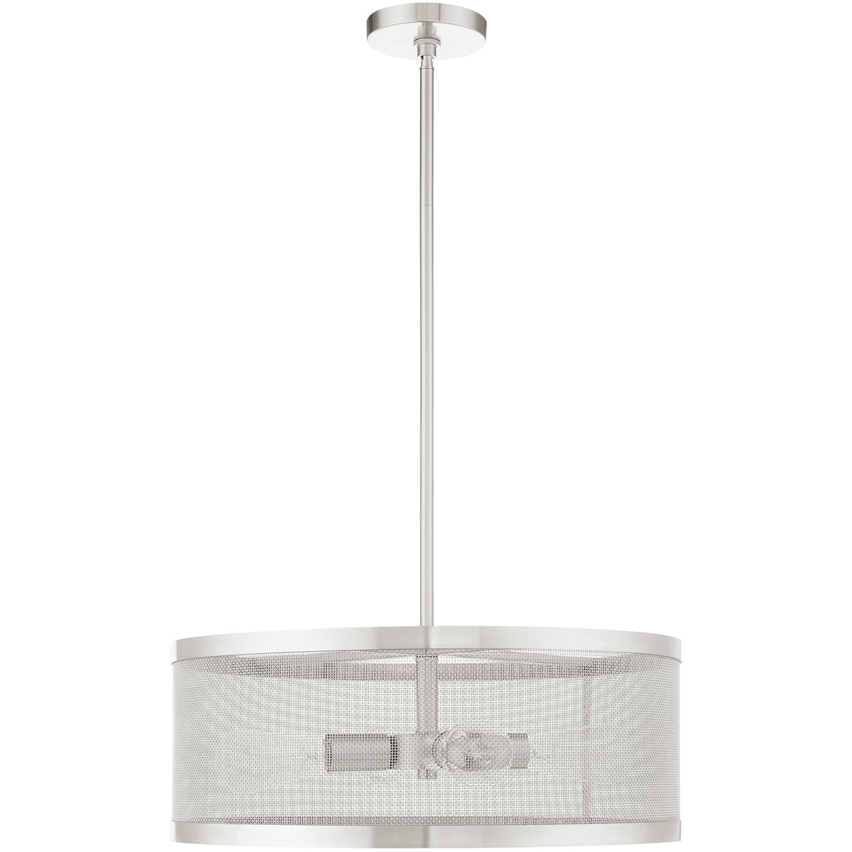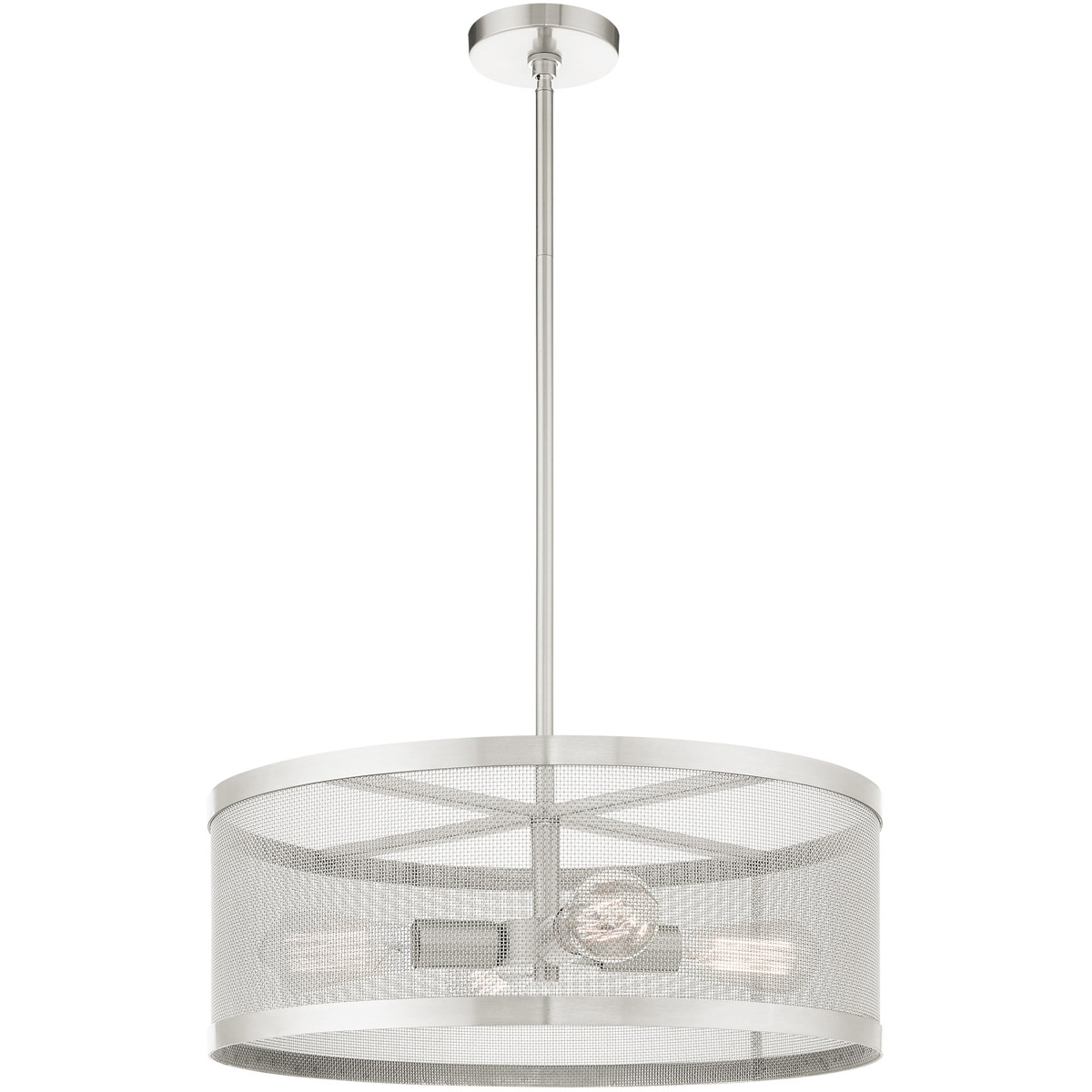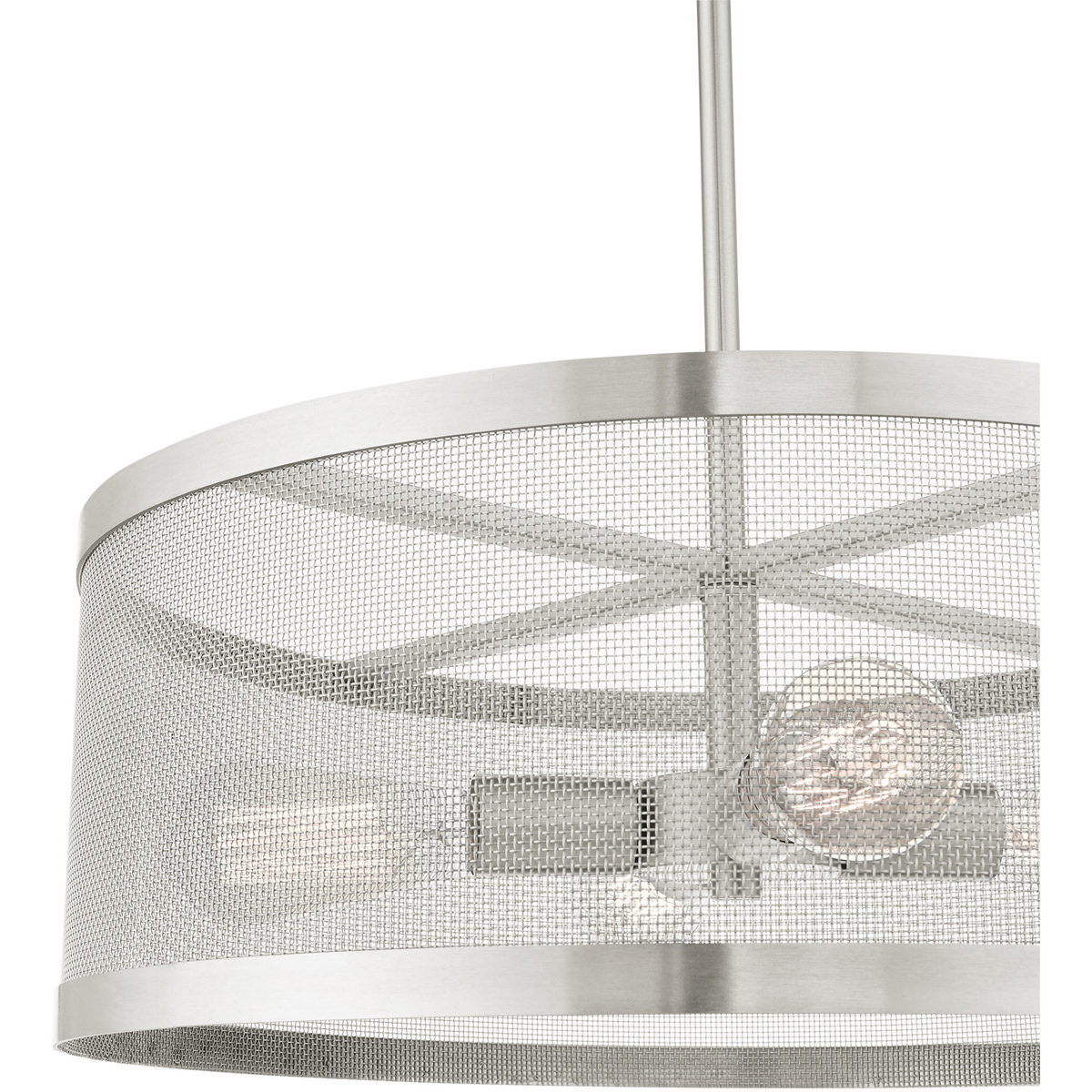 The Industro collection has a clean, crisp look and contemporary appeal. This four-light pendant chandelier has a brushed nickel finish and a sleek stainless steel mesh shade. Will adapt well in the living room, dining room and bedroom tastefully elevating your style.