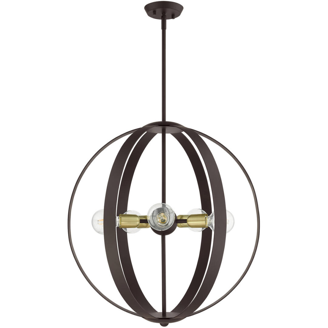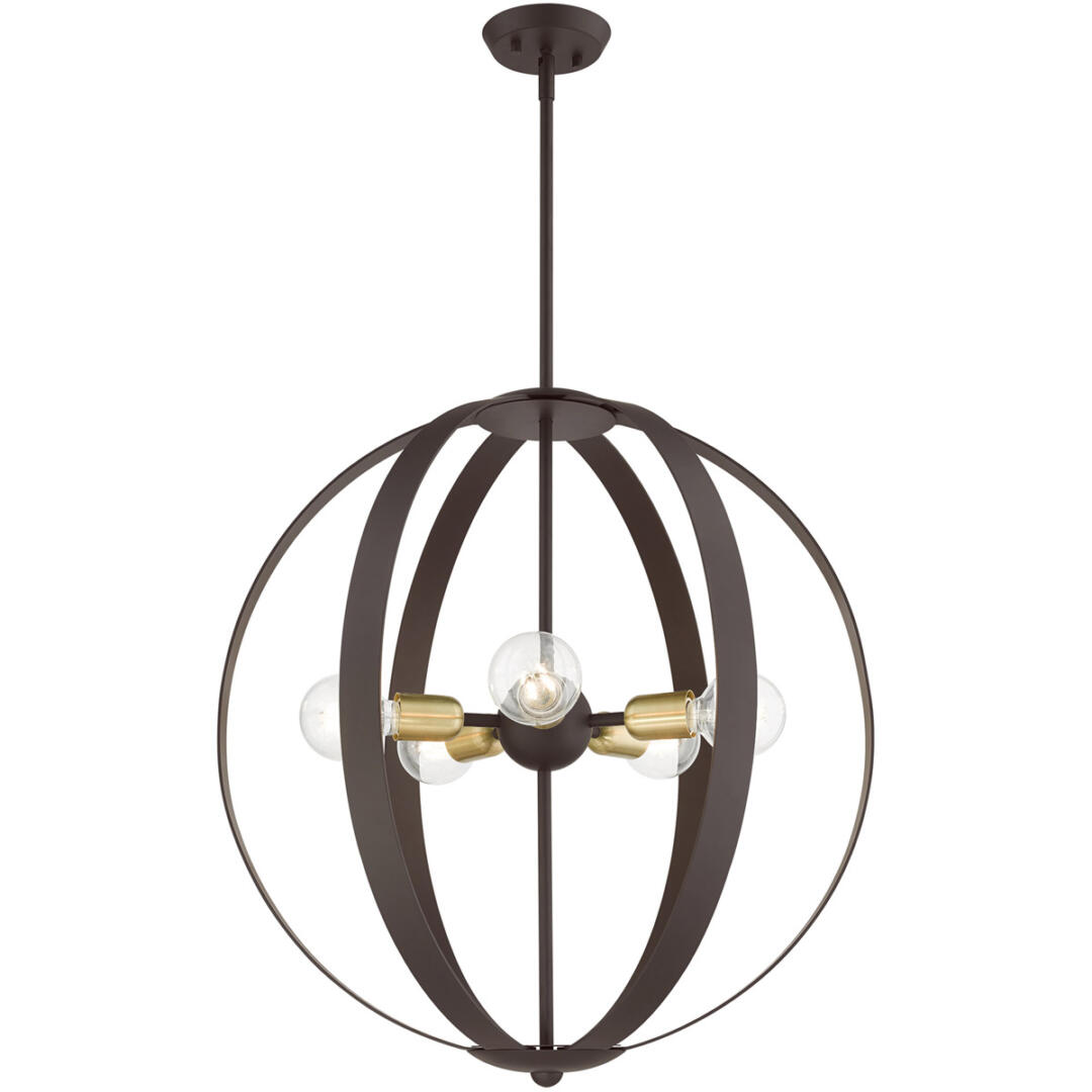 | Finish: Bronze with Satin Brass Accents | Number of Bulb: 5 |
