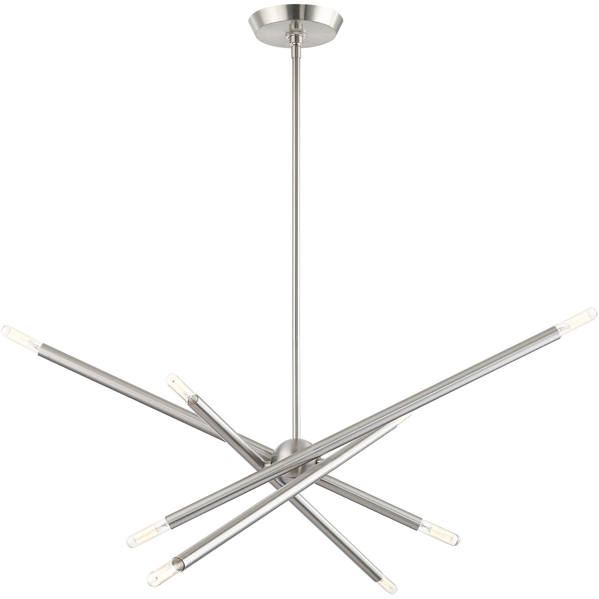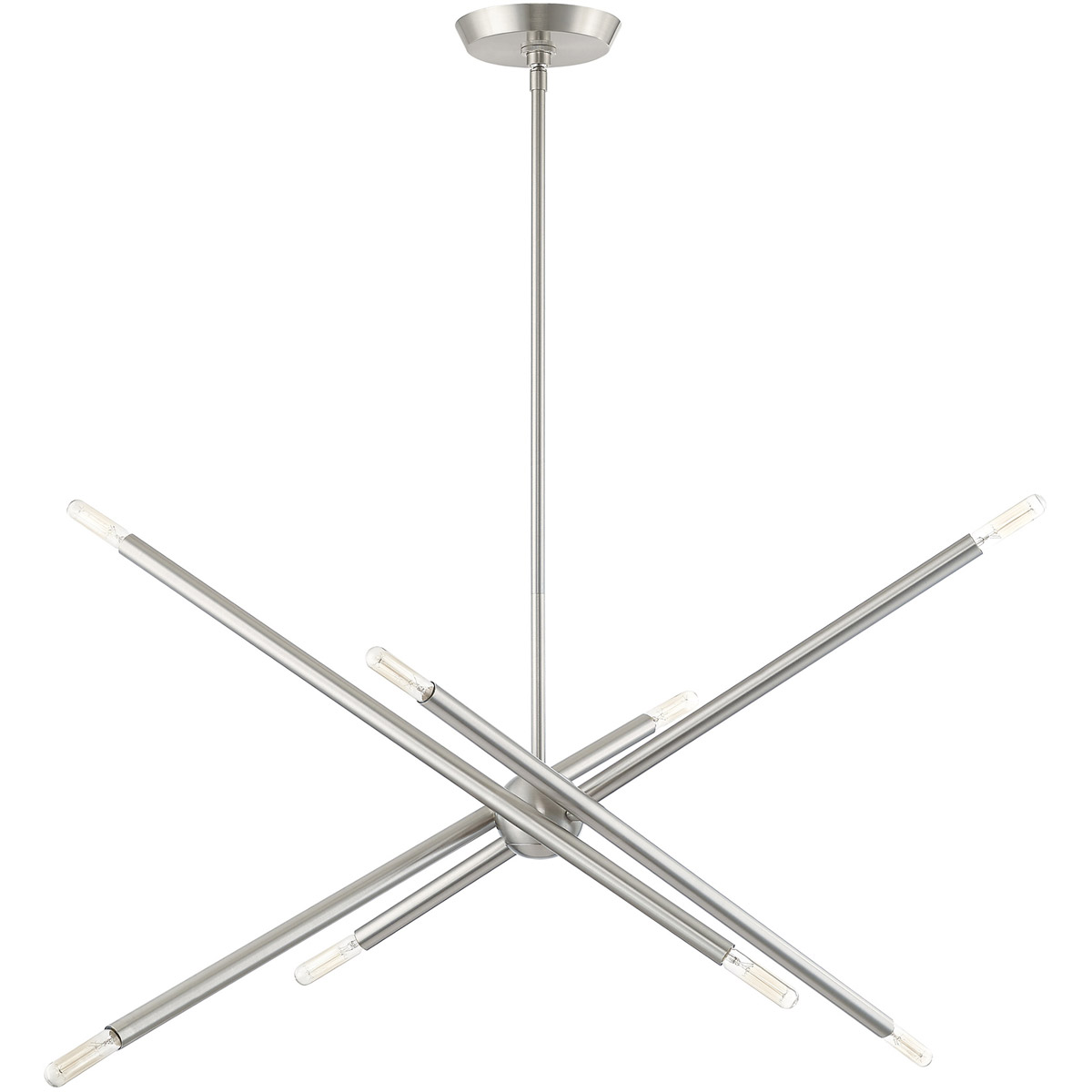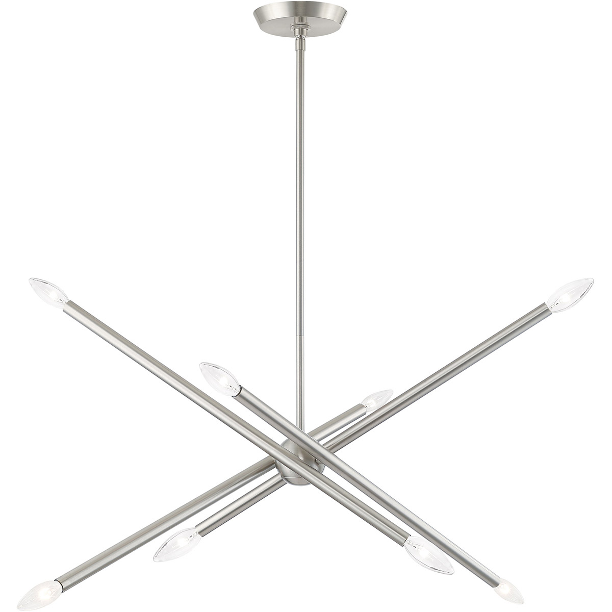 An iconic linear chandelier, the Soho features an organic, asymmetrical design in a brushed nickel finish. Ideal for kitchens or dining room settings, these space-aged inspired pieces are so versatile they can be incorporated into a variety of interiors.