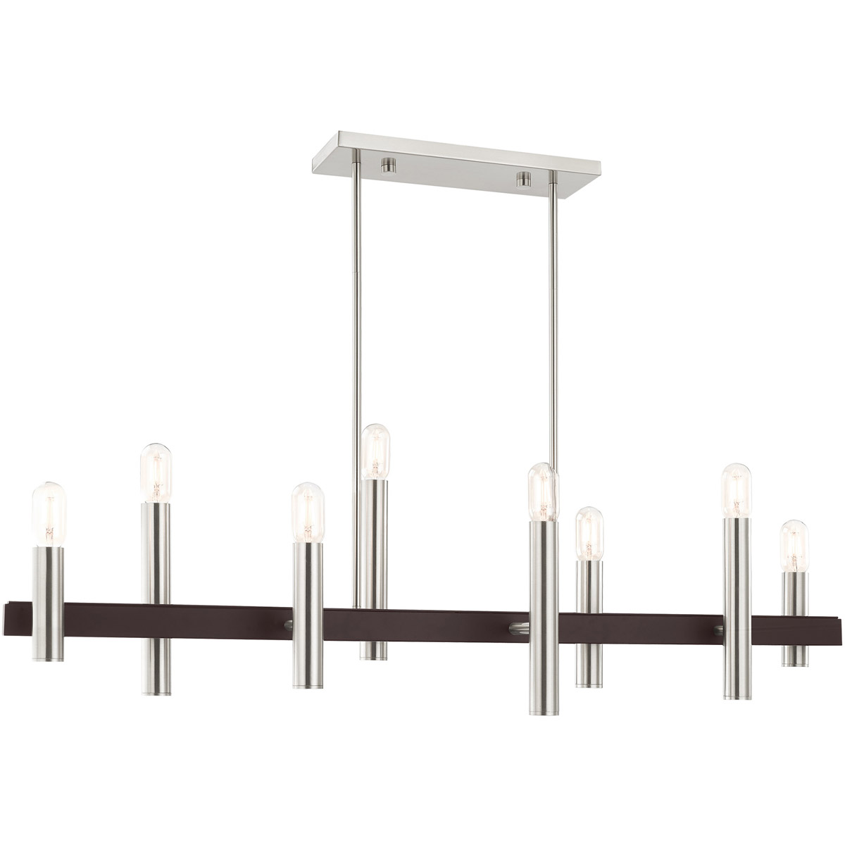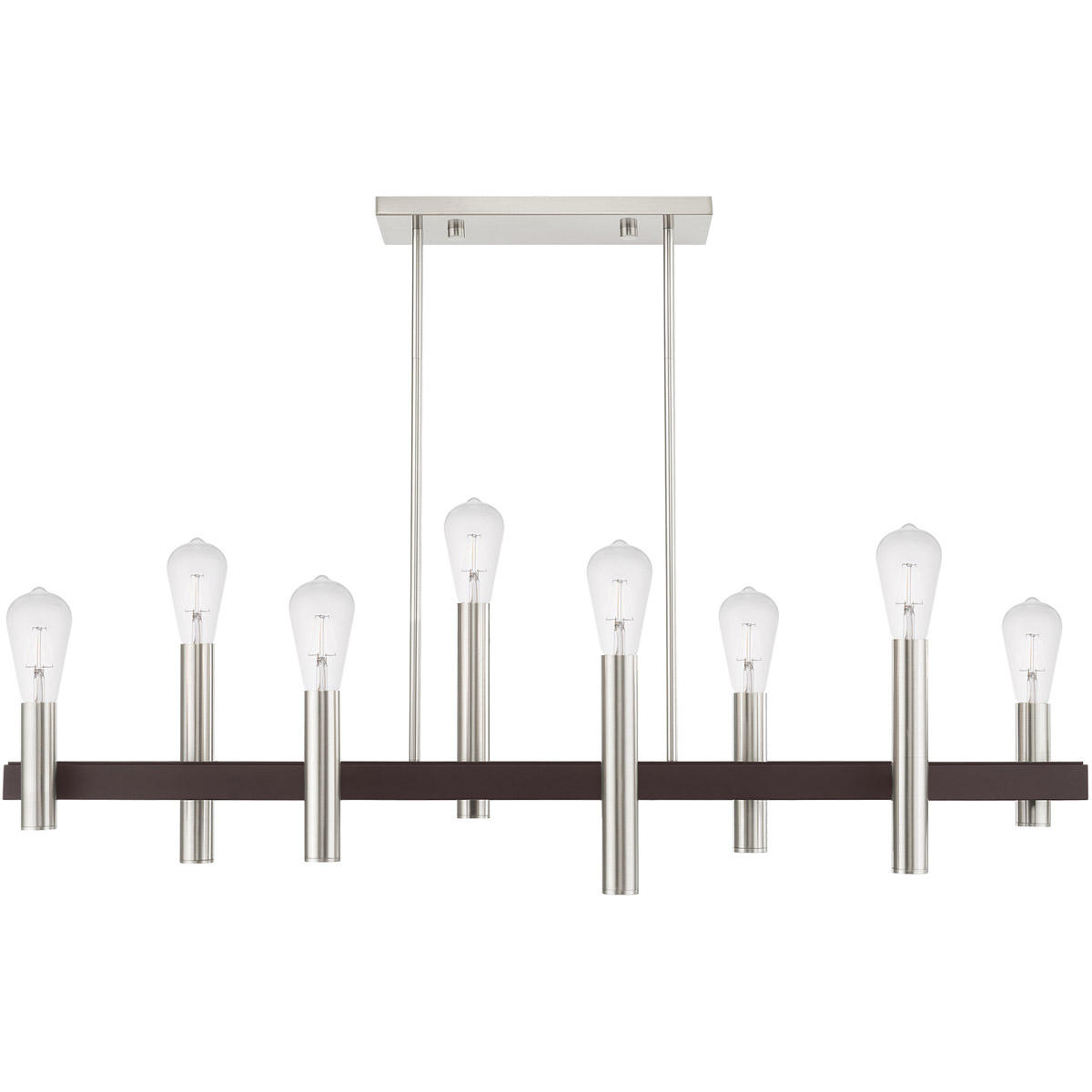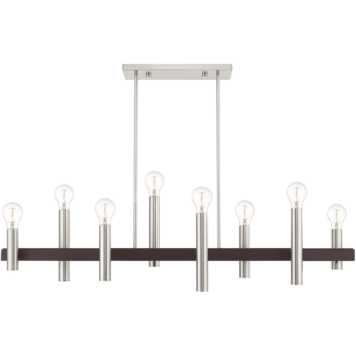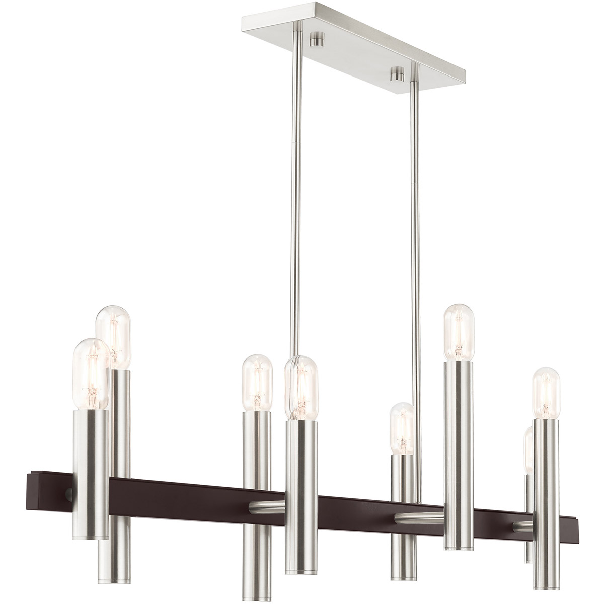 10 inch 8 Light Brushed Nickel & Bronze Linear Chandelier with Steel base material-Lighting Lumens
