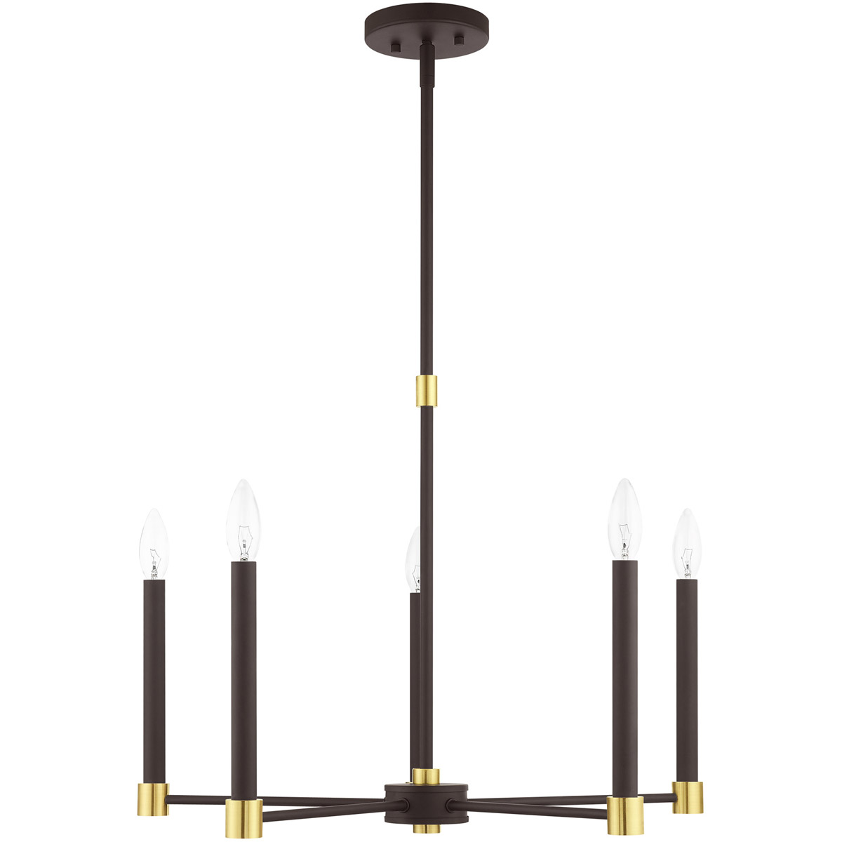 | Finish: Bronze with Satin Brass Accents | Number of Bulb: 5 |