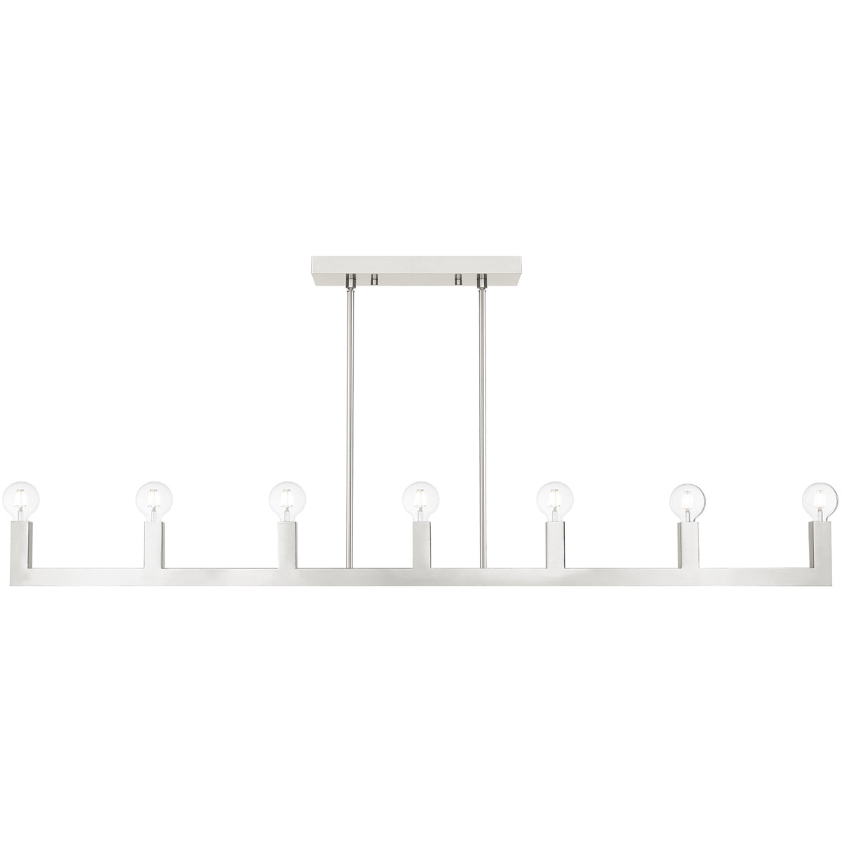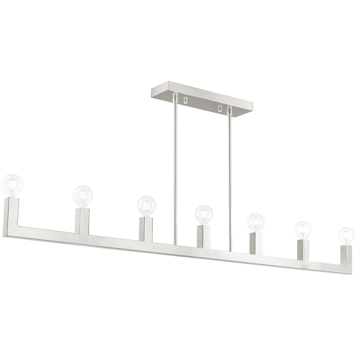 Less is more with this sleek minimalist styled Solna collection. With brushed nickel finish stainless steel square tubular arms, this extra large seven-light linear chandelier is the perfect light for adding modern pizzazz to your decor.