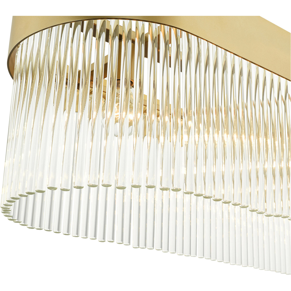 The Norwich six-light large linear crystal chandelier will become an attention-grabbing feature in your modern home decor. The soft gold finish graces the design with elegance and charm, providing a timeless and glamorous quality to any interior. The clear crystal rods give the sconce a sleek and attractive appearance.