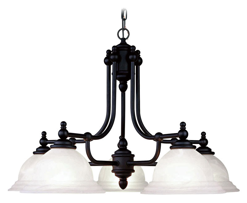 5 Light Black Chandelier with White Alabaster Glass Shade-Lighting Lumens