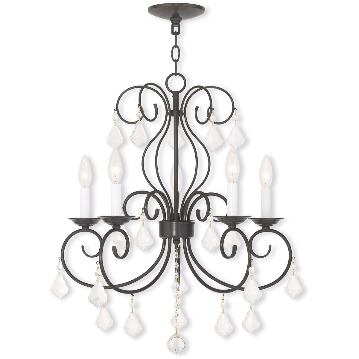 5 Light English Bronze Mini Chandelier with Clear Crystals Shade-Lighting Lumens