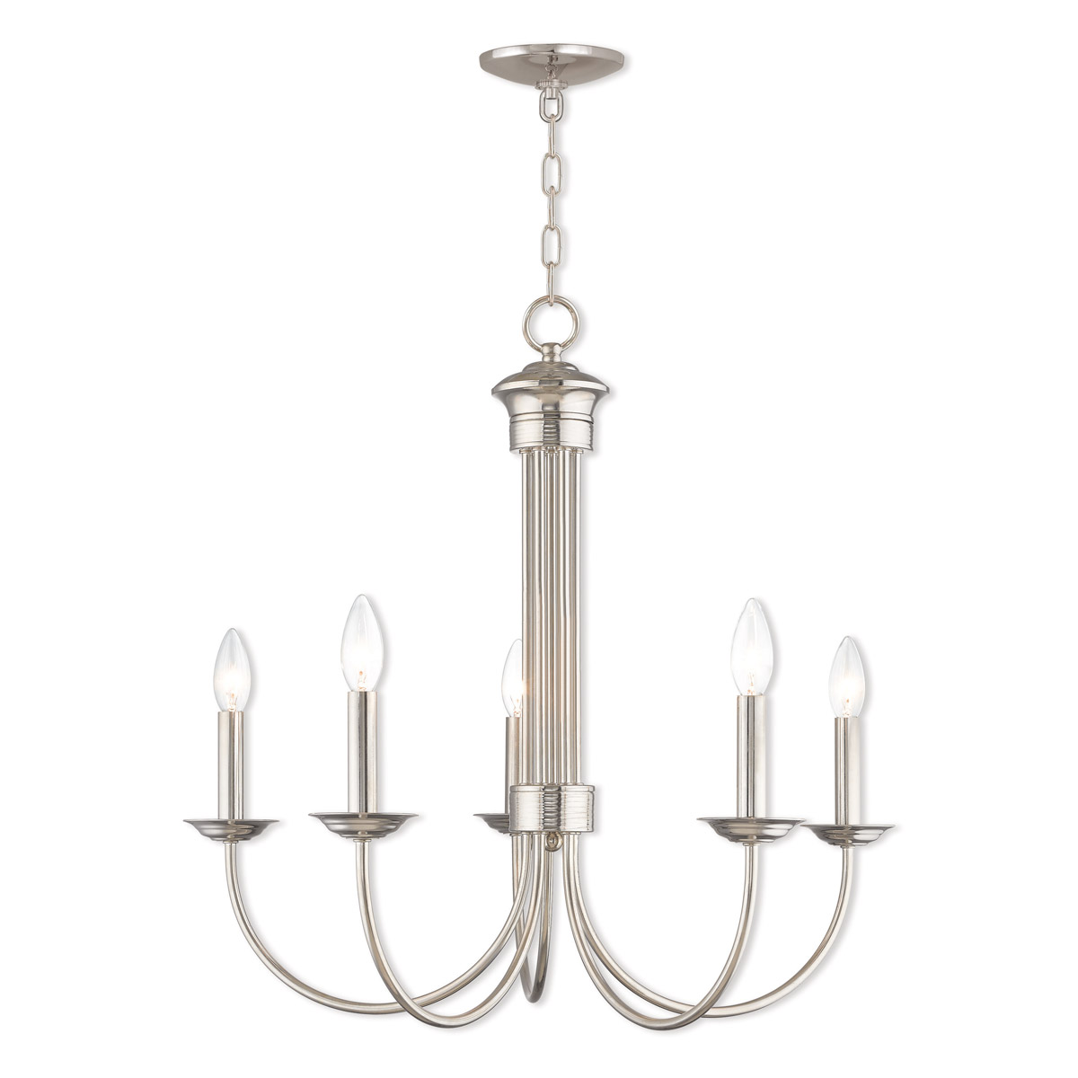 5 Light Polished Nickel Chandelier with Steel base material-Lighting Lumens