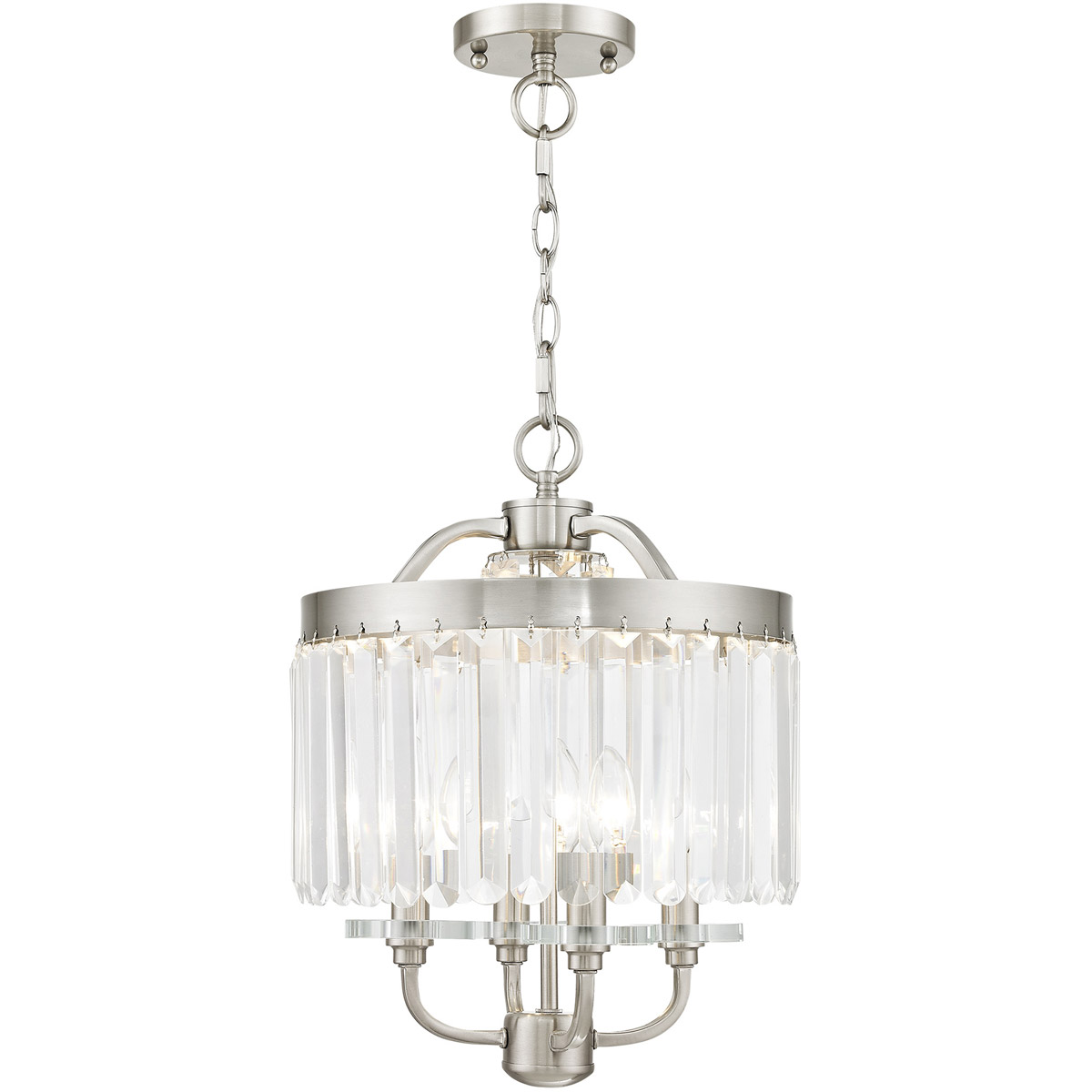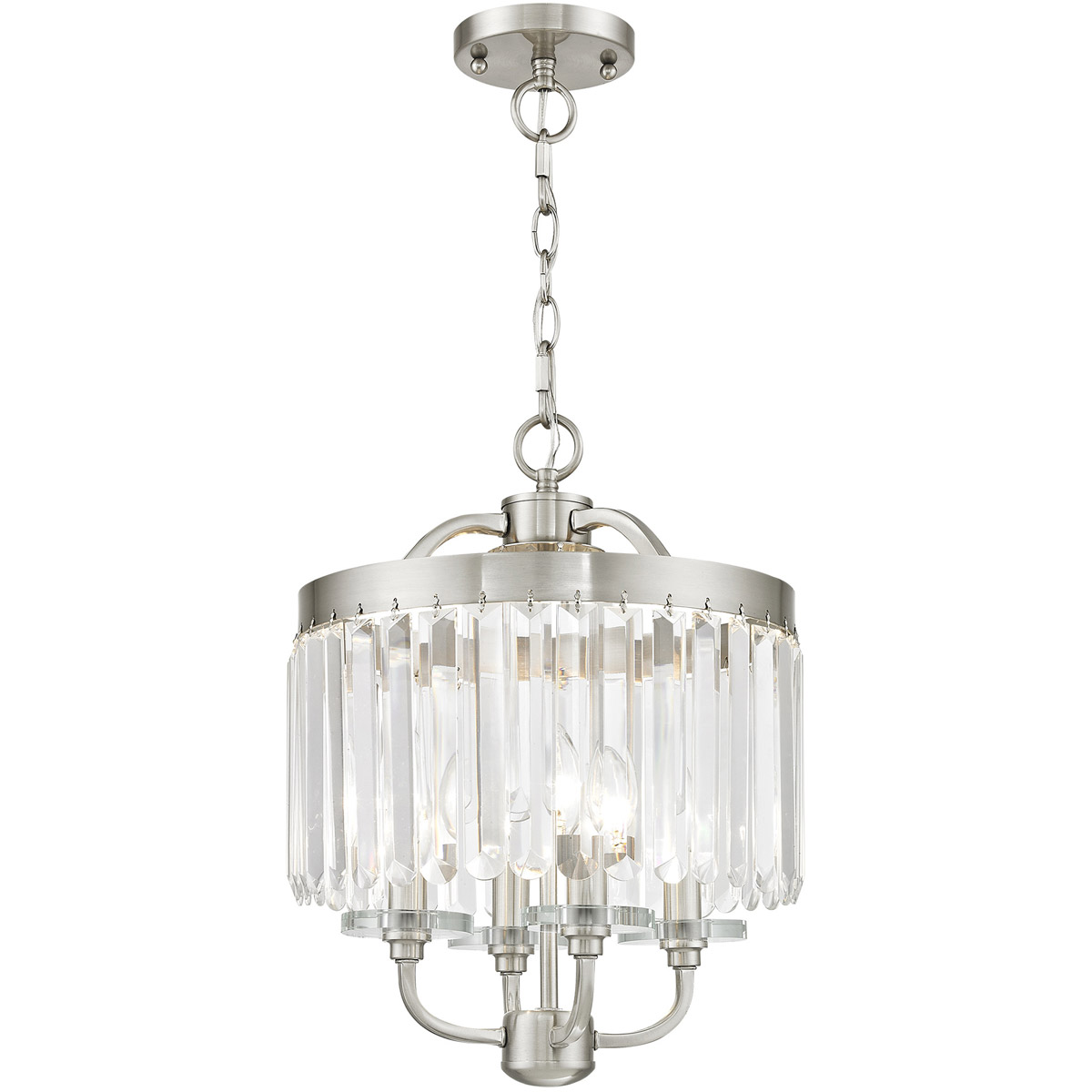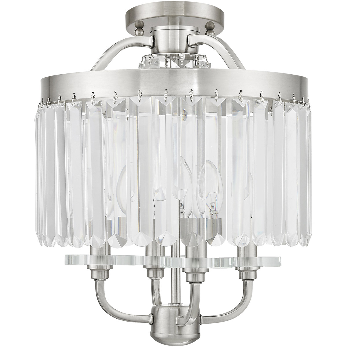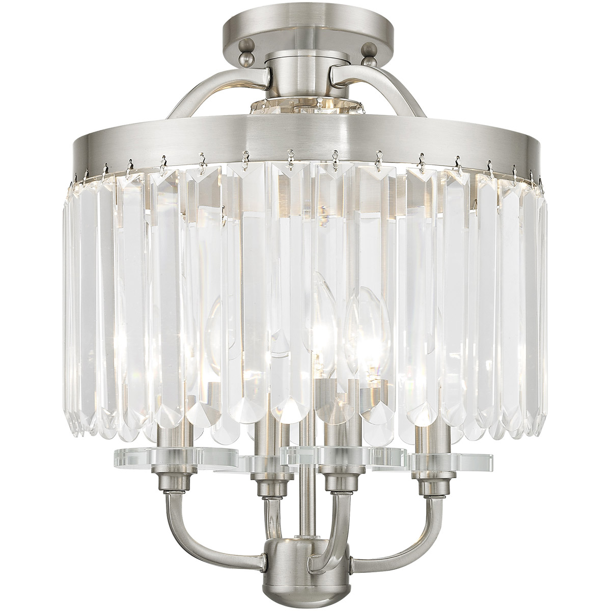 The Ashton four light mini chandelier/semi flush mount emanates the 1920s casual style mixed beautifully with high sophistication. classical touches in the mini chandelier/semi flush mount gives off an art deco feel with the prismatic crystals.