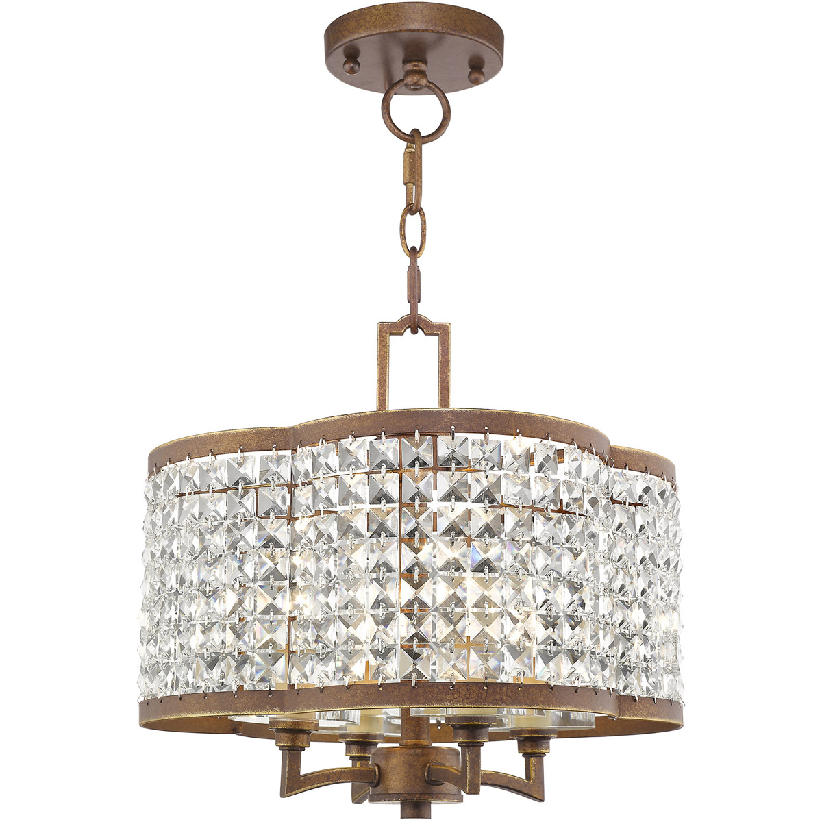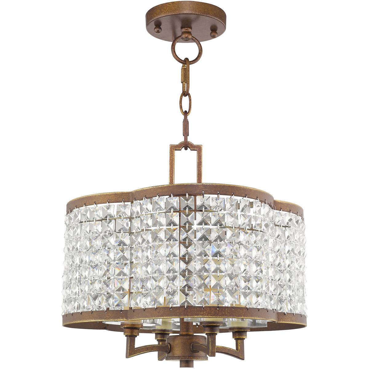 Crystal strands strung in a decorative shade design define this classically glamorous mini chandelier/semi flush mount in which the bulbs are completely shaded, allowing the light to shine through the K9 crystal for a warm, intimate lighting feel.