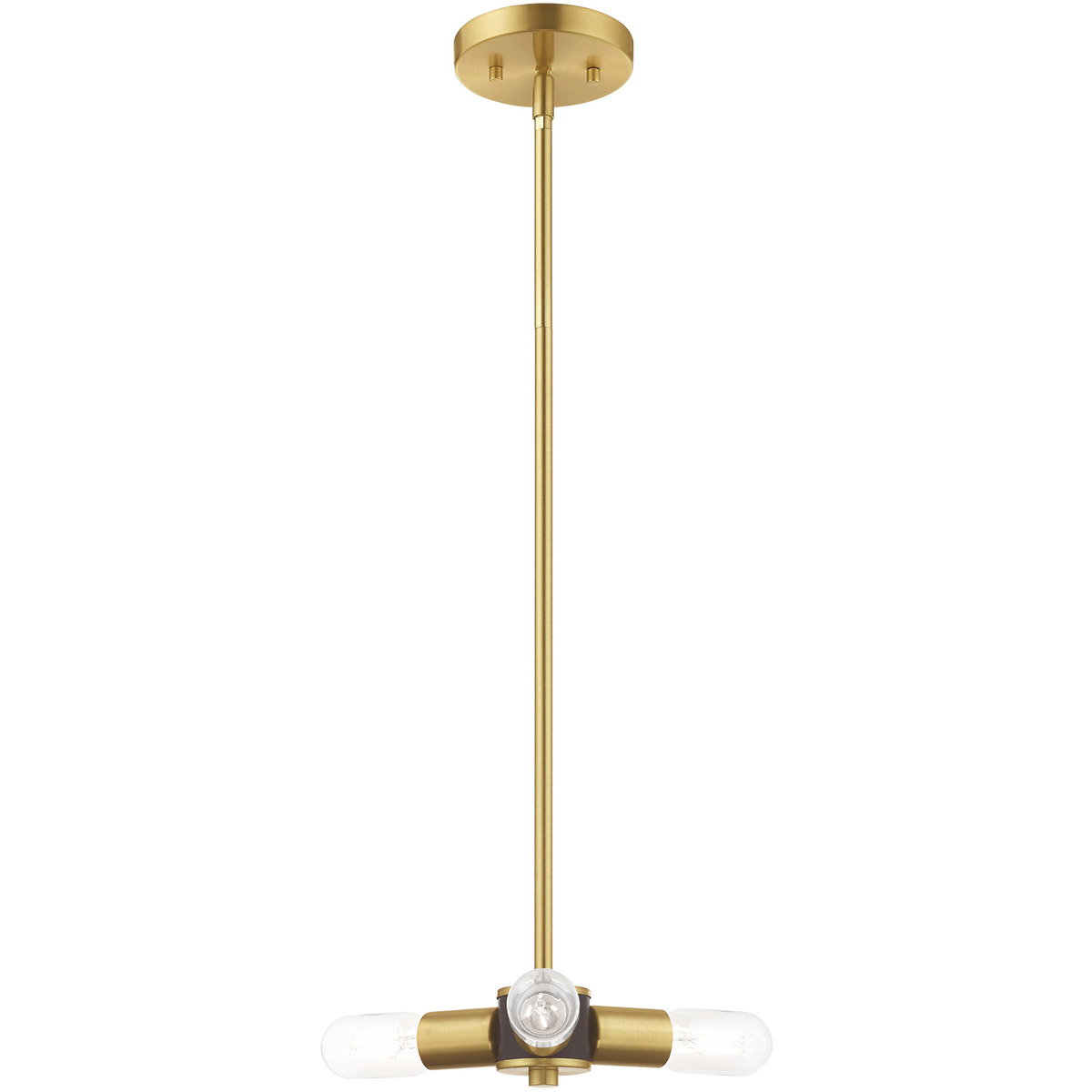 Exposed bulb sockets are fixed over satin brass with bronze accent to create an eclectic look perfect for mid century modern or transitional spaces wanting an industrial touch.