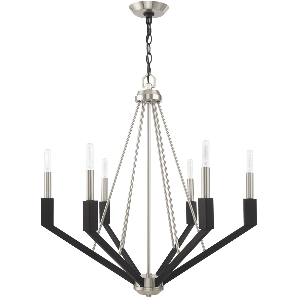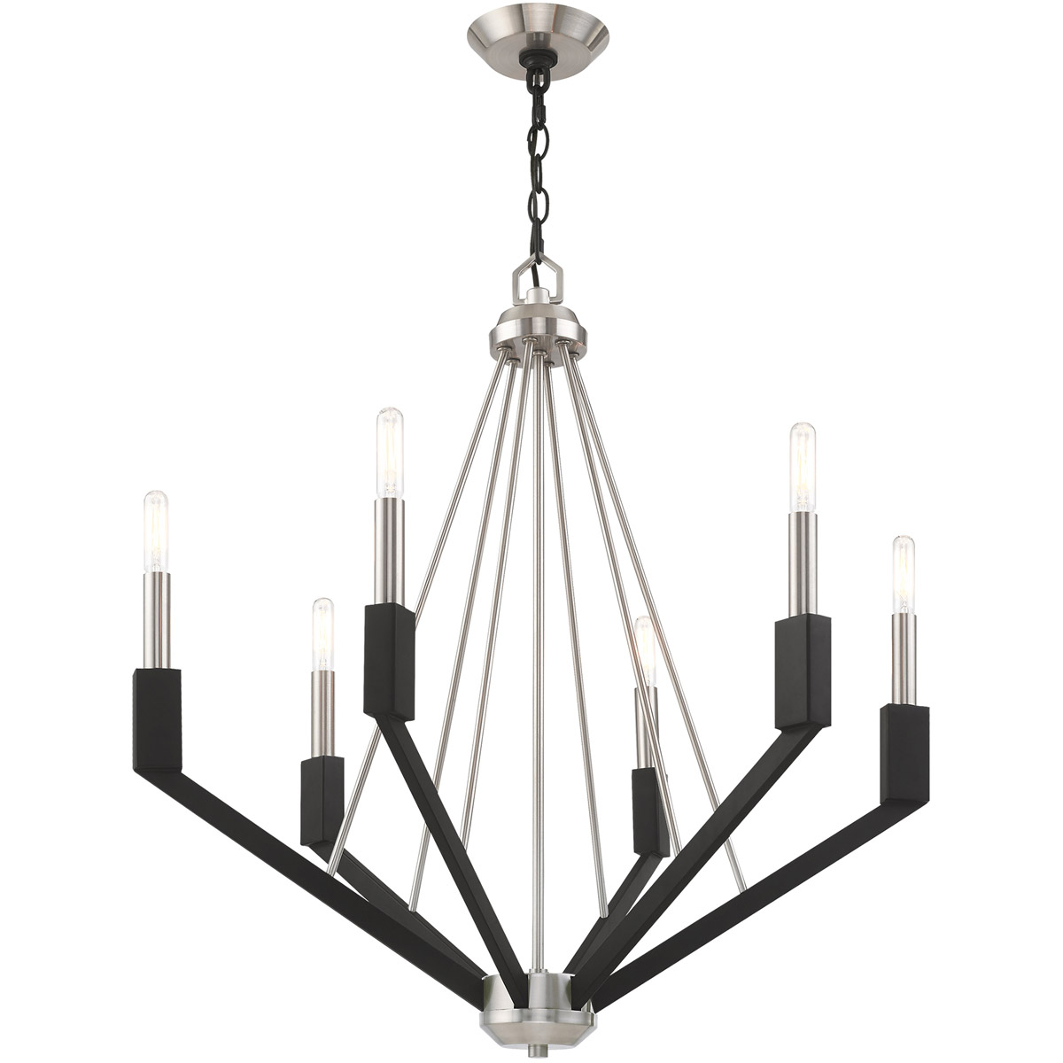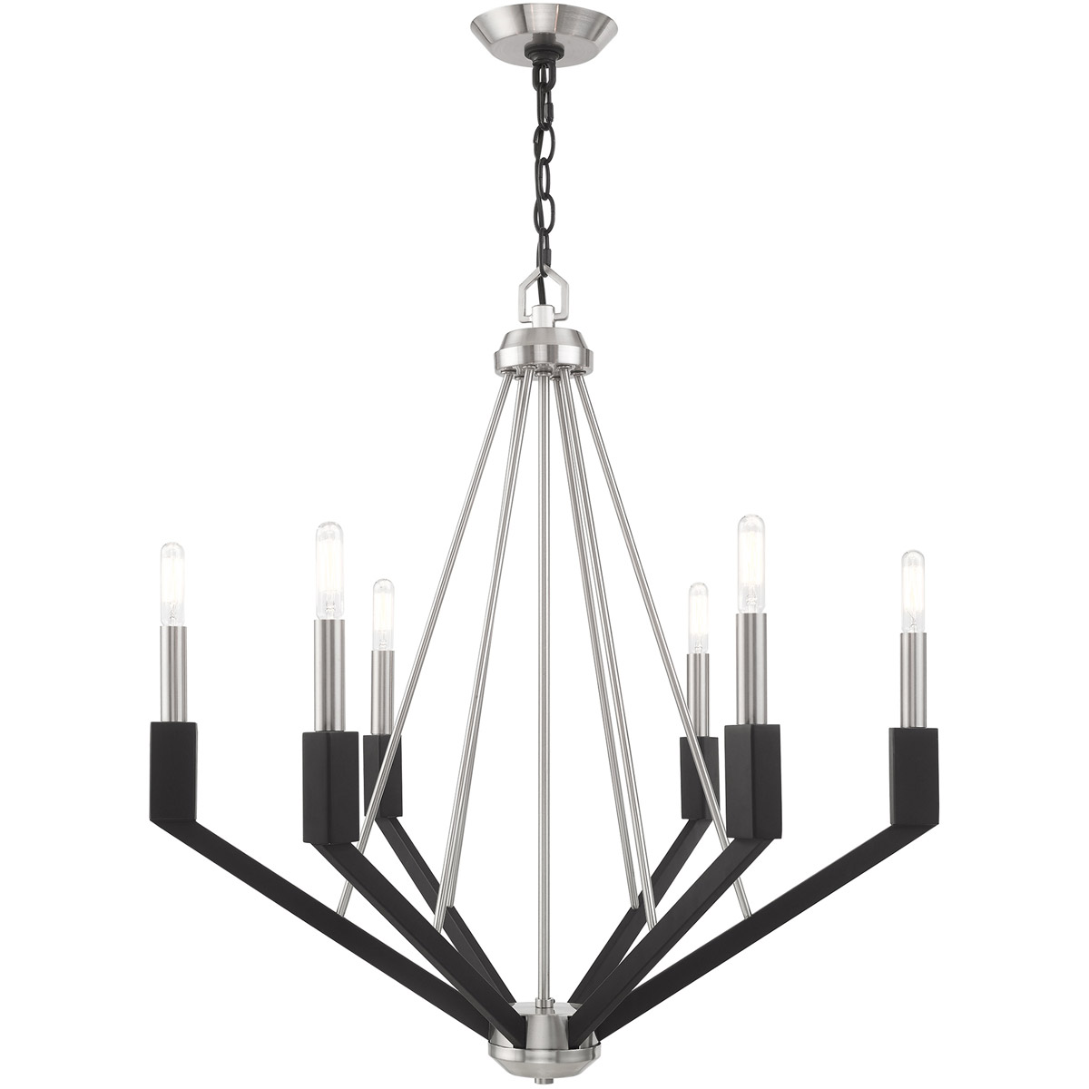 Illuminate your home with bright designs from the Beckett collection. The six light chandelier emulates a mid-century modern style made popular in the 50s and 60s. The brushed nickel frame is accented with black accents, helping to fully complete this look.