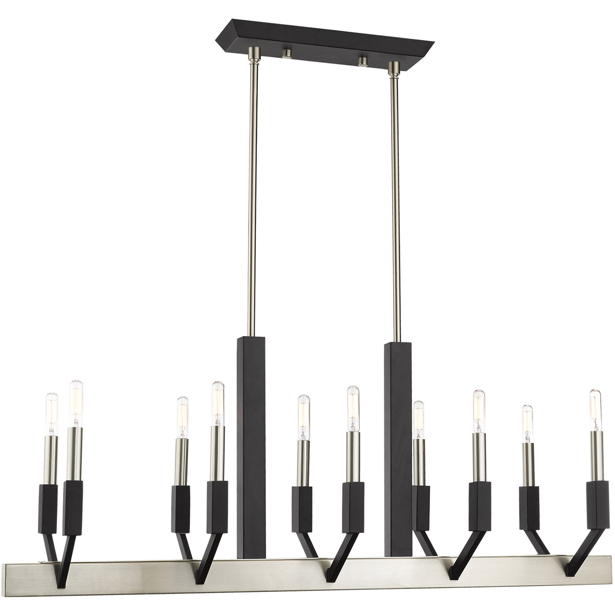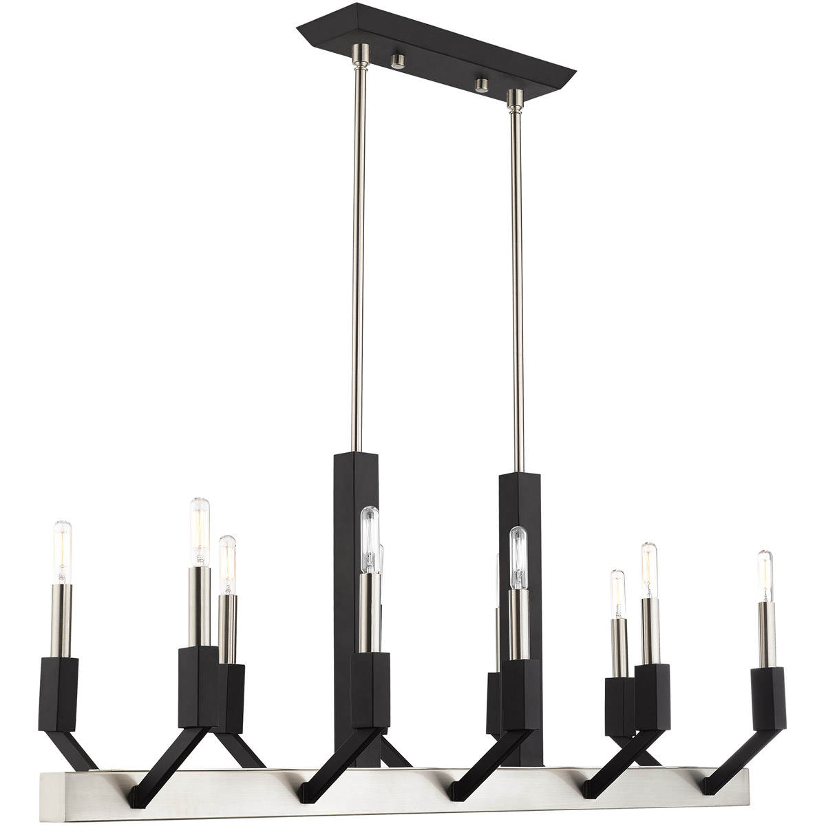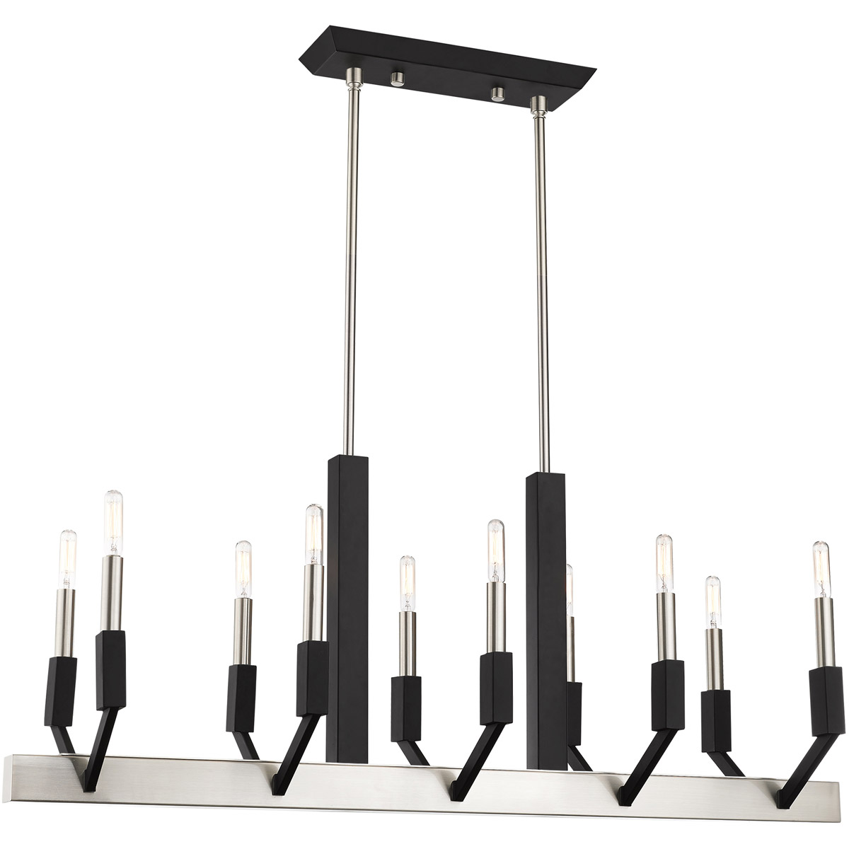 Illuminate your home with bright designs from the Beckett collection. The ten light linear chandelier emulates a mid-century modern style made popular in the 50s and 60s. The brushed nickel frame is accented with black accents, helping to fully complete this look.