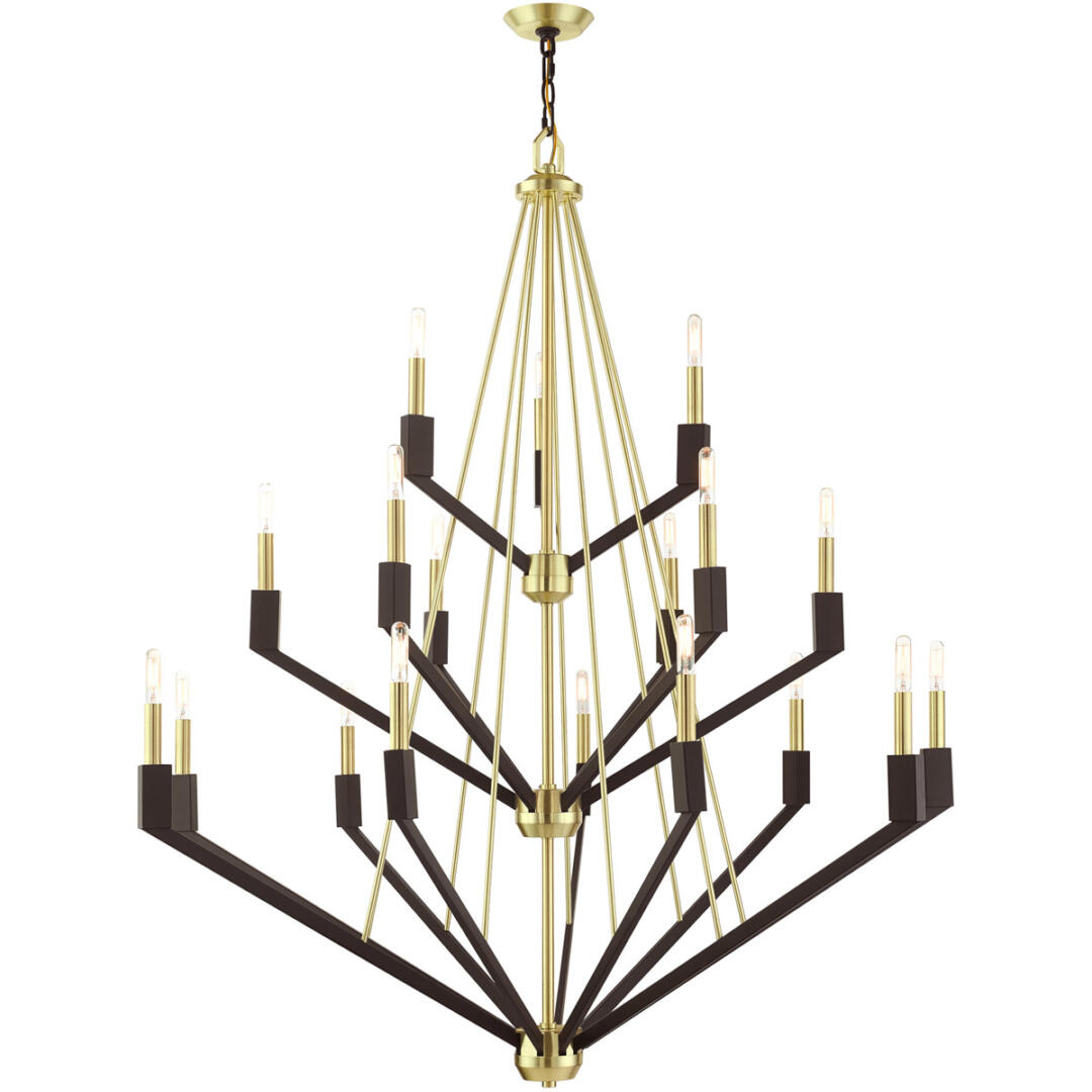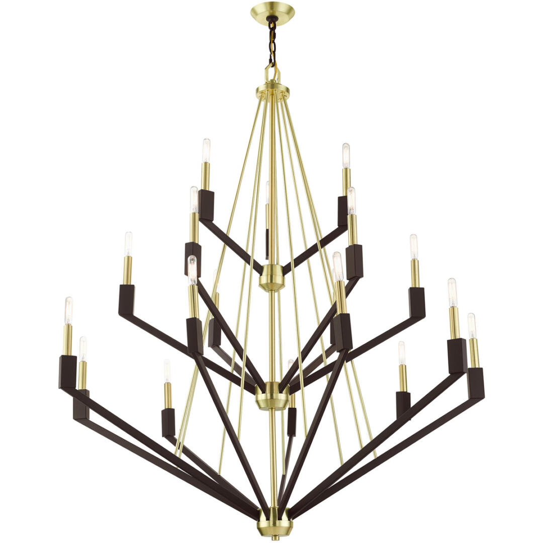 Illuminate your home with a bright design from the Beckett collection. This eighteen light grande 3-tier foyer chandelier emulates a mid-century modern style made popular in the 50s and 60s. The satin brass frame is combined with bronze finish accents. Perfect for a contemporary or transitional luxury bathroom, bedroom or hallway setting.