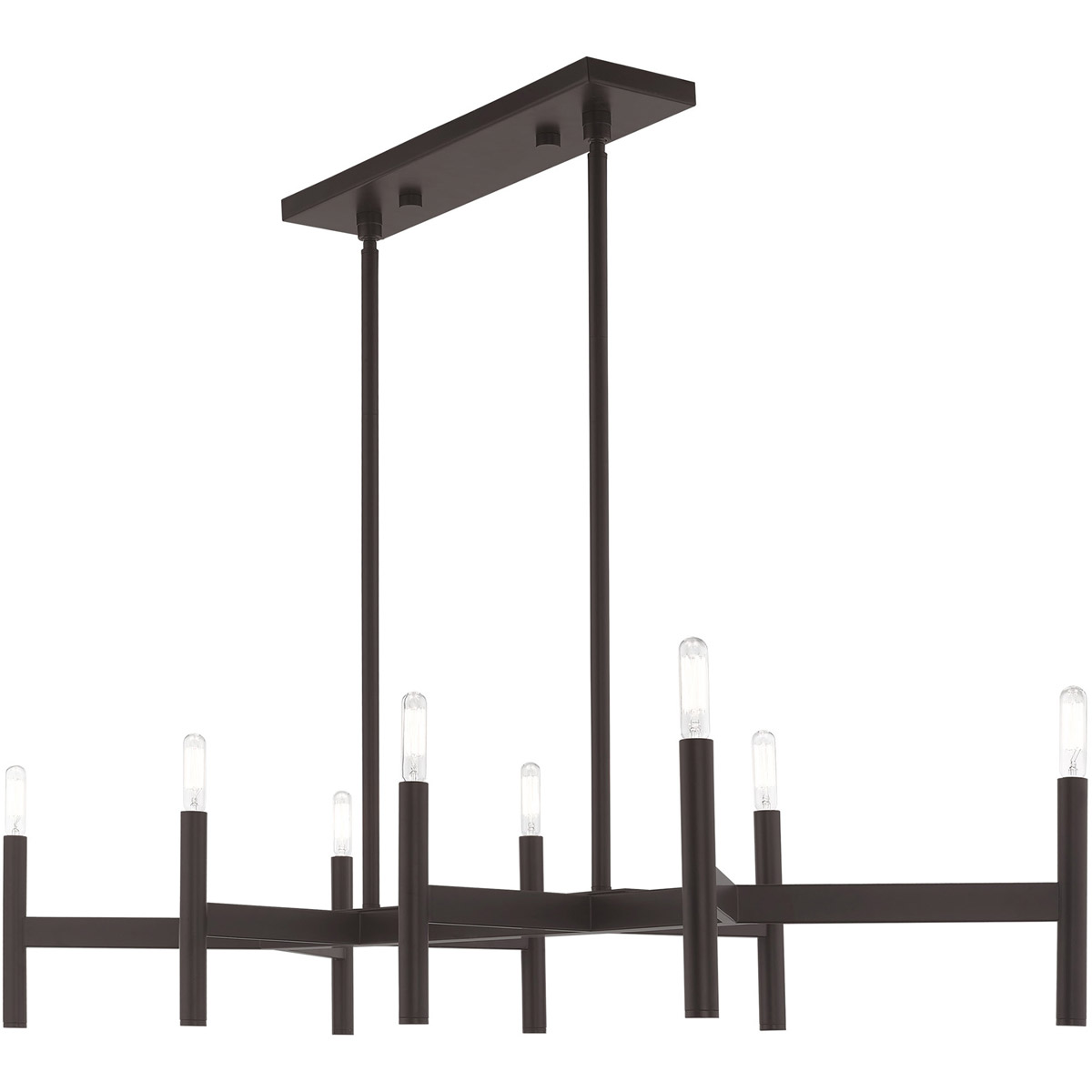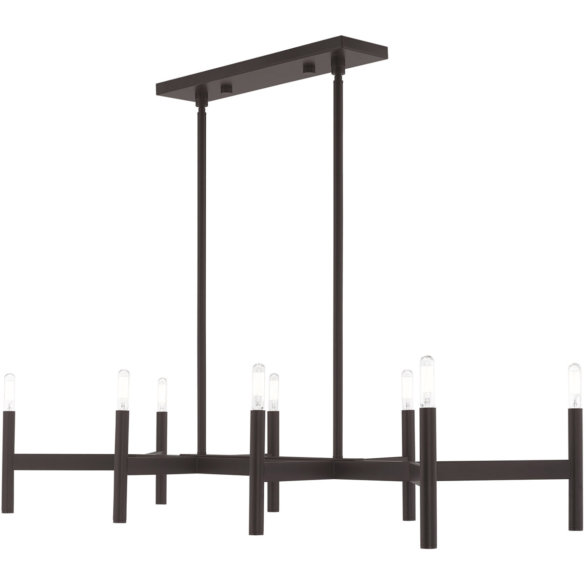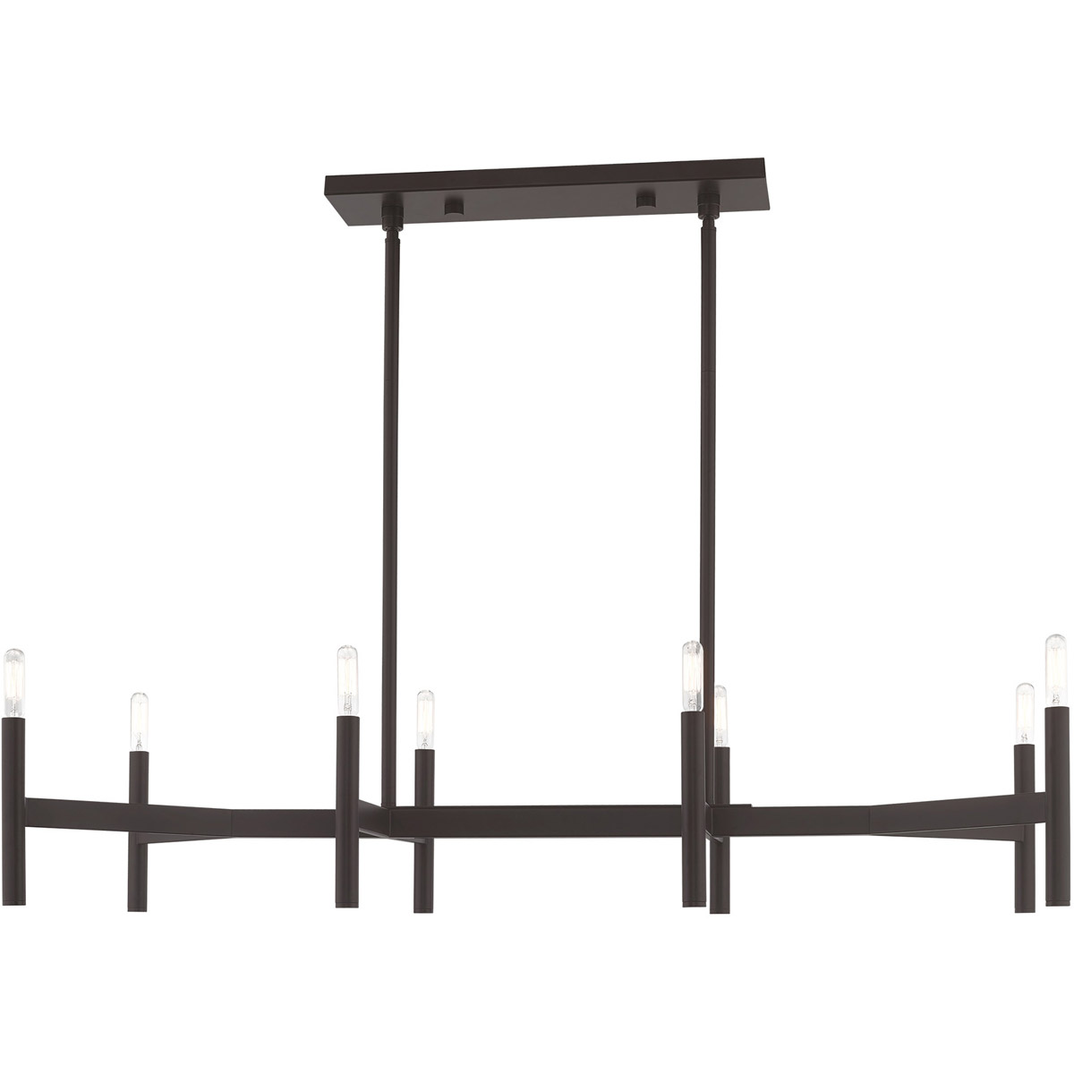 Exposed bulb sockets are fixed over a bronze finish to create an eclectic look perfect for mid century modern or transitional spaces wanting an industrial touch.