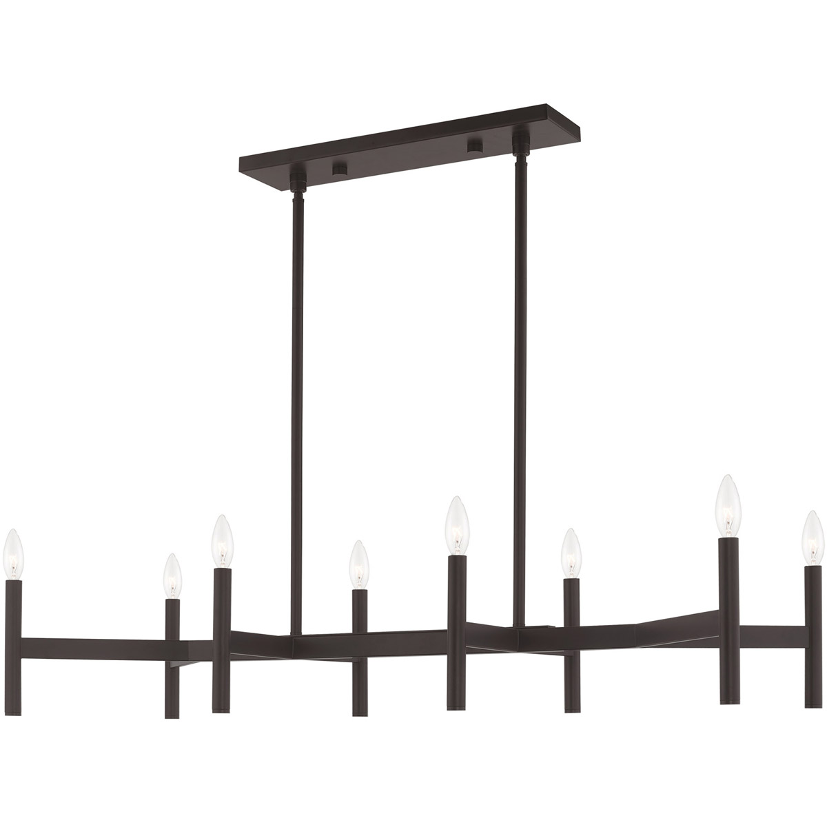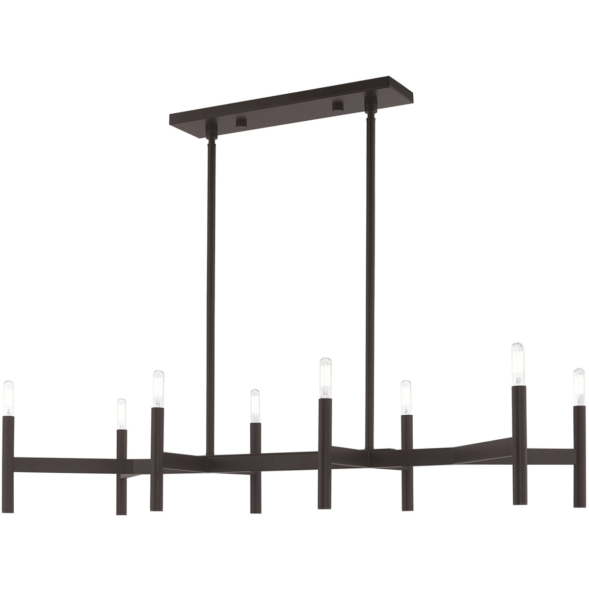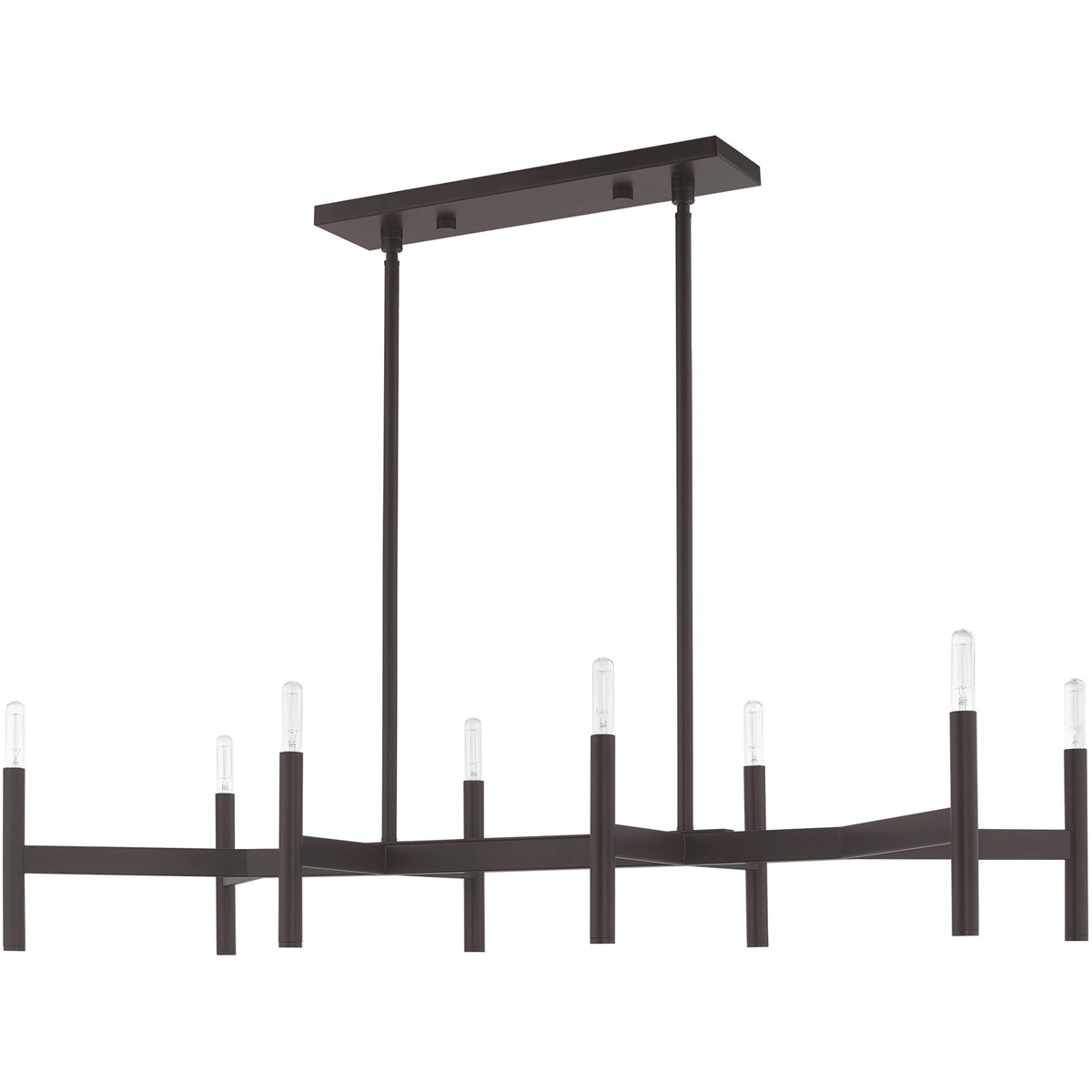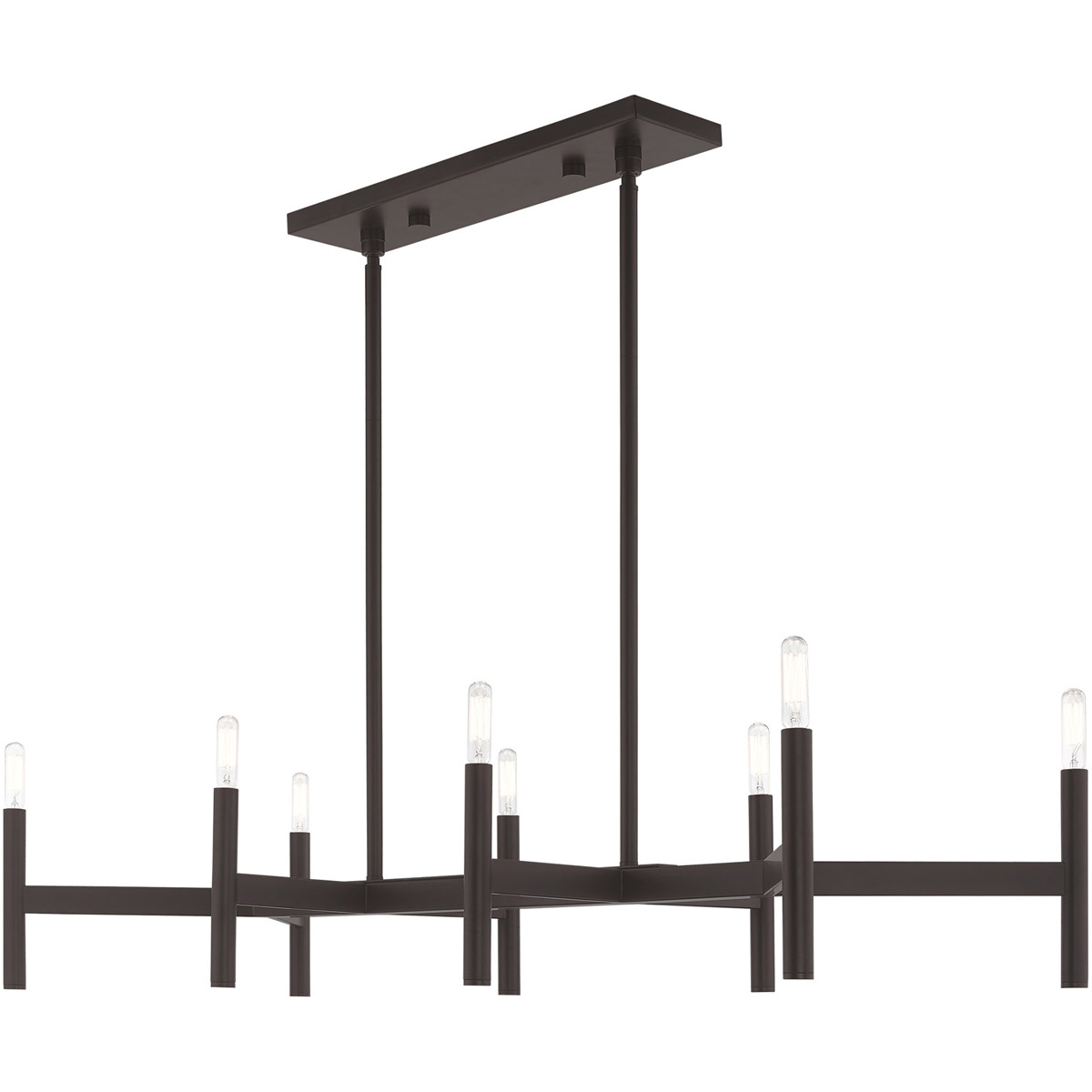 Exposed bulb sockets are fixed over a bronze finish to create an eclectic look perfect for mid century modern or transitional spaces wanting an industrial touch.