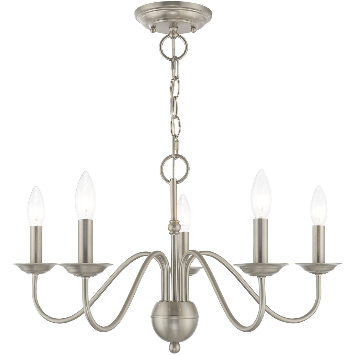 5 Light Brushed Nickel Chandelier with Steel base material-Lighting Lumens