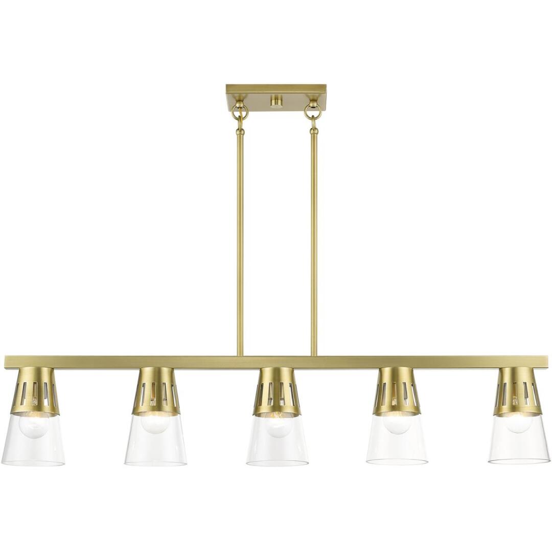 Add an aura of sophistication and elegance with the Bennington transitional linear chandelier. With the natural brass finish, looks especially decadent. The Bennington collection delivers an inspiring and upscale mood to a new or remodeled kitchen or dining space.