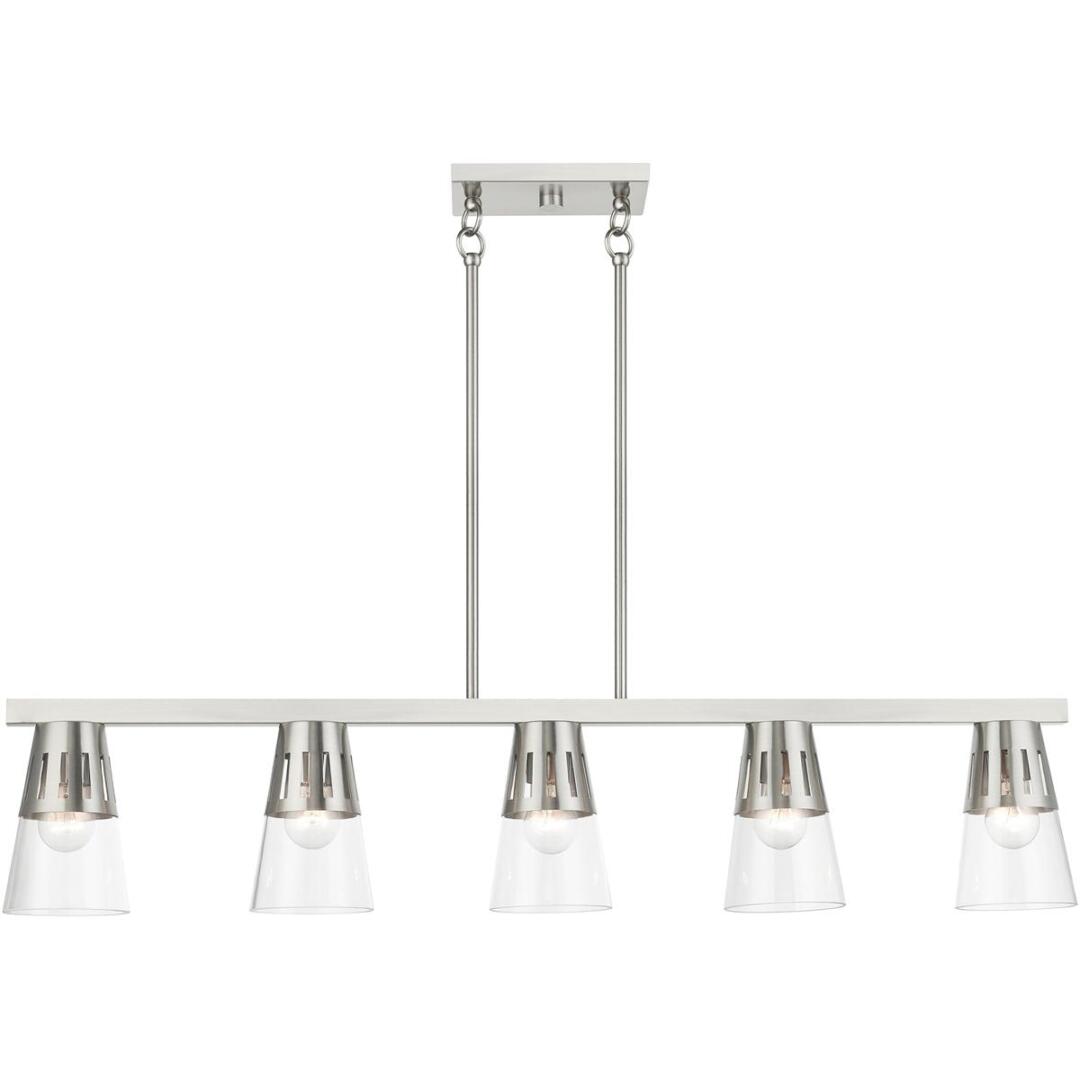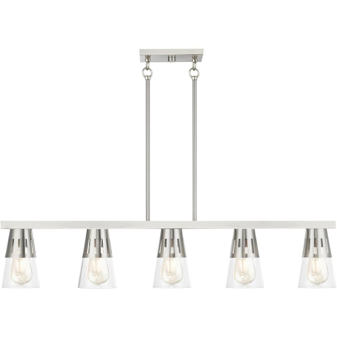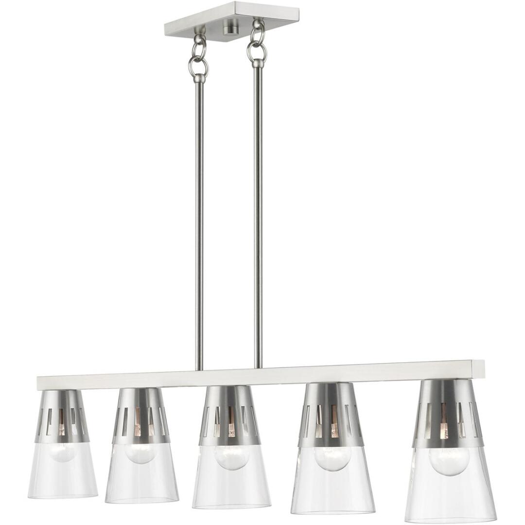 Add an aura of sophistication and elegance with the Bennington transitional linear chandelier. With the brushed nickel finish, looks especially decadent. The Bennington collection delivers an inspiring and upscale mood to a new or remodeled kitchen or dining space.