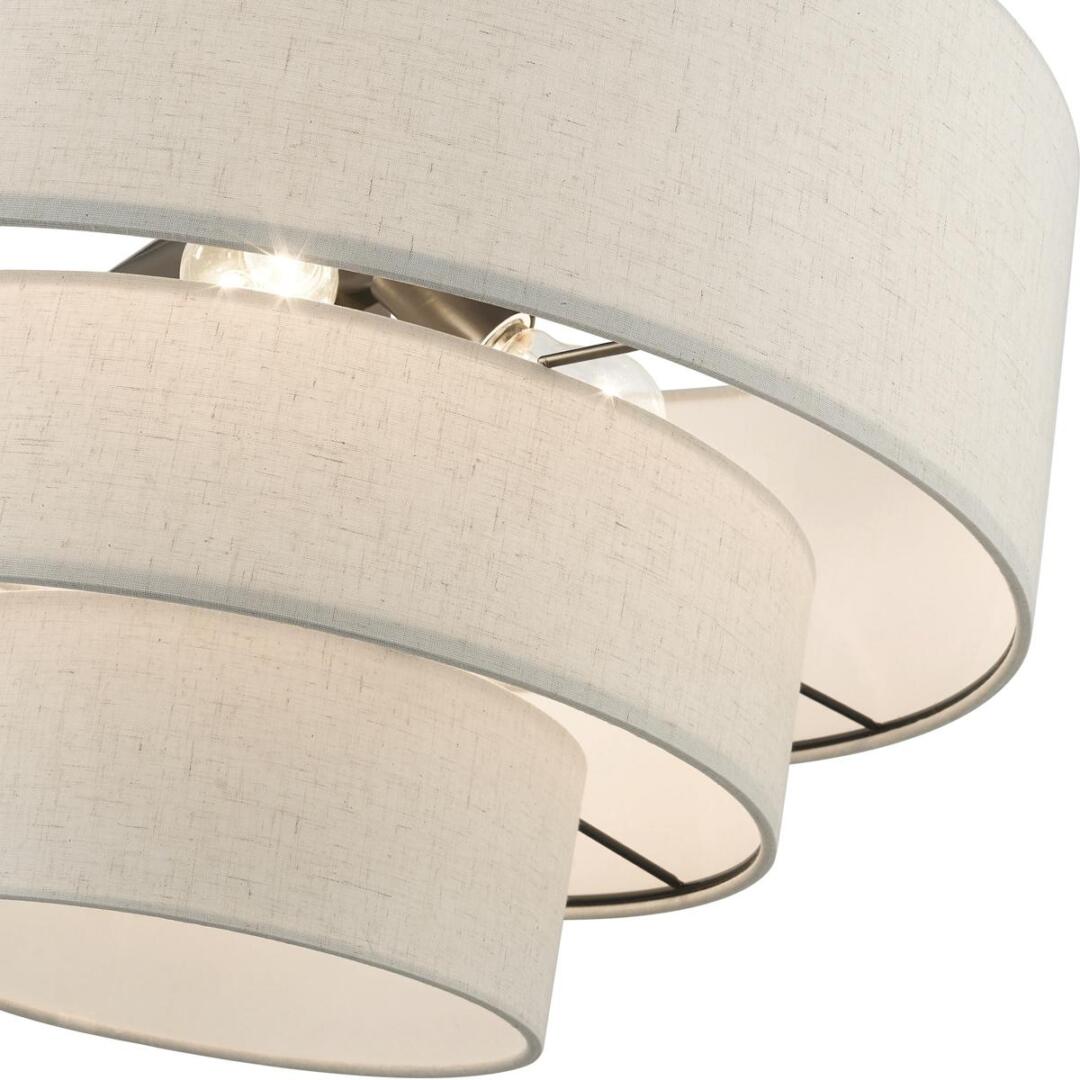 | Glass/Shade Type: Hand Crafted Oatmeal Color Hardback Fabric Shade with White Fabric Inside | Diameter: 23″ |