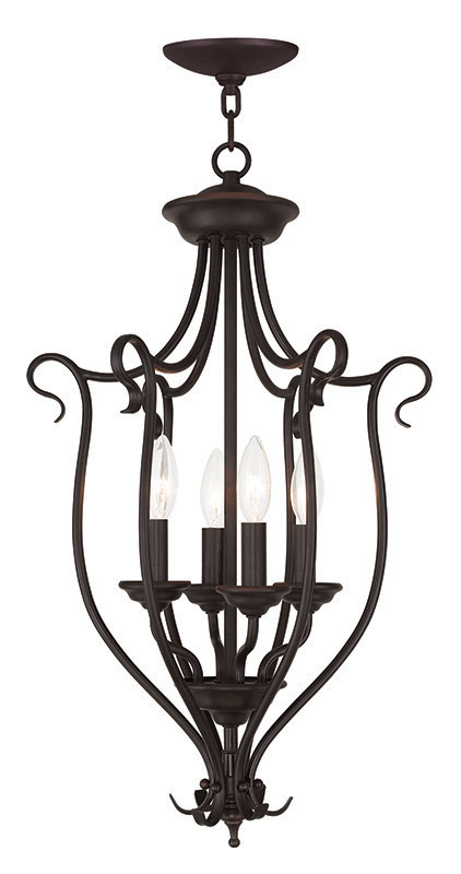 Classic bronze four chandelier. Timeless in its vintage appeal, this light is stylish for both new and restored homes.