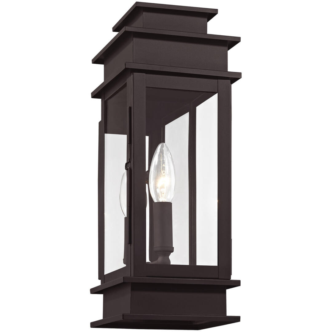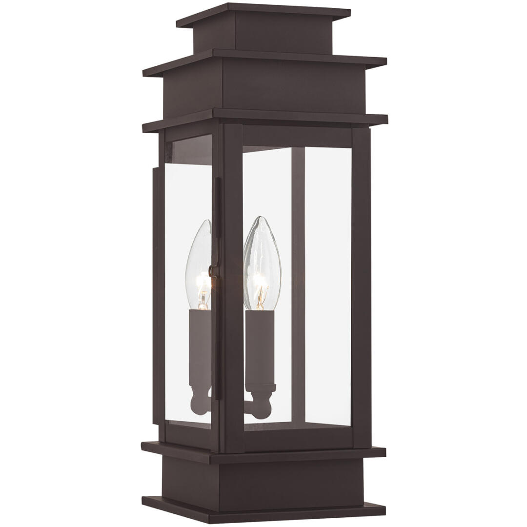 The Princeton collection is a fresh interpretation on the classic English pocket lantern. Hand crafted solid brass, our Princeton fixtures are built for lasting beauty. This outdoor wall light features a bronze finish and clear glass. This old world charm is built to last.