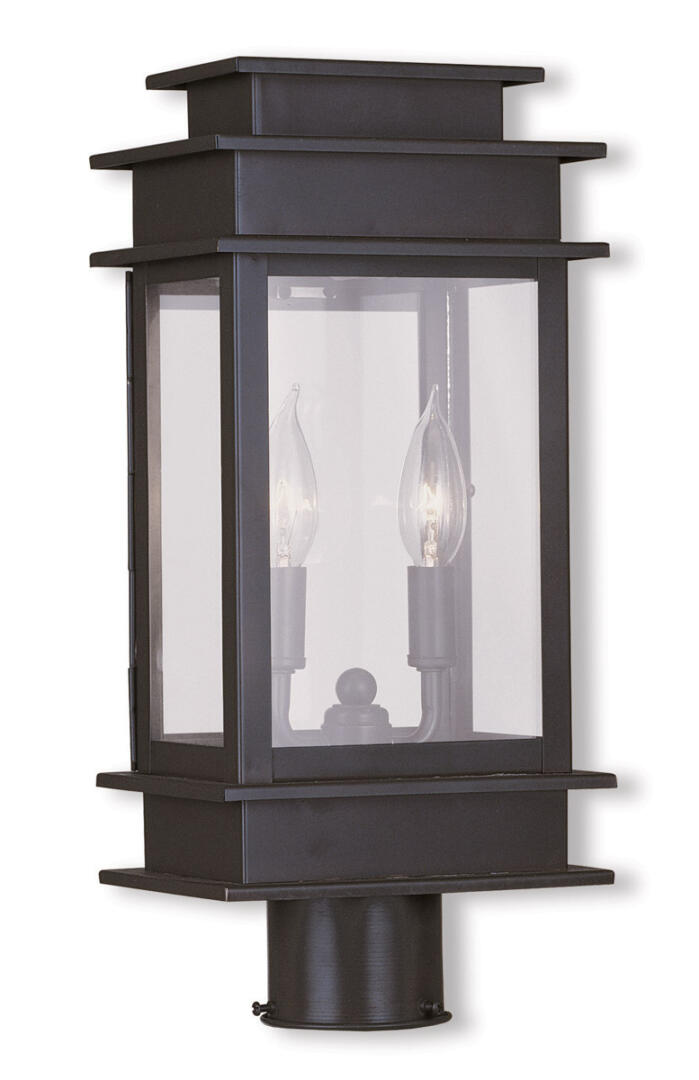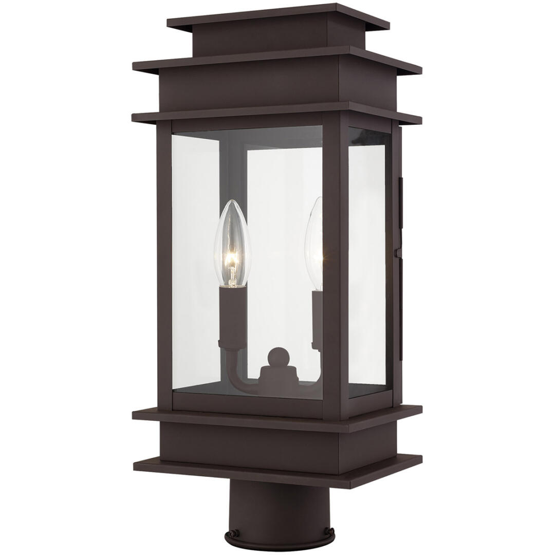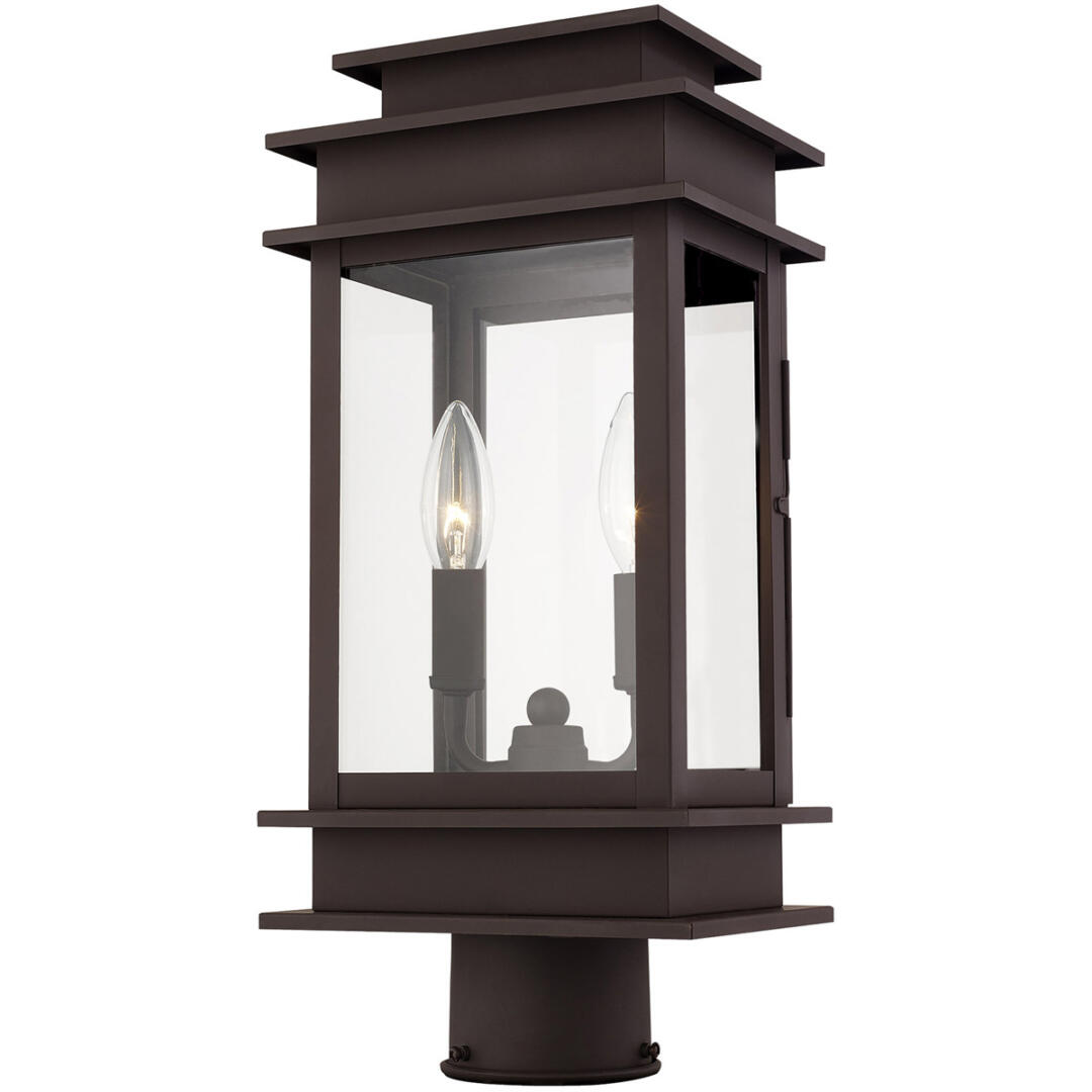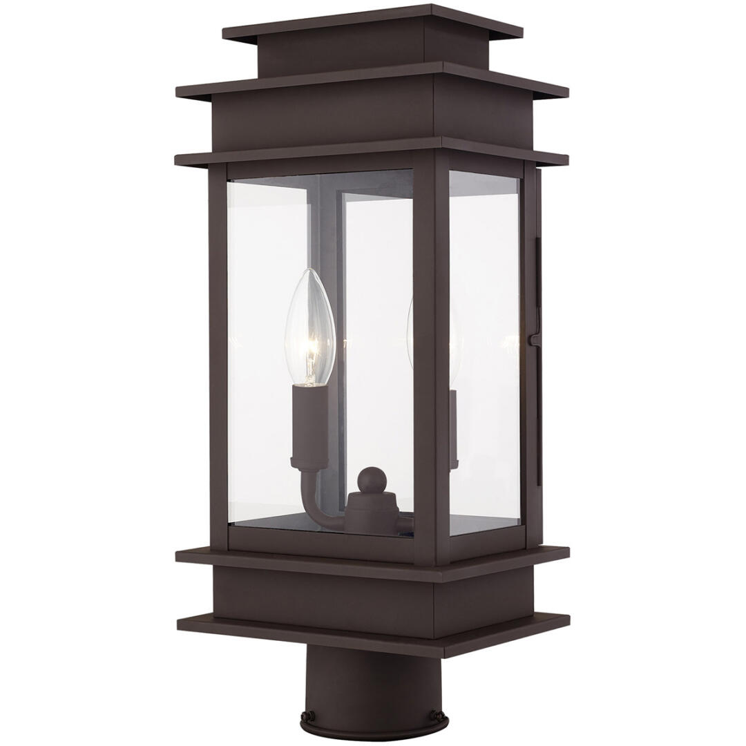 The Princeton collection is a fresh interpretation on the classic English pocket lantern. Hand crafted solid brass, our Princeton fixtures are built for lasting beauty. This outdoor post light features a bronze finish and clear glass. This old world charm is built to last.