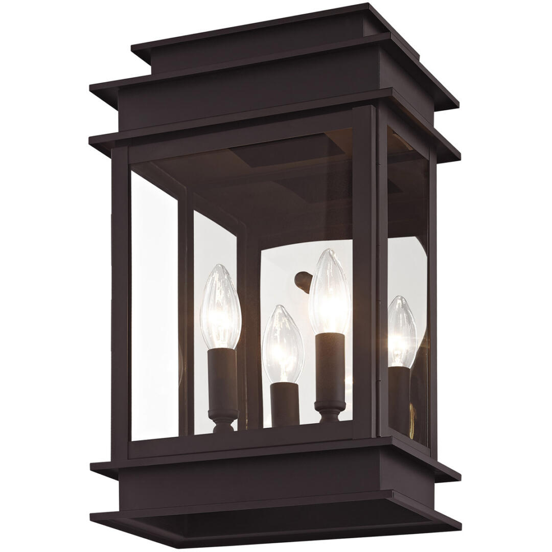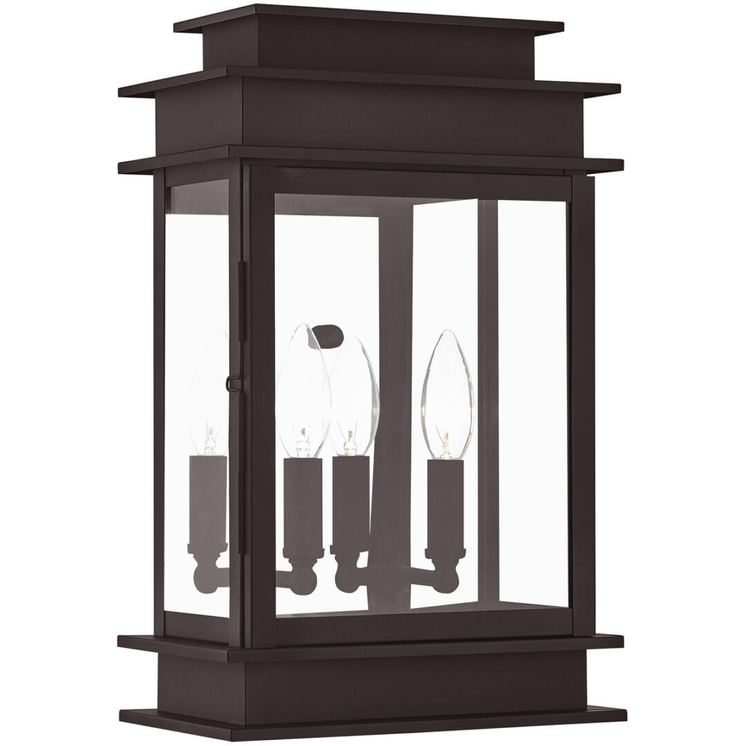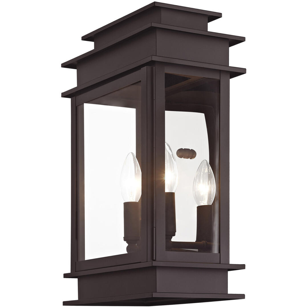 The Princeton collection is a fresh interpretation on the classic English pocket lantern. Hand crafted solid brass, our Princeton fixtures are built for lasting beauty. This outdoor wall light features a bronze finish and clear glass. This old world charm is built to last.