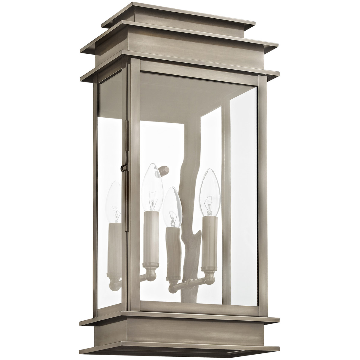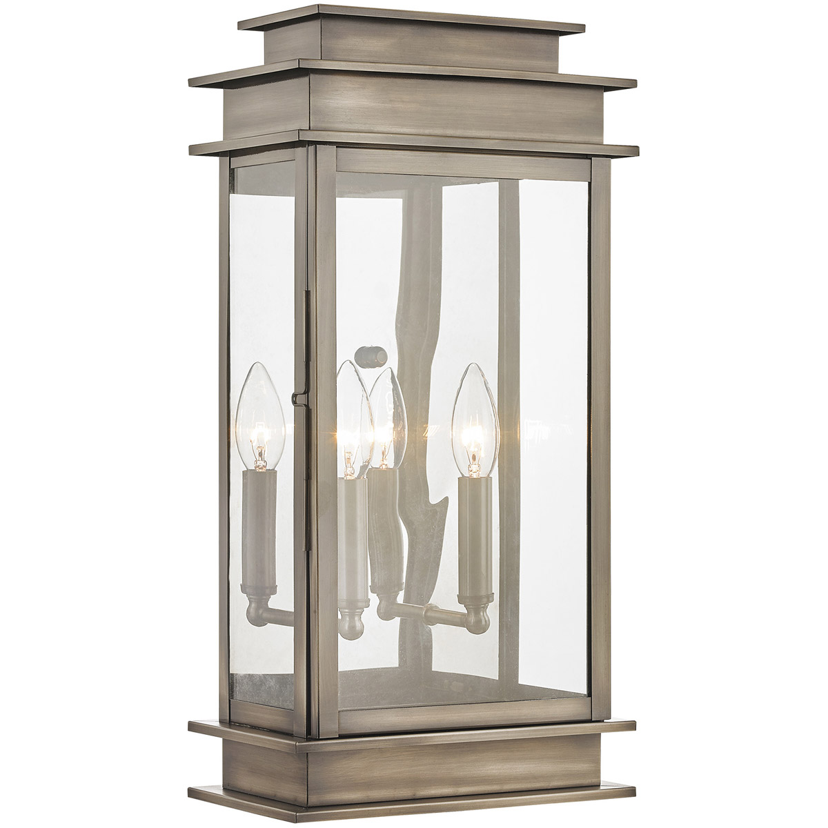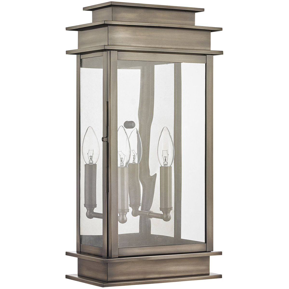 The Princeton collection is a fresh interpretation on the classic English pocket lantern. Hand crafted solid brass, our Princeton fixtures are built for lasting beauty. This outdoor wall light features a vintage pewter finish and clear glass. This old world charm is built to last.