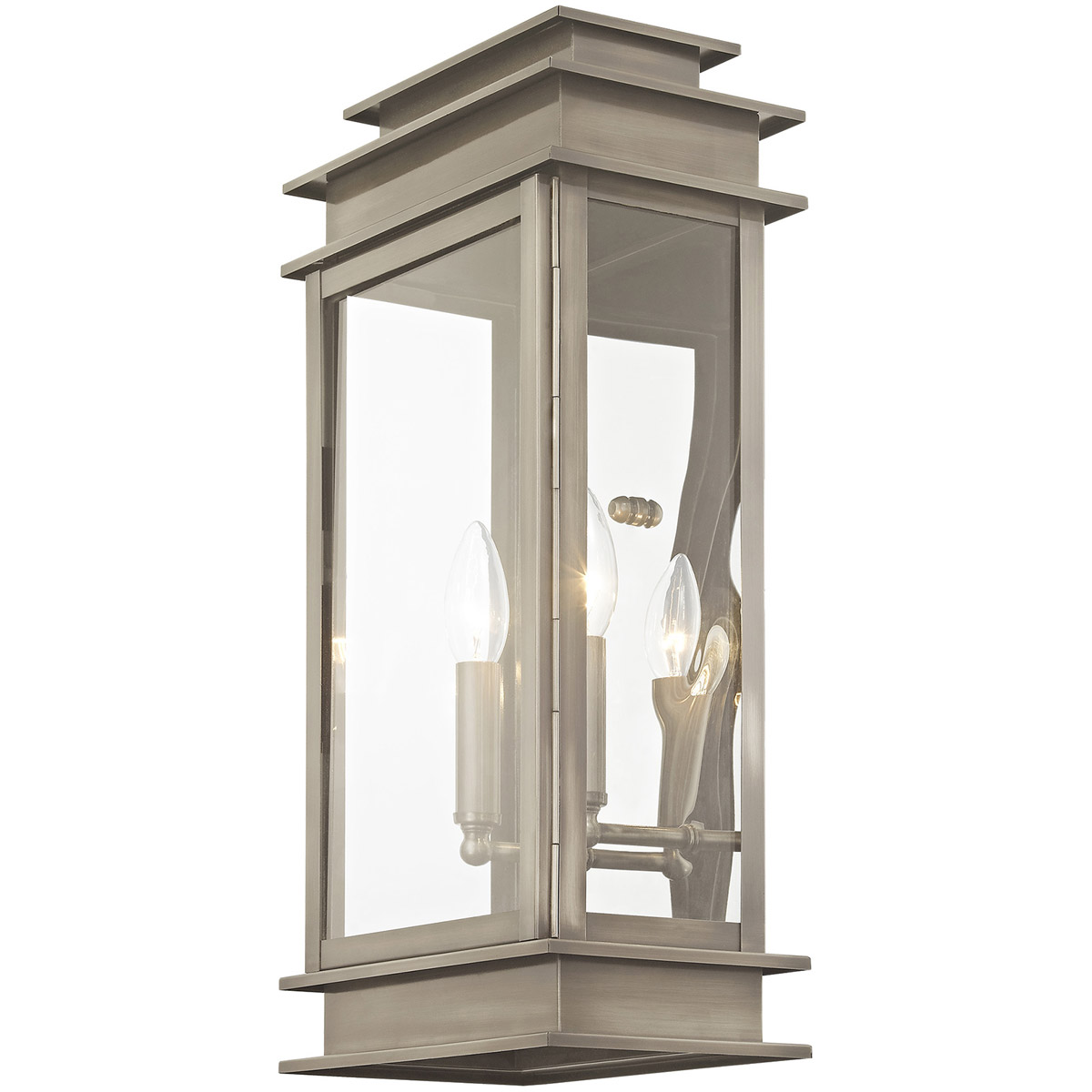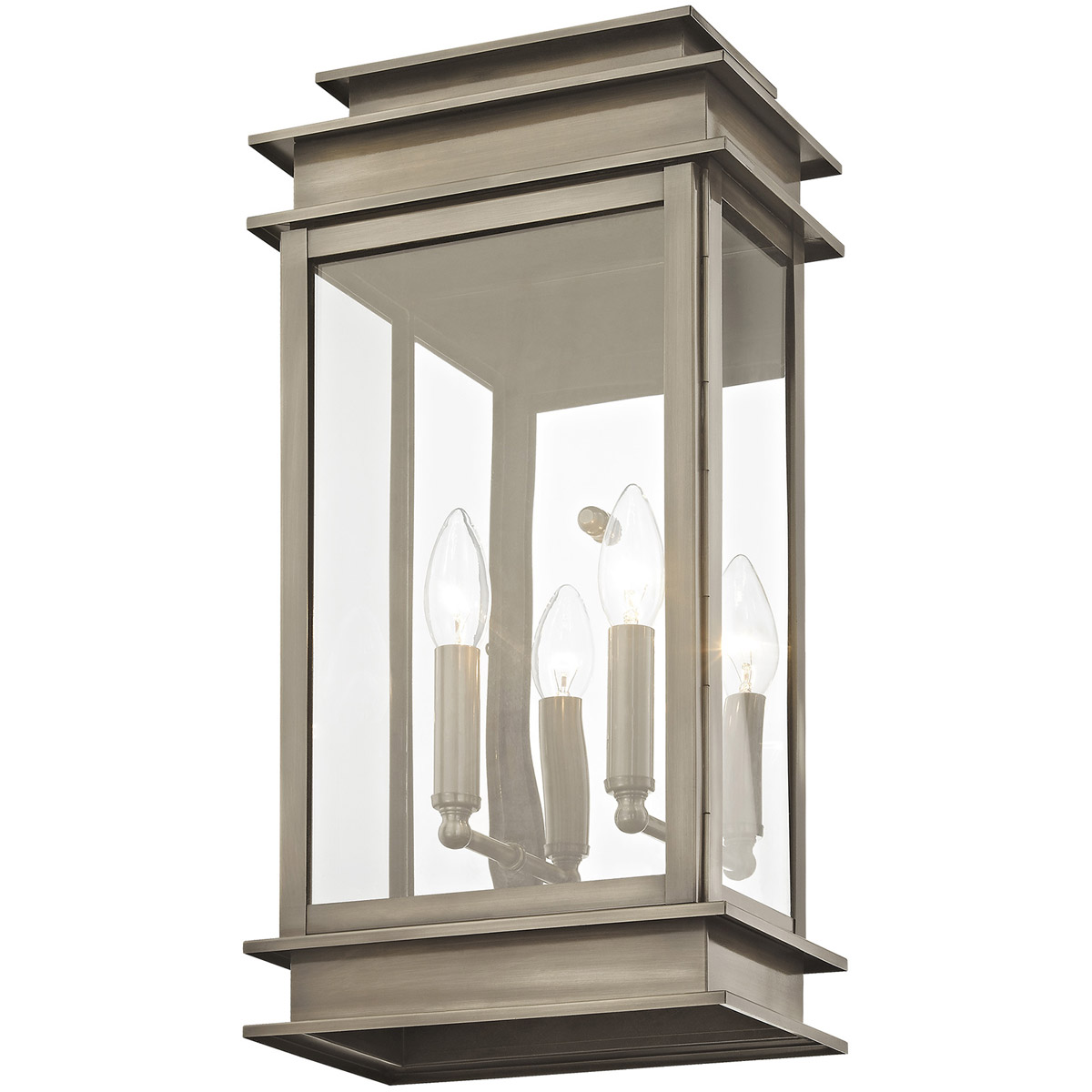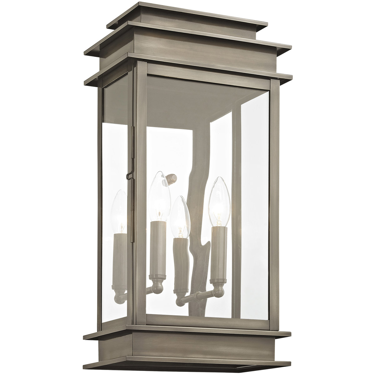 The Princeton collection is a fresh interpretation on the classic English pocket lantern. Hand crafted solid brass, our Princeton fixtures are built for lasting beauty. This outdoor wall light features a vintage pewter finish and clear glass. This old world charm is built to last.