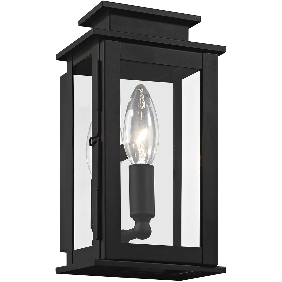 The Princeton collection is a fresh interpretation on the classic English pocket lantern. Hand crafted solid brass, our Princeton fixtures are built for lasting beauty. This outdoor wall light features a black finish and clear glass. This old world charm is built to last.