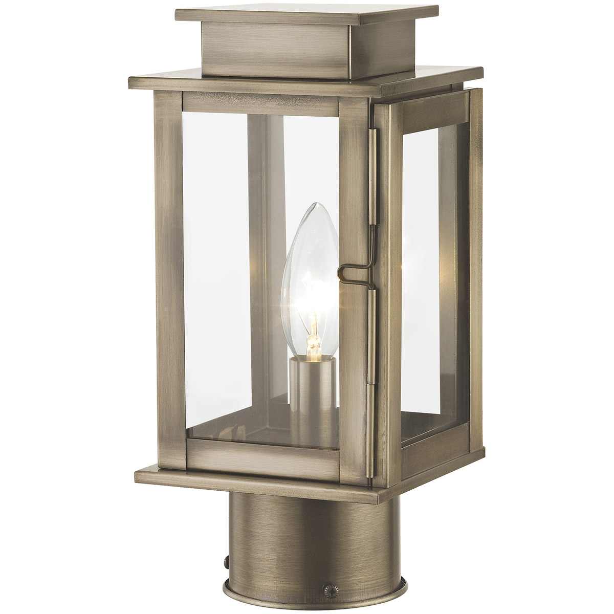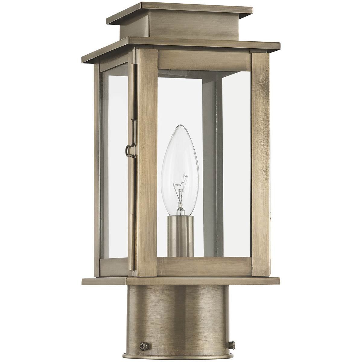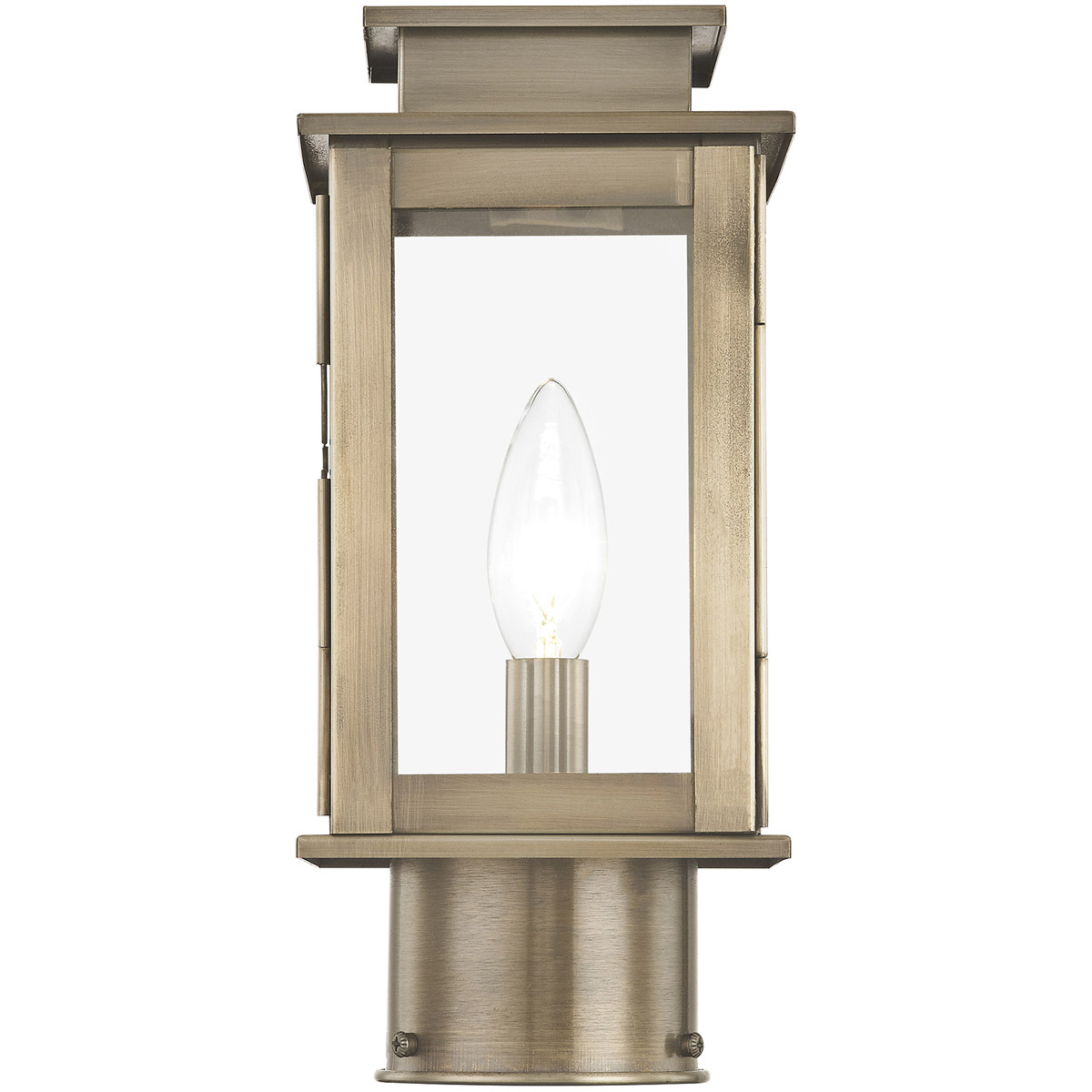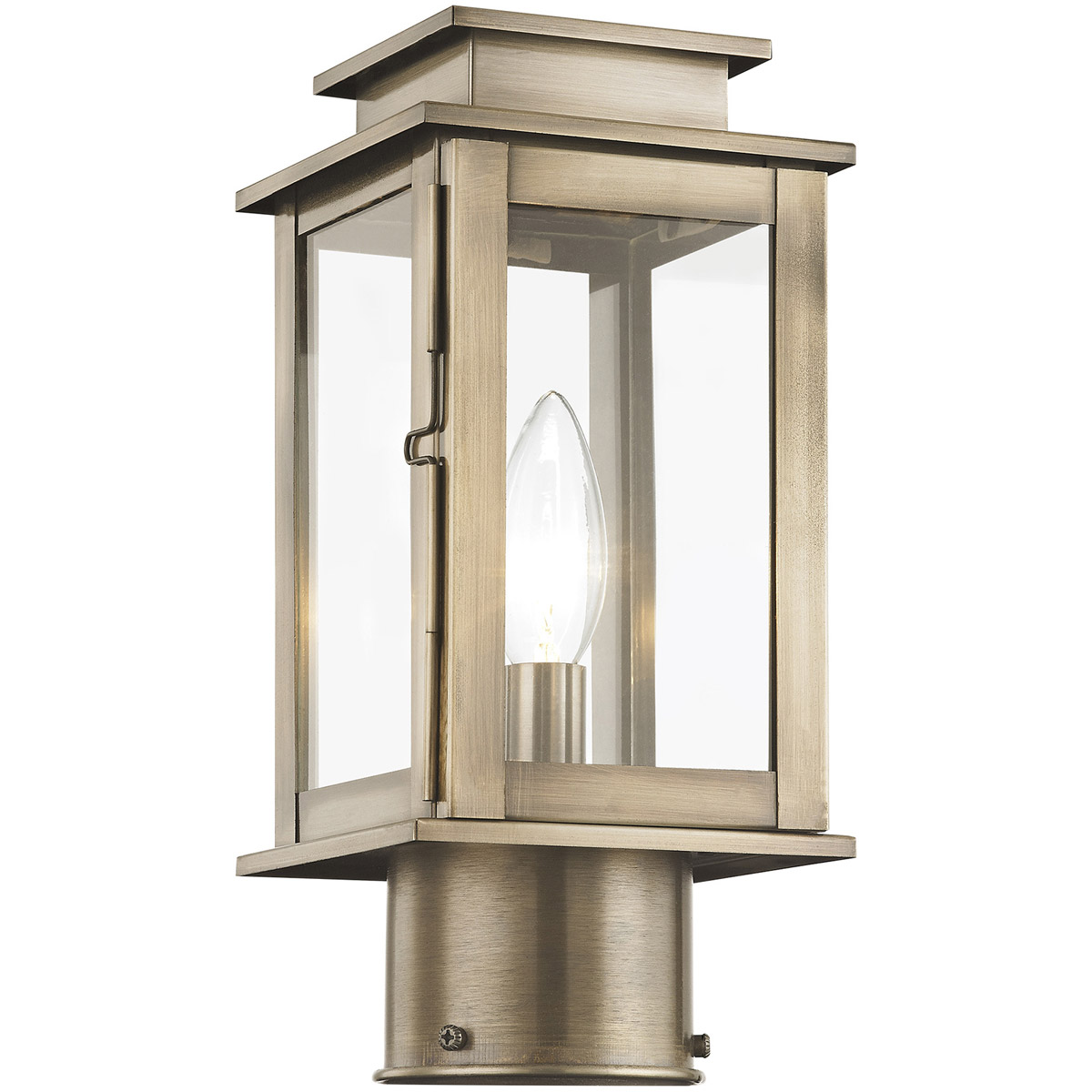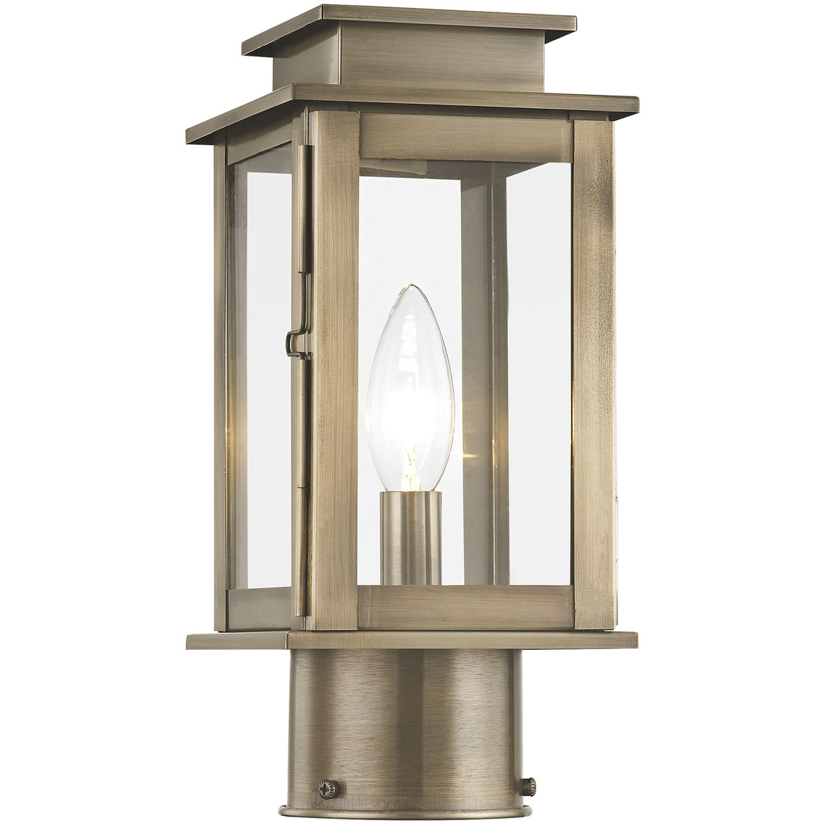 The Princeton collection is a fresh interpretation on the classic English pocket lantern. Hand crafted solid brass, our Princeton fixtures are built for lasting beauty. This outdoor post light features a vintage pewter finish and clear glass. This old world charm is built to last.