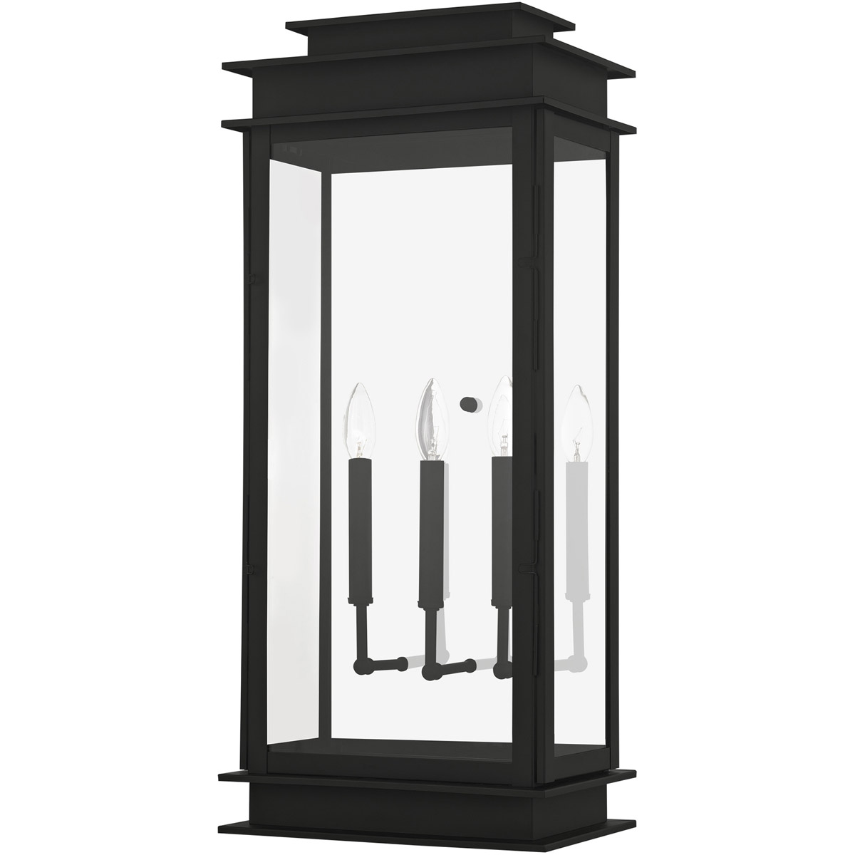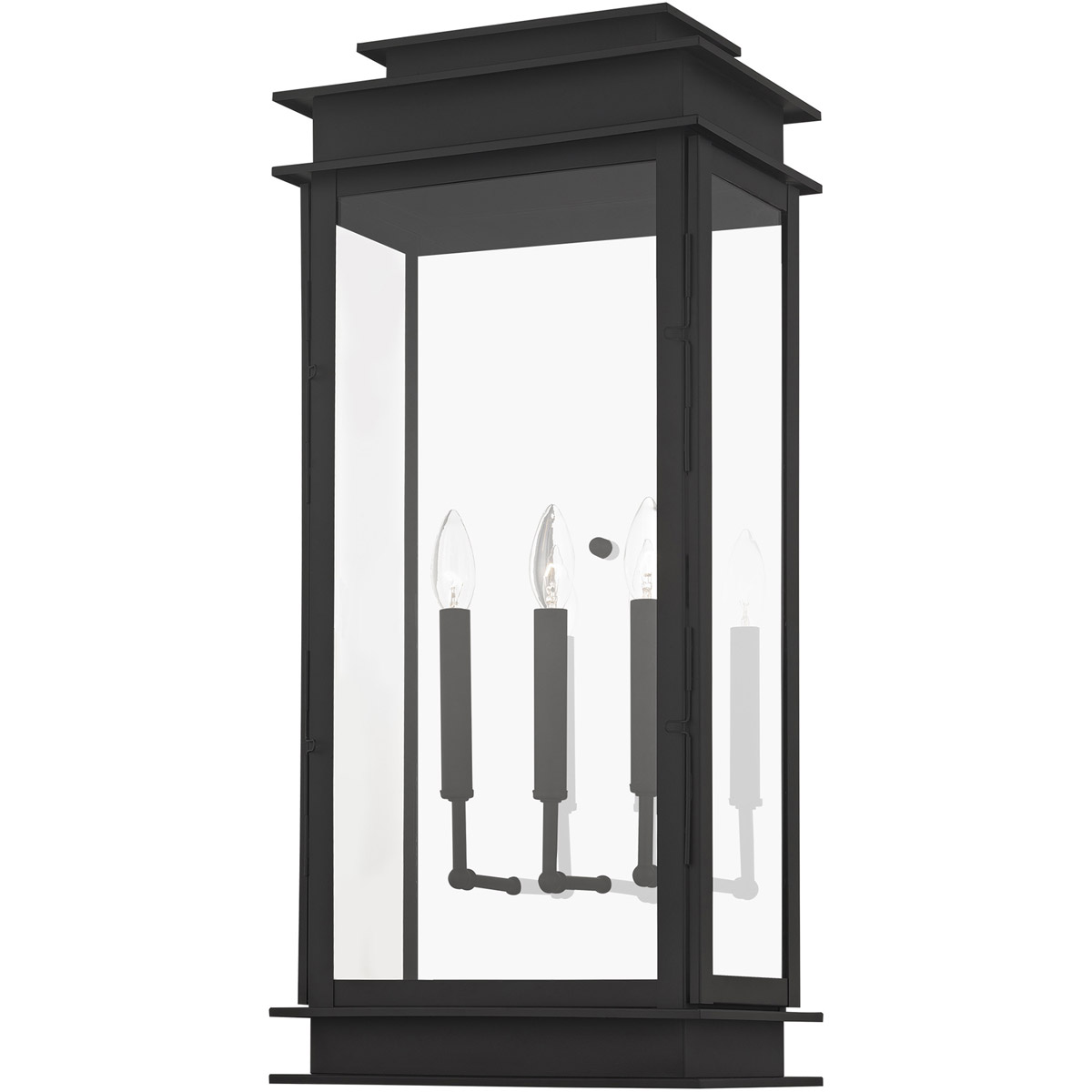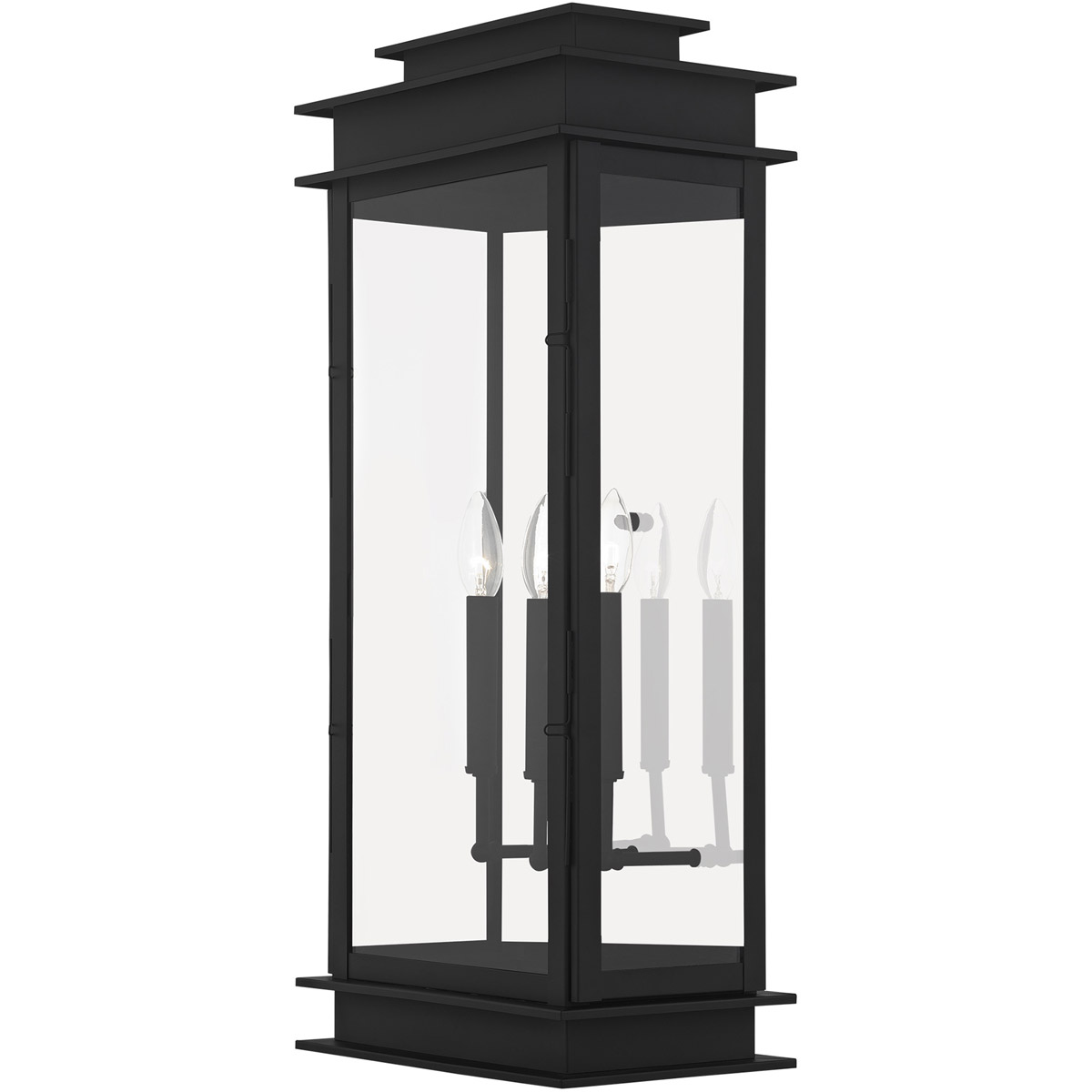 The Princeton collection is a fresh interpretation on the classic English pocket lantern. Hand crafted solid brass, our Princeton fixtures are built for lasting beauty. This outdoor wall light features a black finish and clear glass. This old world charm is built to last.