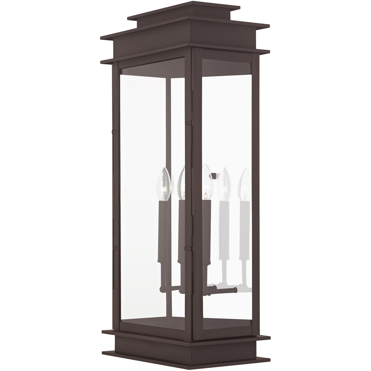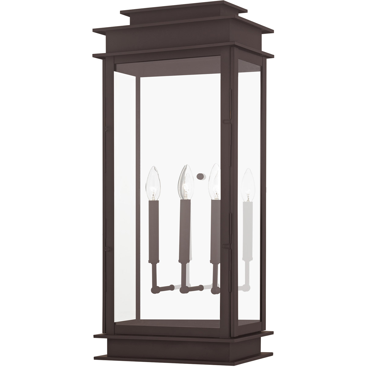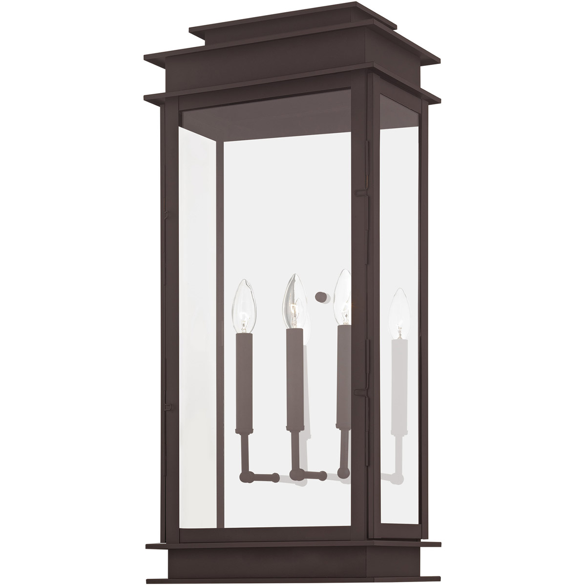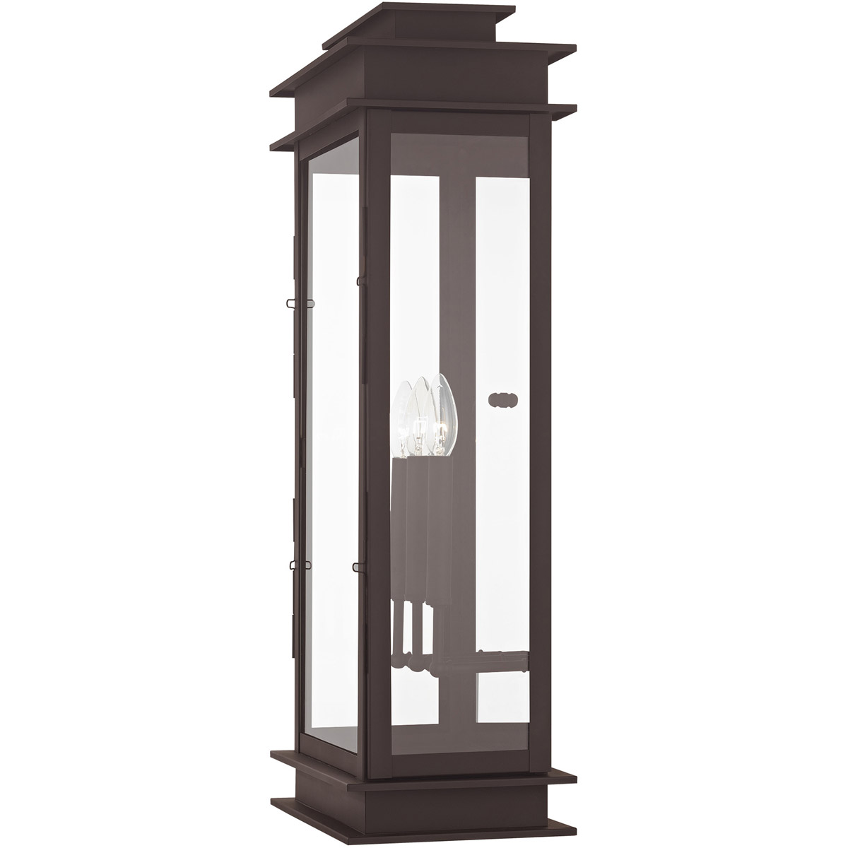 The Princeton collection is a fresh interpretation on the classic English pocket lantern. Hand crafted solid brass, our Princeton fixtures are built for lasting beauty. This outdoor wall light features a bronze finish and clear glass. This old world charm is built to last.