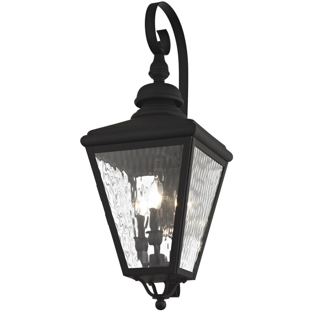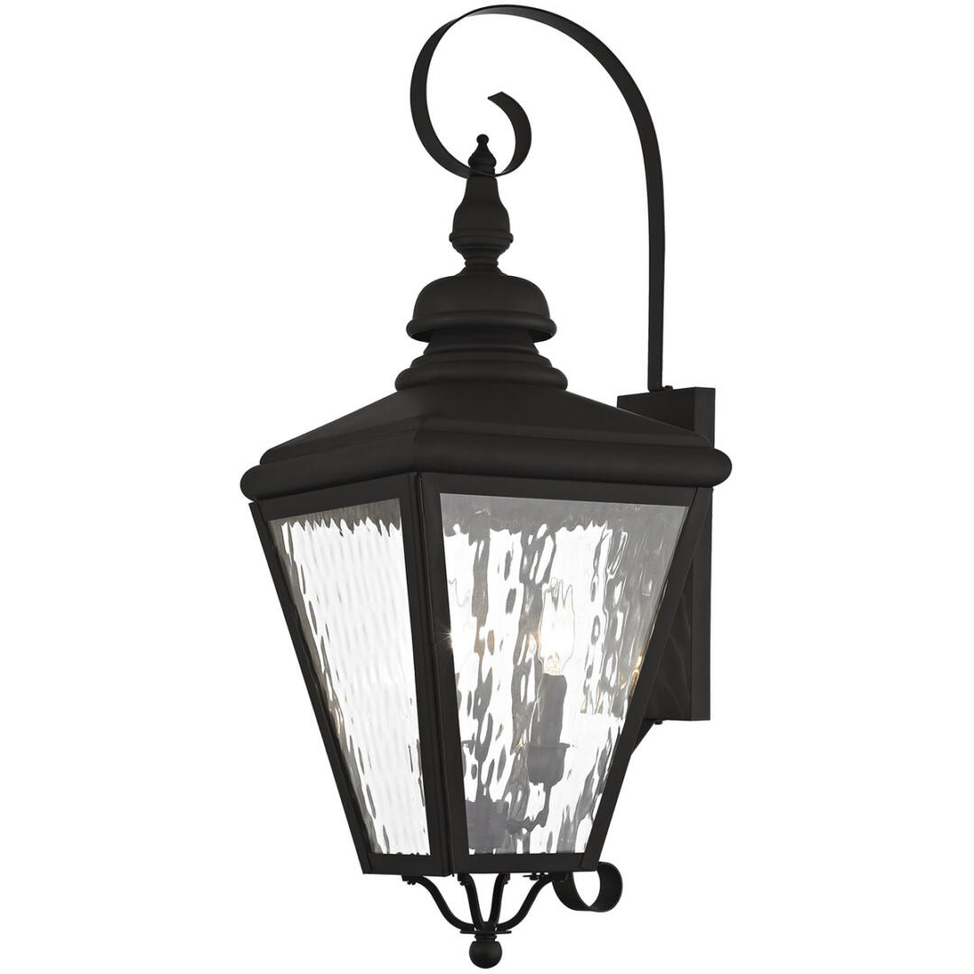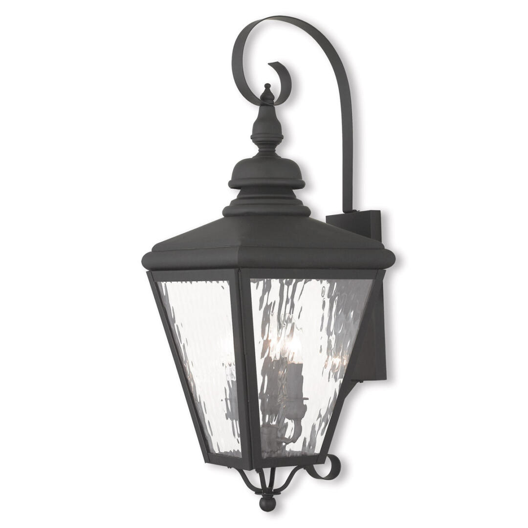 10.625 inch 3 Light Black Outdoor Wall Lantern Pendant Lighting Fixture with Clear Water Glass Shade-Lighting Lumens