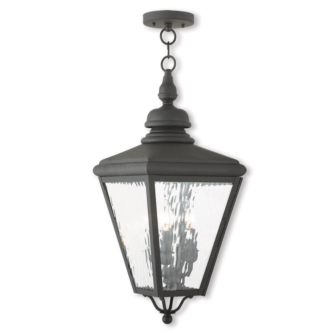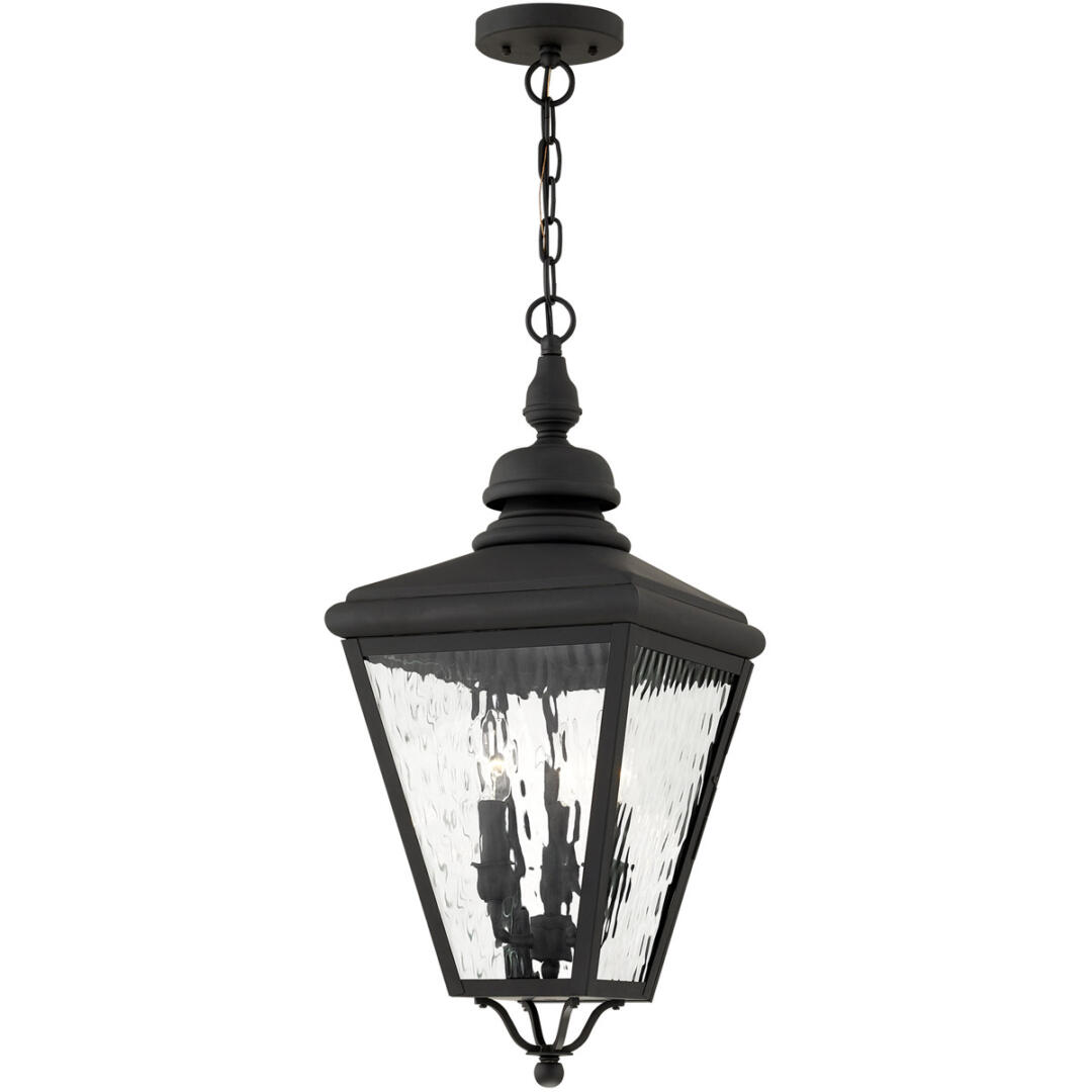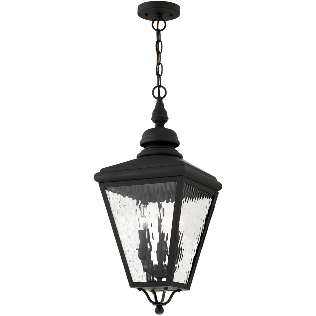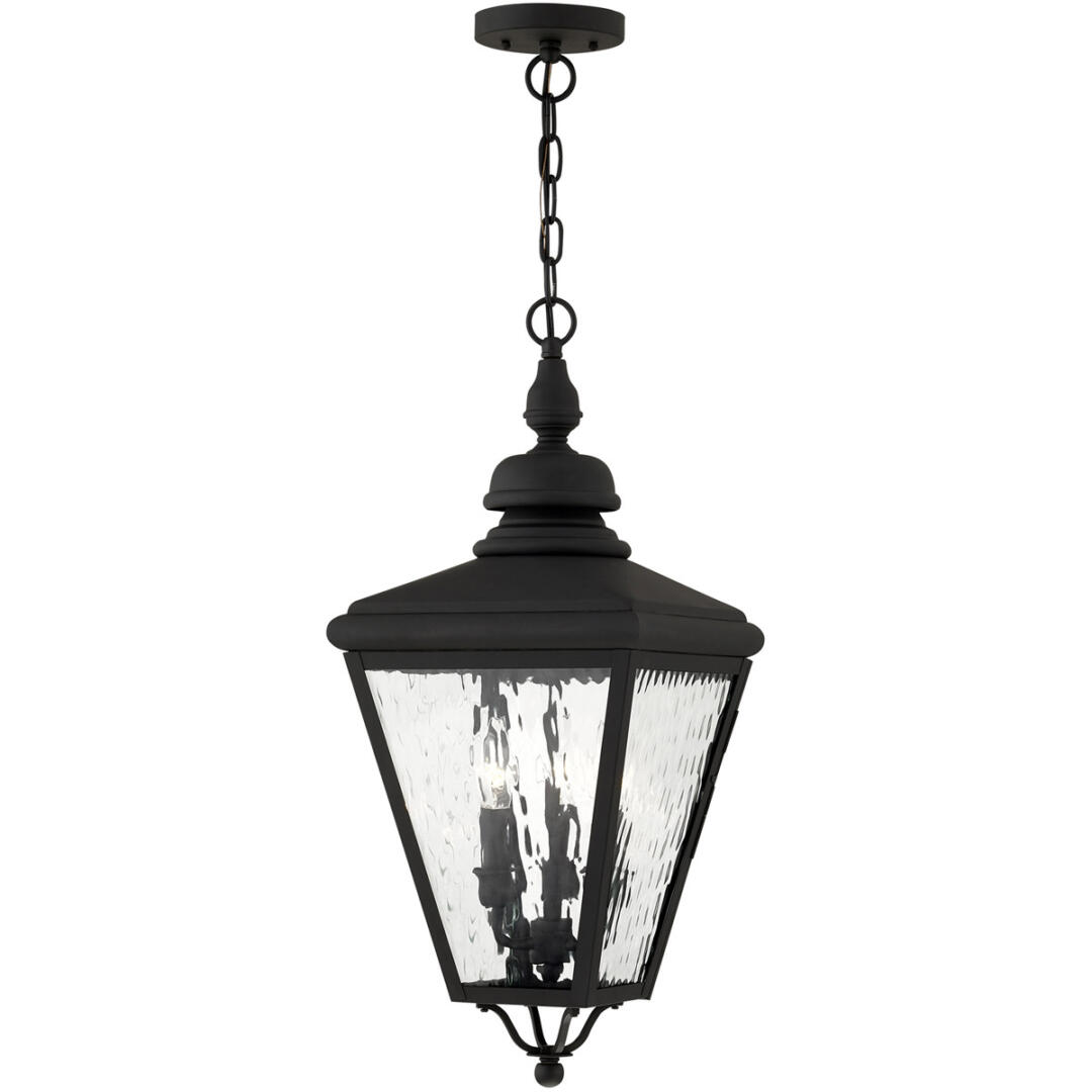 10.625 inch 3 Light Black Outdoor Chain-Hang Lantern Pendant Lighting Fixture with Clear Water Glass Shade-Lighting Lumens