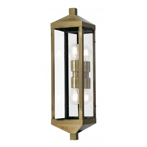 The dramatically simple shape and bold lines help define our Nyack wall lantern. Featured in a antique brass finish, this outdoor wall lantern has panels of clear glass.