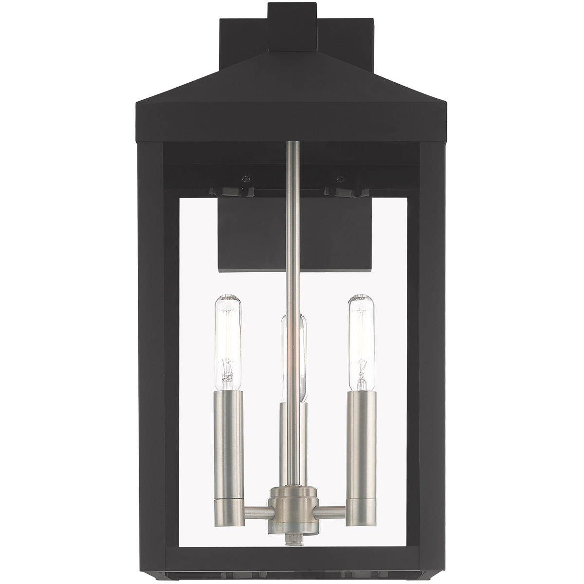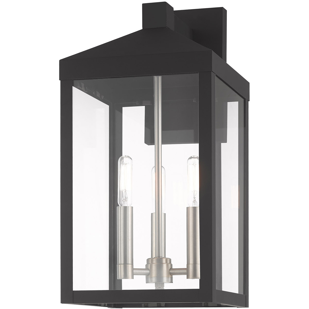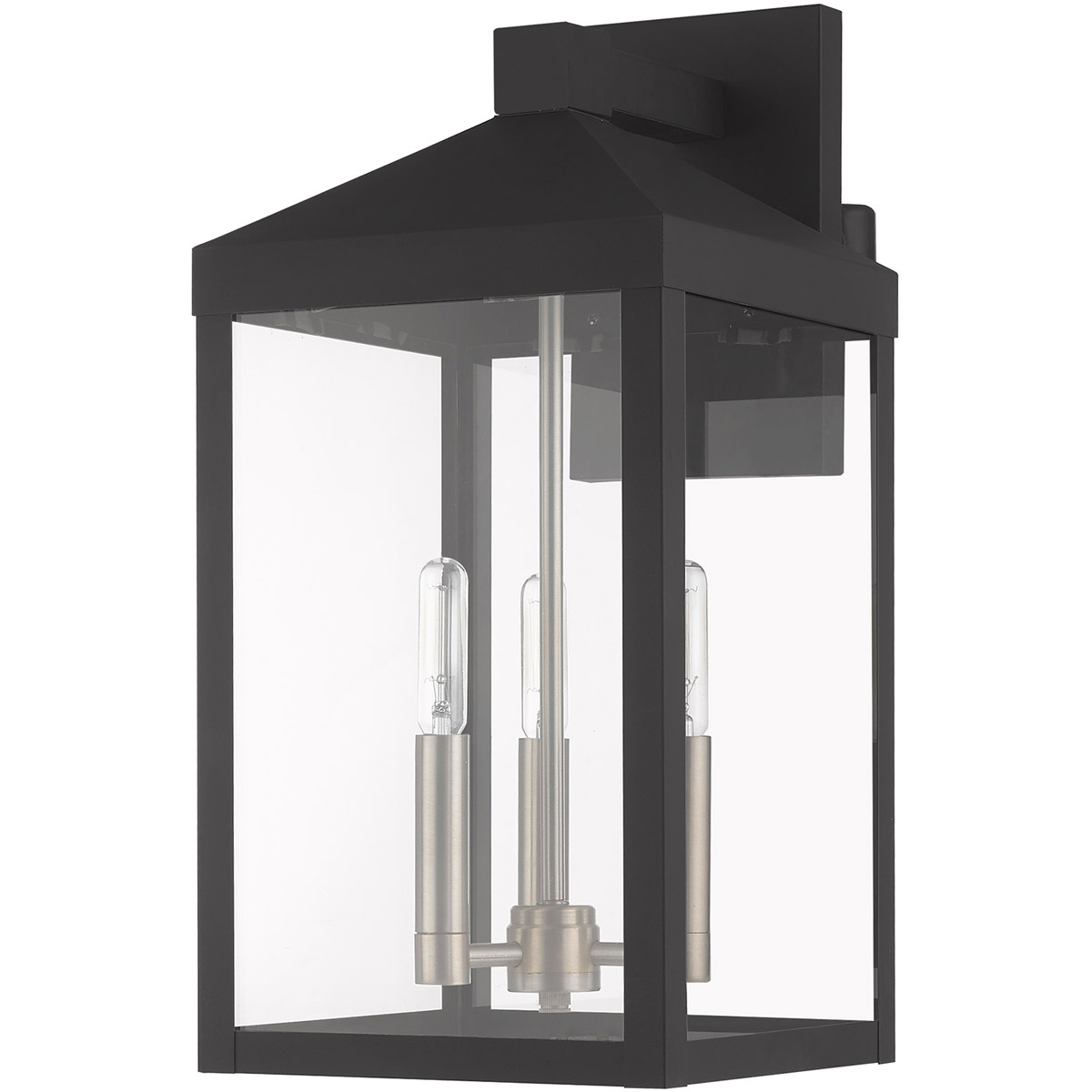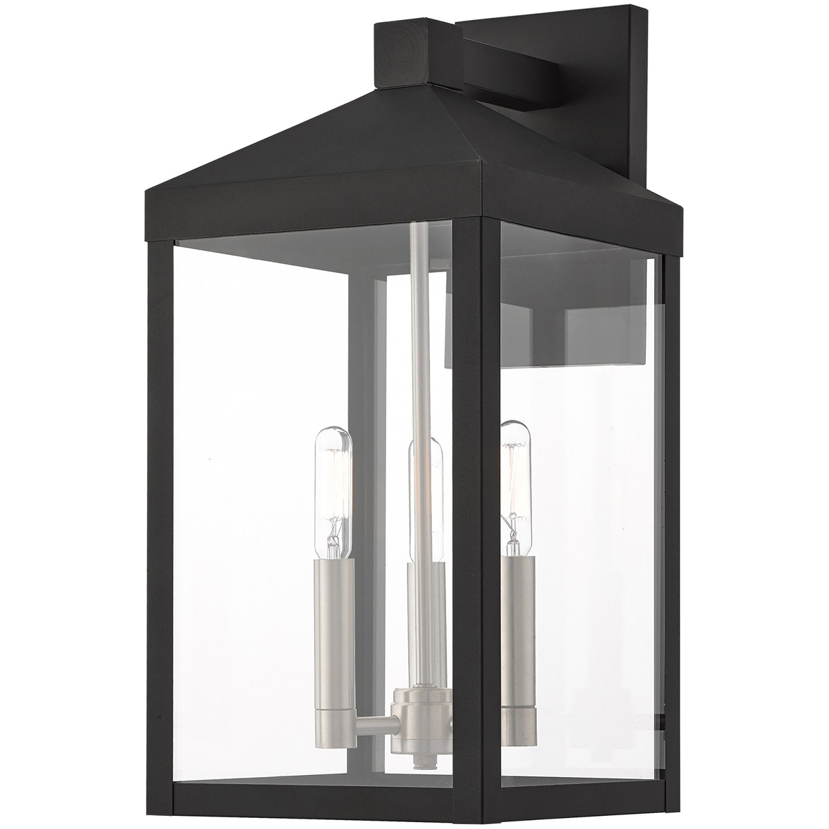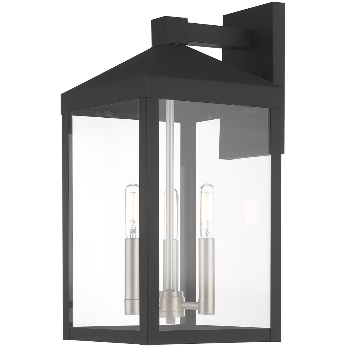 The dramatically simple shape and bold lines help define our Nyack wall lantern. Featured in a black finish, this outdoor wall lantern has panels of clear glass.
