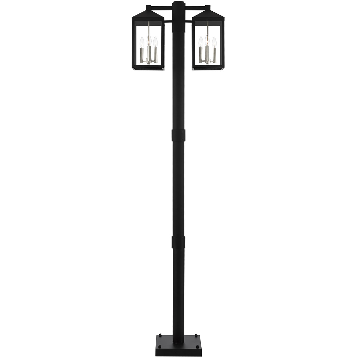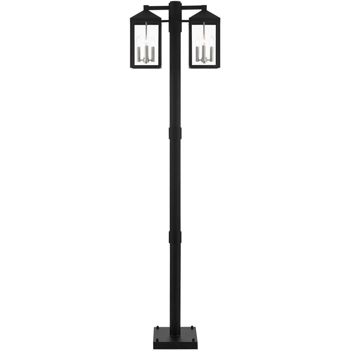 12 inch 6 Light Black Outdoor Post Light with Clear Glass Shade-Lighting Lumens
